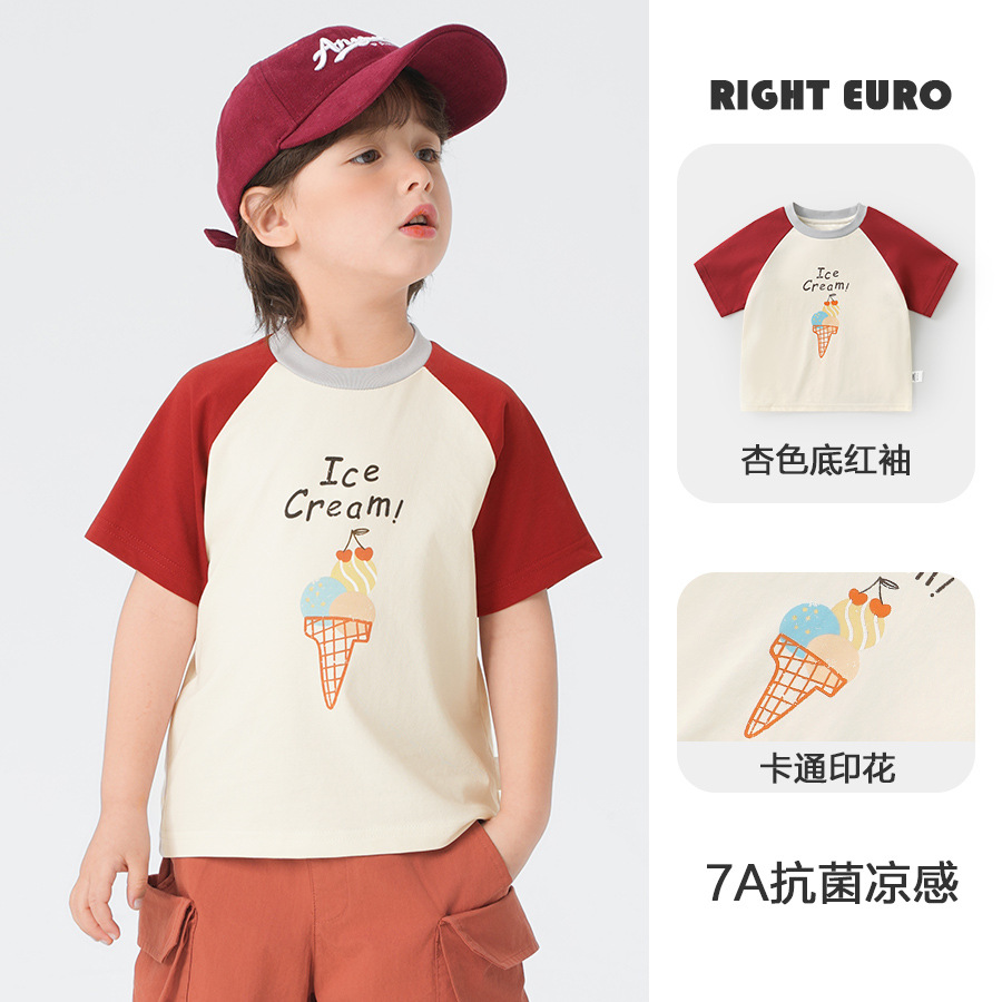 오른쪽 유럽 소년 티셔츠 여름 반팔 반바지 2025 새로운 아동복 아동복 아기 어린이 여름 얇은 스타일 유행스토어 가기