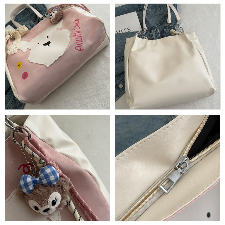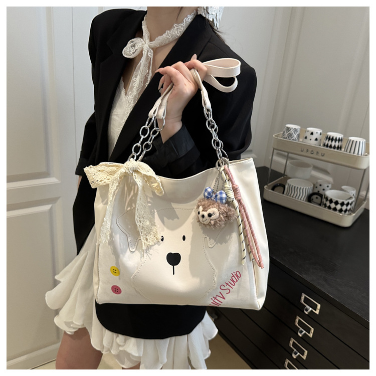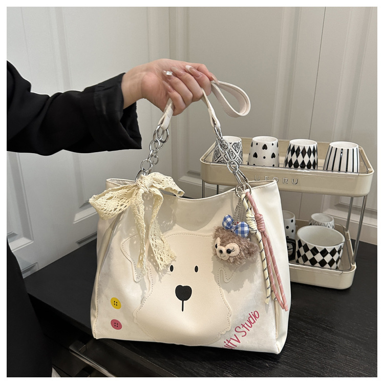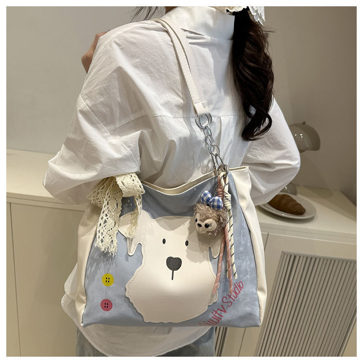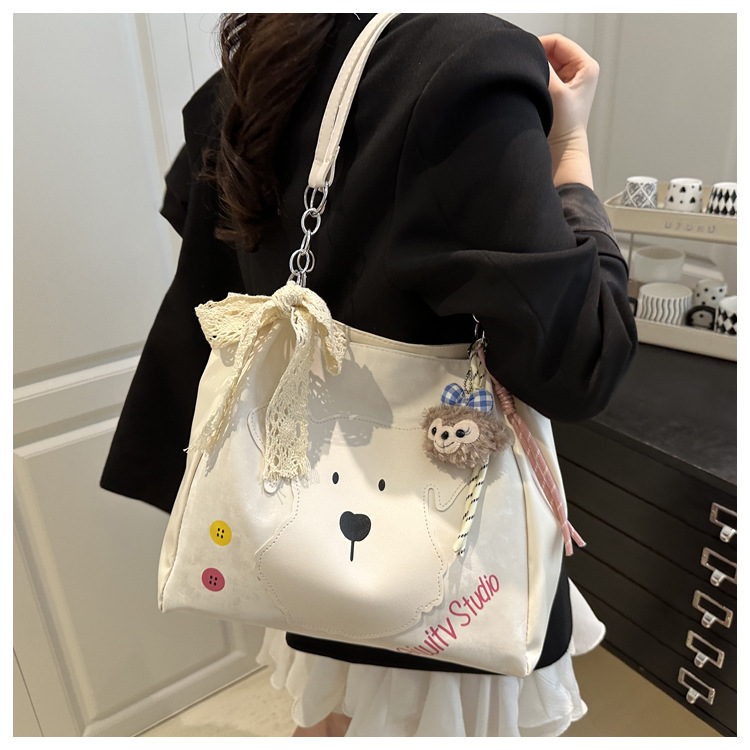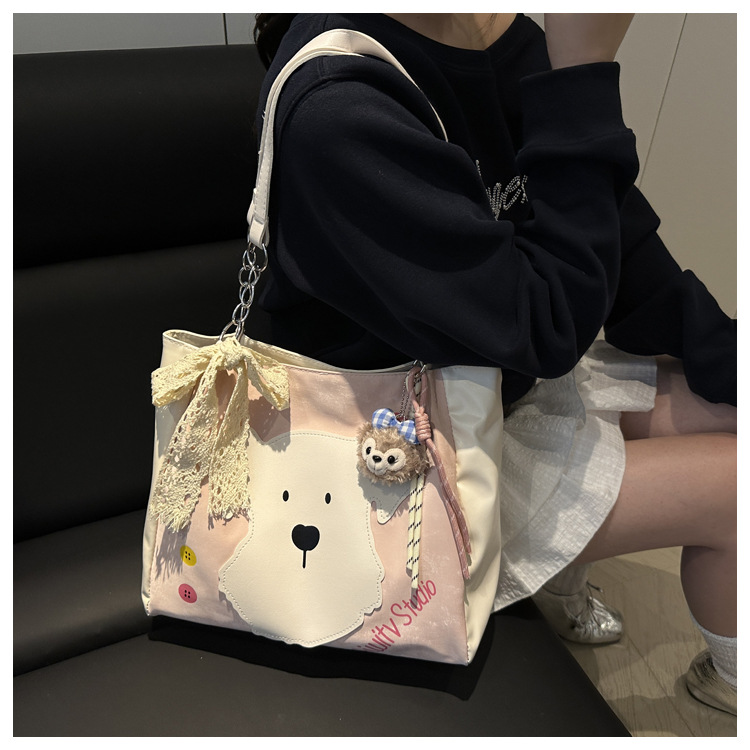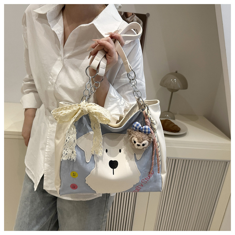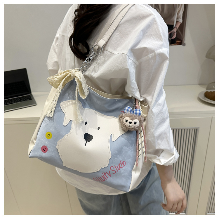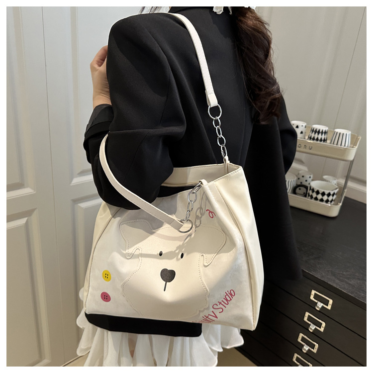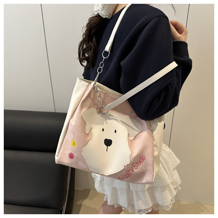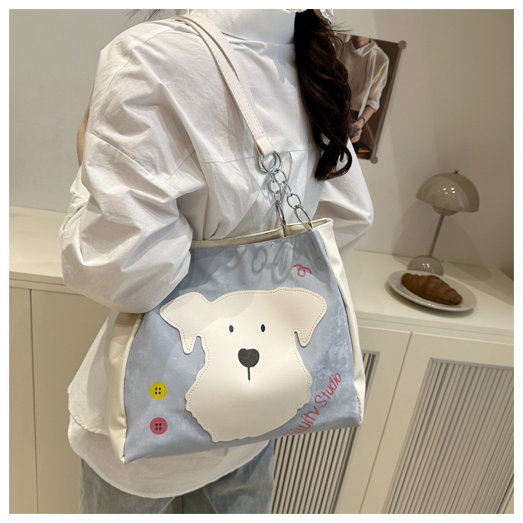 여성용 가방 2025 여름 새로운 인기 통근 패션 귀여운 강아지 패턴 디자인 원 숄더 크로스 바디 버킷 백