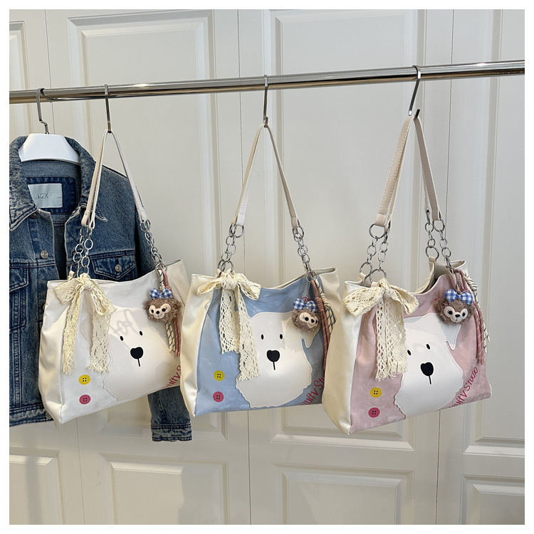 여성용 가방 2025 여름 새로운 인기 통근 패션 귀여운 강아지 패턴 디자인 원 숄더 크로스 바디 버킷 백스토어 가기