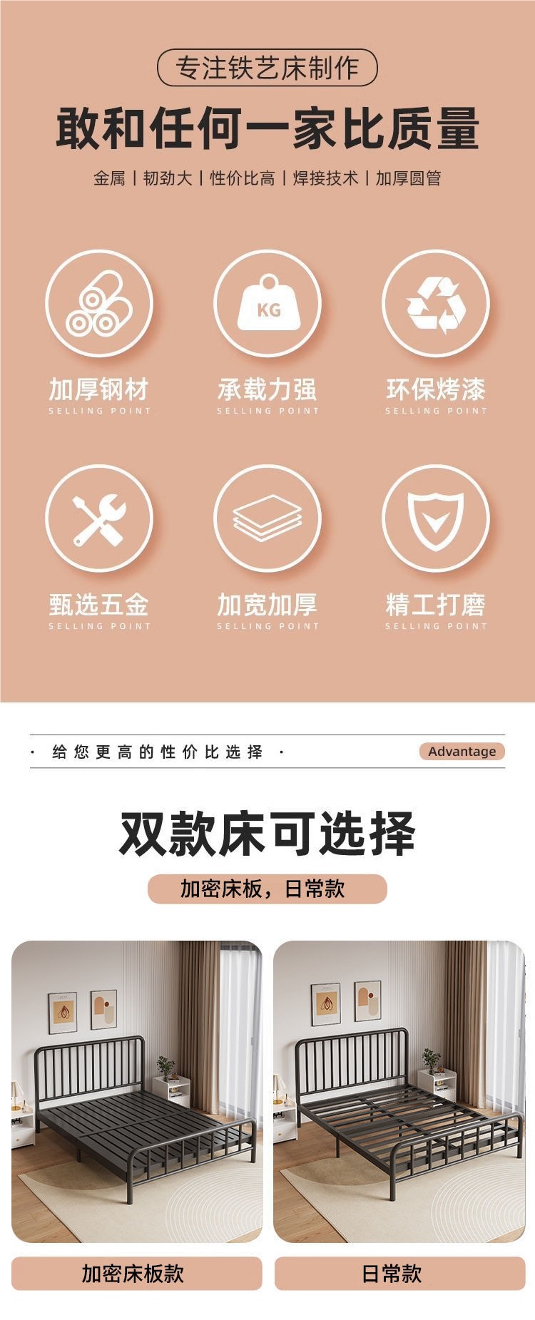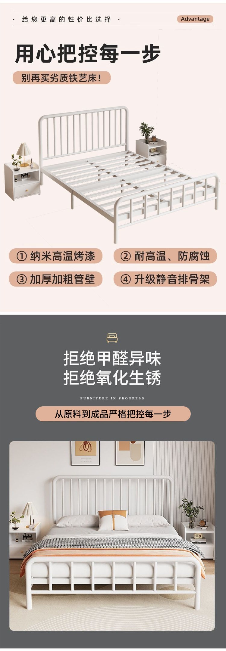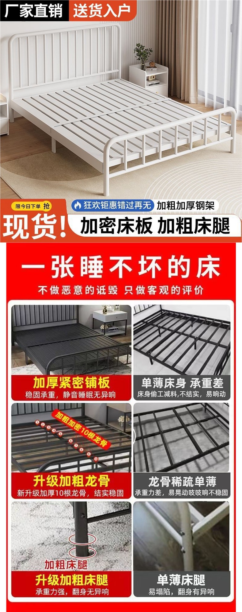 내구성이 뛰어난 심플한 철제 침대 더블 침대 1.8m 철제 침대 싱글 1.6m m 철제 프레임 침대 홈 렌탈 룸 인터넷 연예인