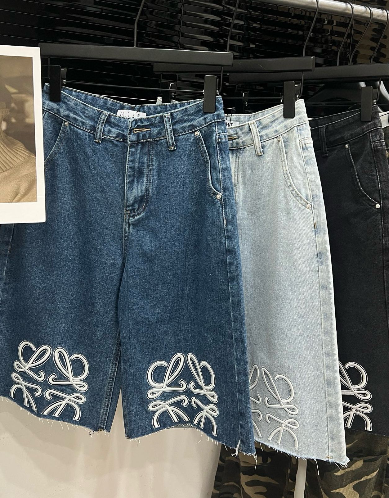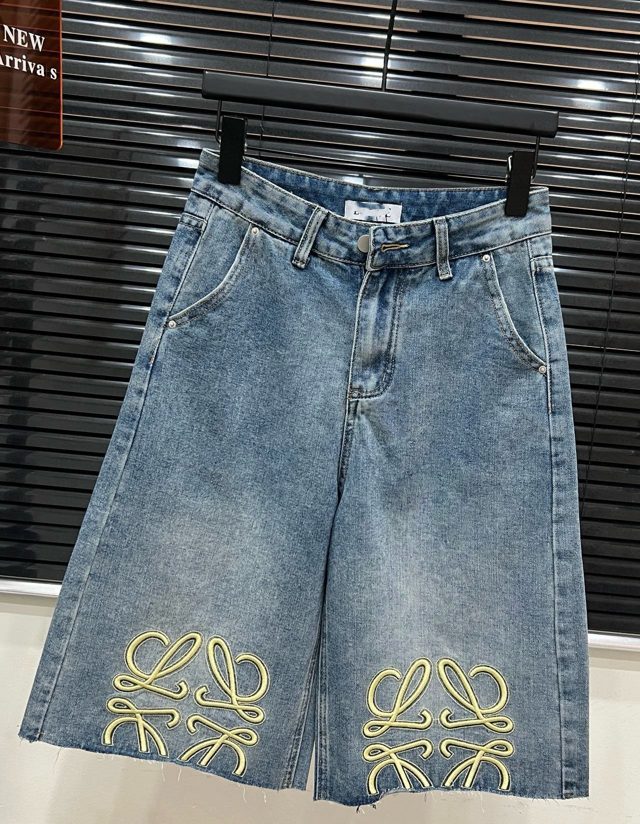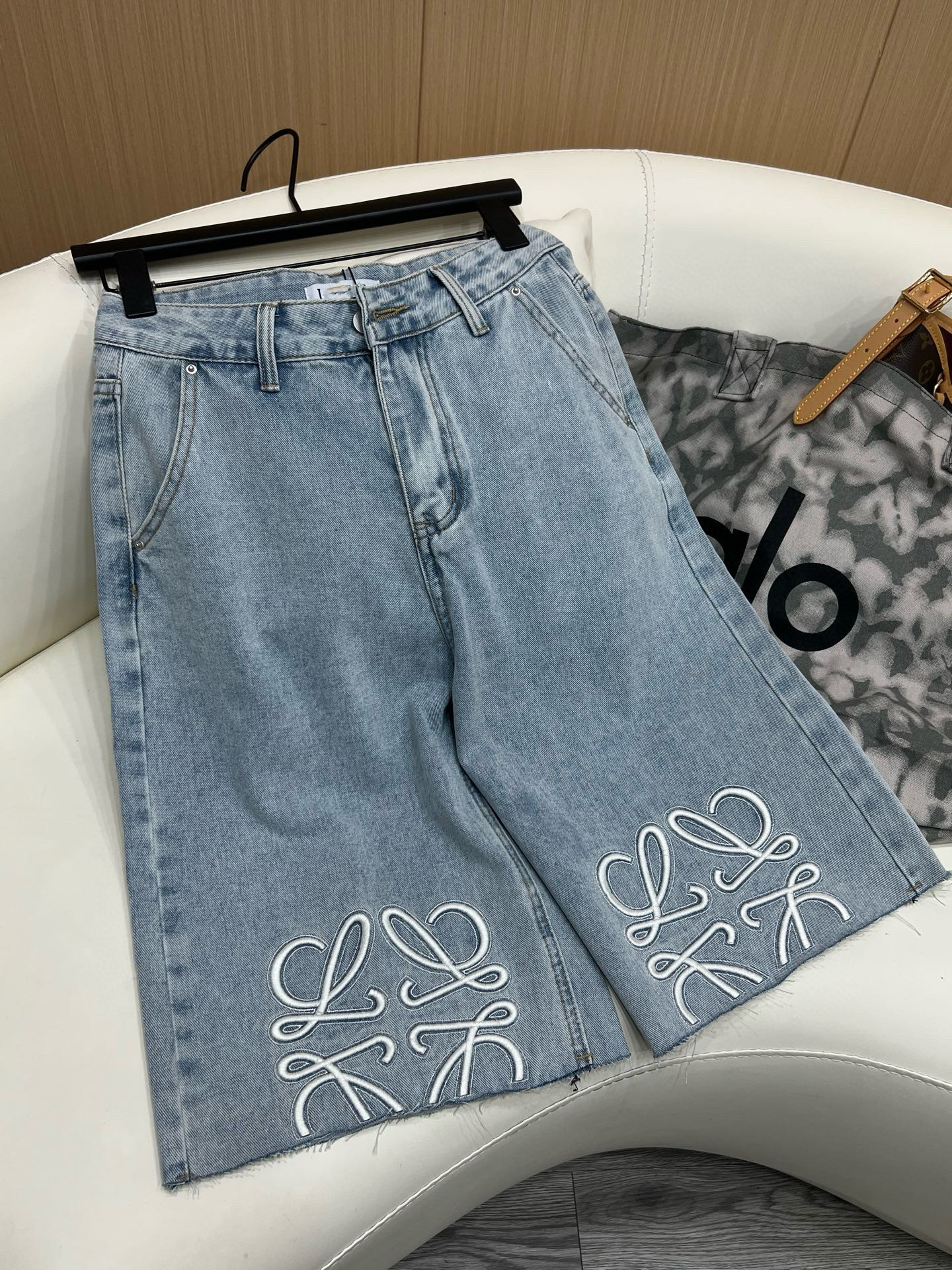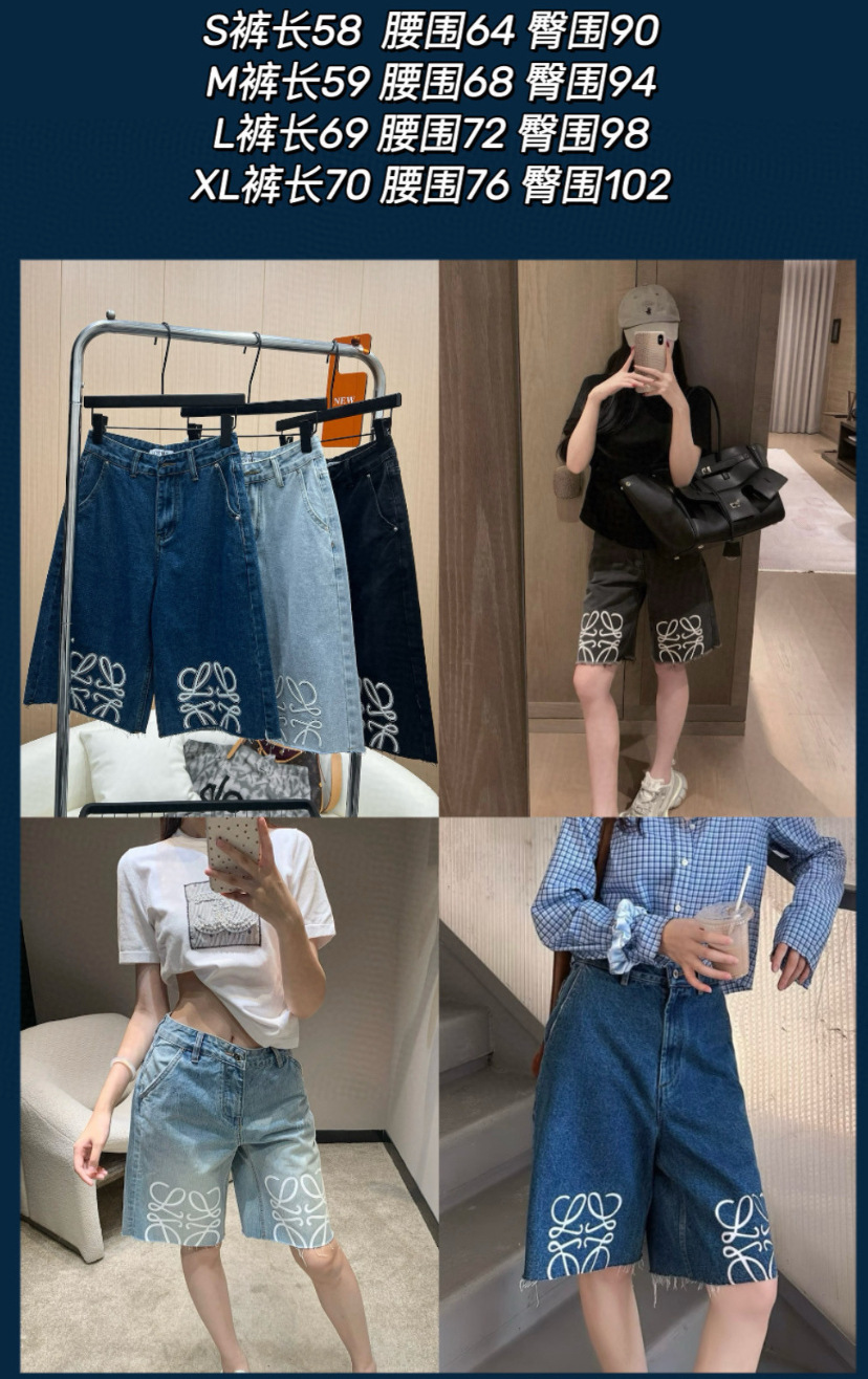 트렌디 브랜드 LO*WE 자수 반바지 데님 팬츠 여성 캐주얼 스트레이트 팬츠 루즈핏 패셔너블 워싱 팬츠스토어 가기