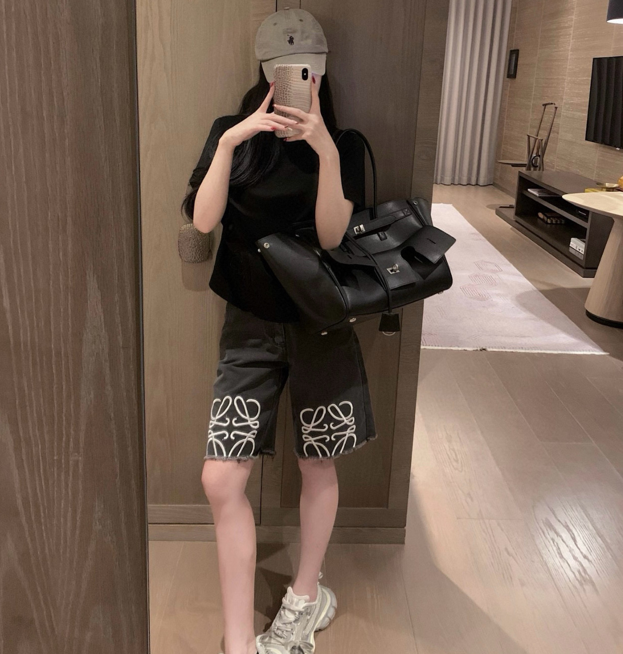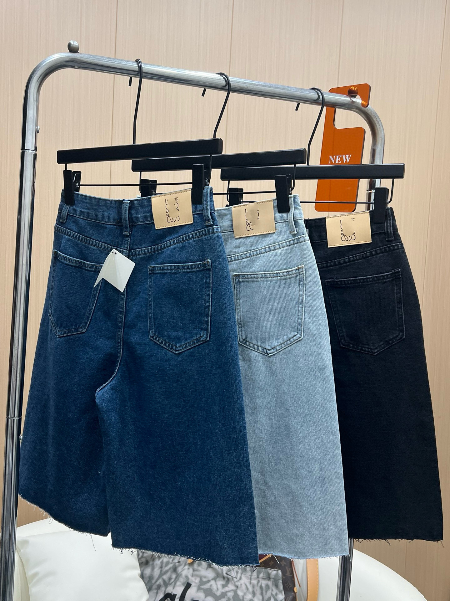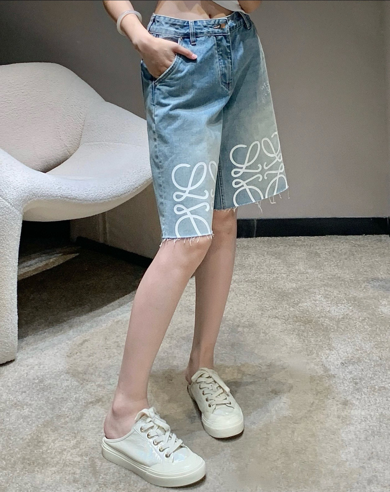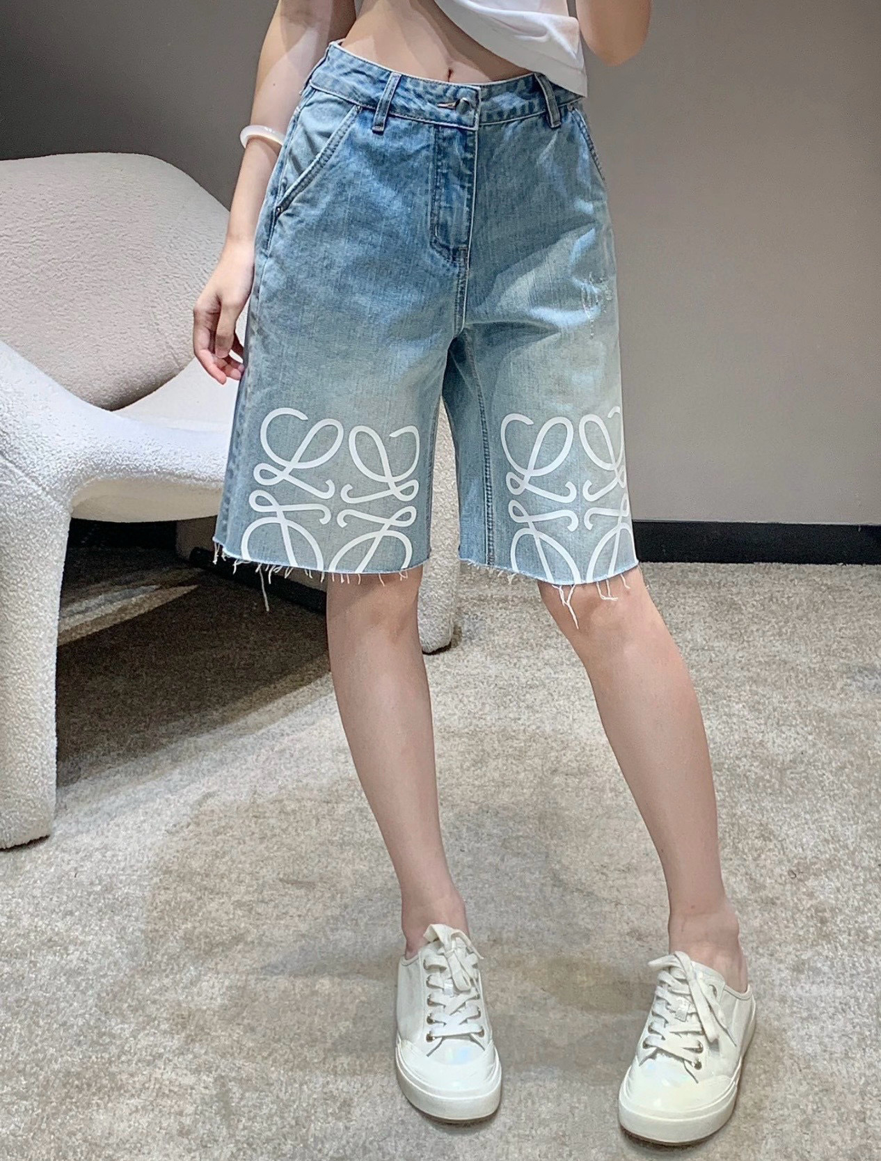 트렌디 브랜드 LO*WE 자수 반바지 데님 팬츠 여성 캐주얼 스트레이트 팬츠 루즈핏 패셔너블 워싱 팬츠스토어 가기