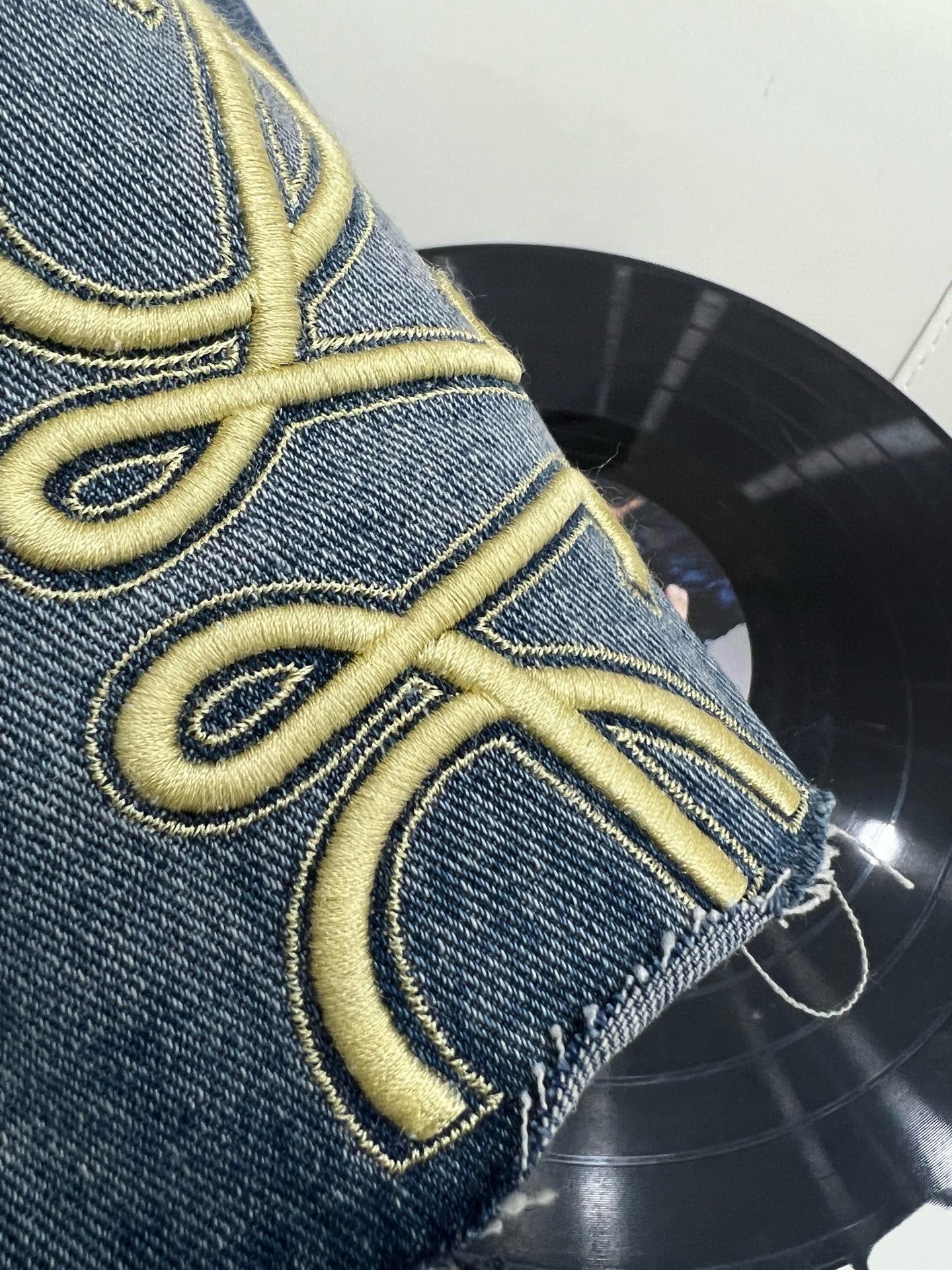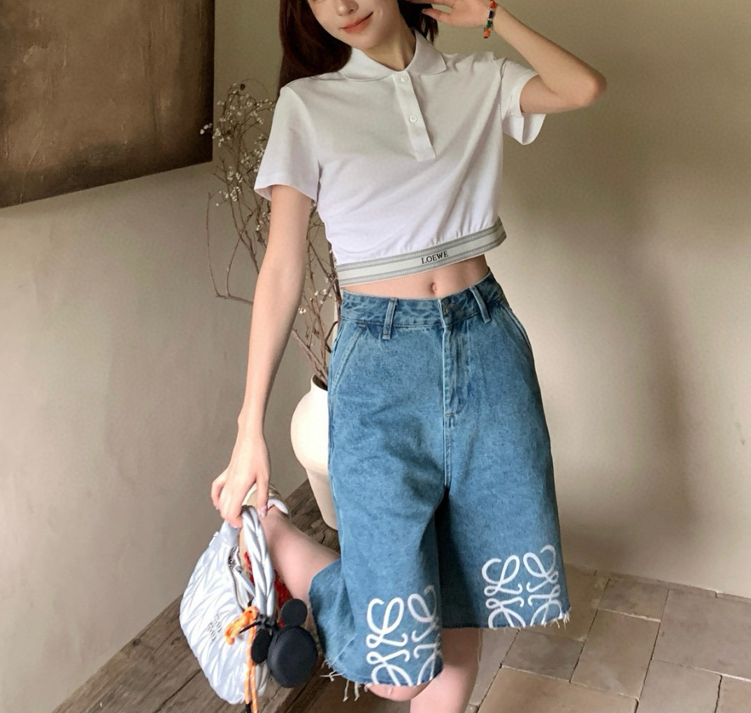 트렌디 브랜드 LO*WE 자수 반바지 데님 팬츠 여성 캐주얼 스트레이트 팬츠 루즈핏 패셔너블 워싱 팬츠