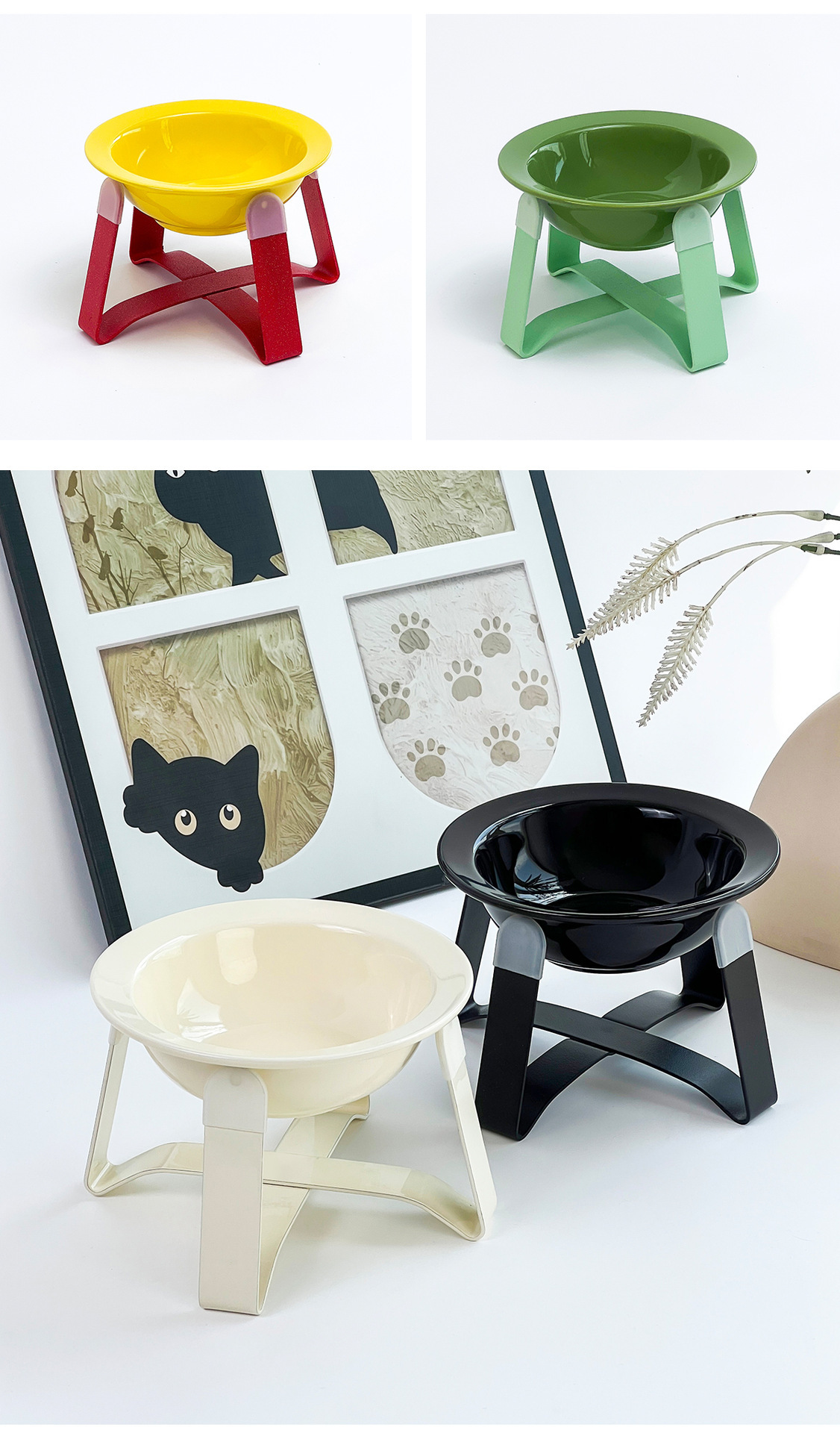한국산 애완동물 그릇, 비행접시 그릇, 목보호대, 키가 큰 개와 고양이 사료 그릇, 식수 그릇, 세라믹 고양이 그릇, 브래킷이 있는 검은 턱 방지