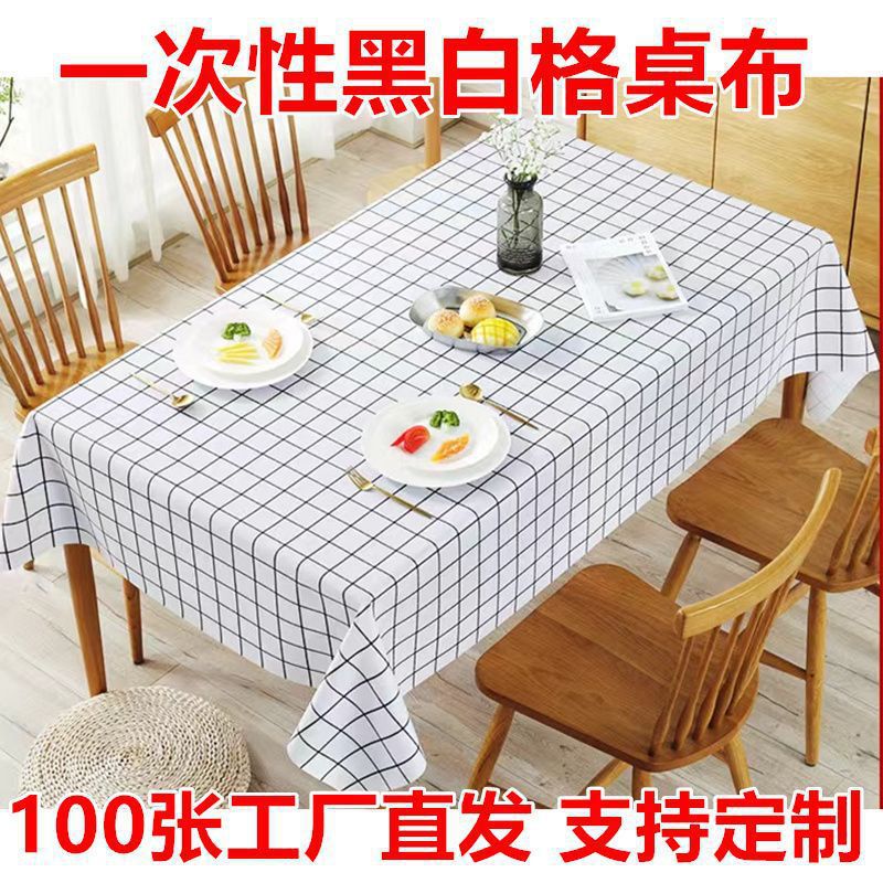 레스토랑 및 호텔용 상업용 일회용 식탁보 100장, 빨간색 격자무늬 사각형 및 원형 테이블, 매우 두꺼운 플라스틱 방수