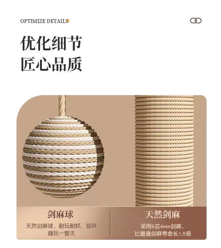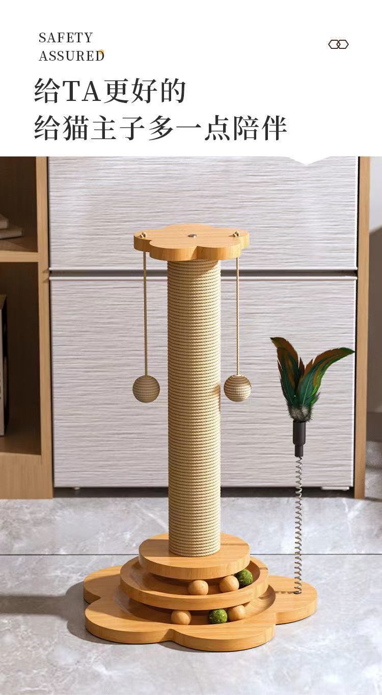 수직 일체형 내마모성 소나무 고양이 스크래치 보드, 고양이 클라이밍 프레임, 클로가 떨어지지 않는 고양이 스크래치 컬럼, 지루함 해소 고양이 장난감, 셀프 히트 칩