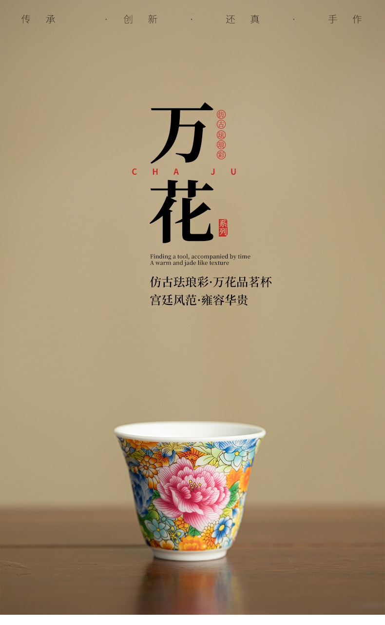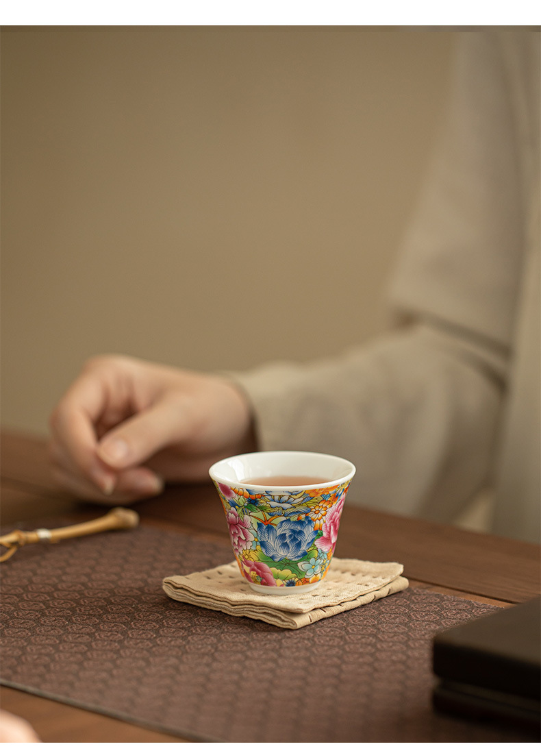 궁전 스타일 에나멜 찻잔, 마스터 컵, 게스트 컵, 찻잔, 세라믹 차 세트, 가정용 찻잔, 작은 찻그릇, 쿵푸 차스토어 가기