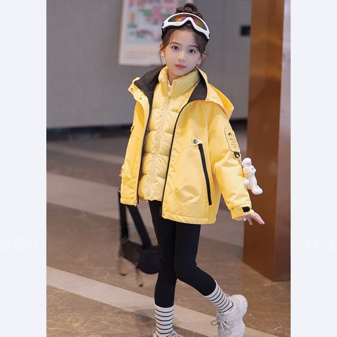 여아용 재킷 2025 새로운 3-in-one 작업 재킷 방풍 그래핀 열 저장 등산 재킷 다운 코튼 재킷