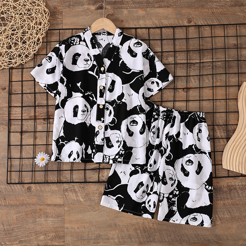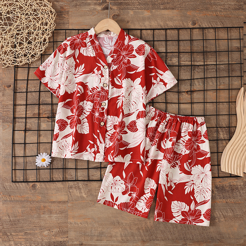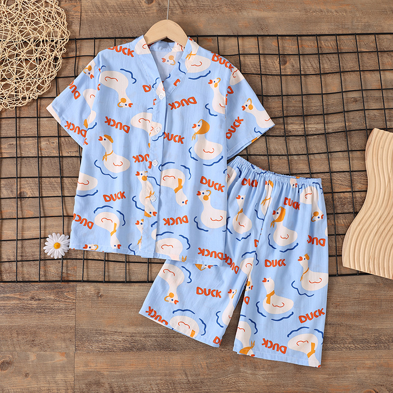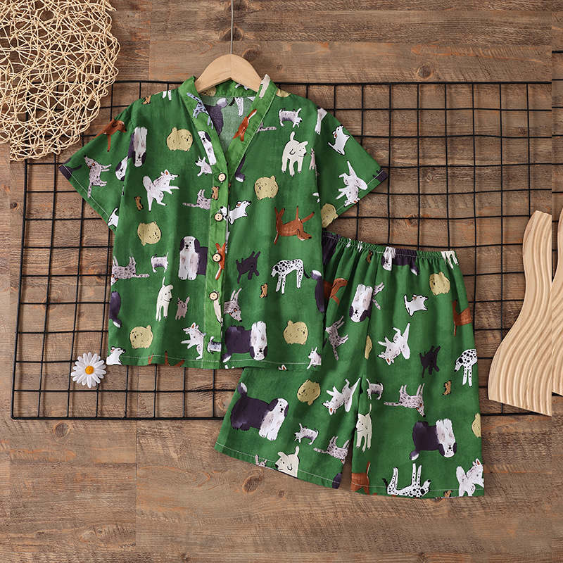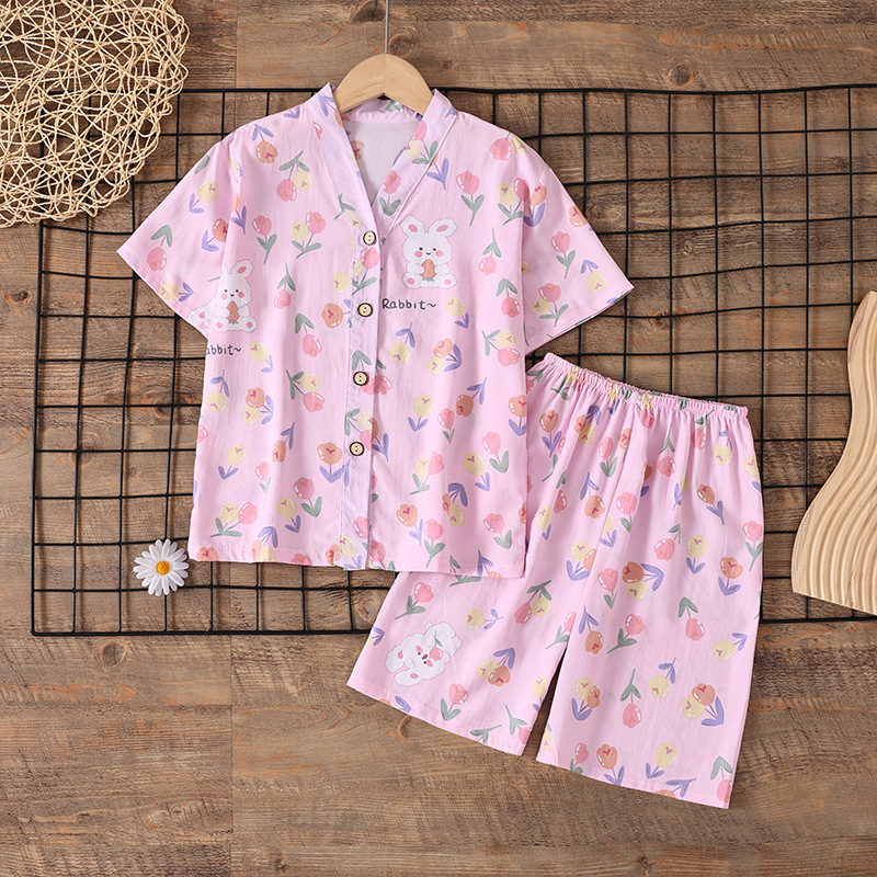 여름 소년 얇은 잠옷 어린이 소녀 청소년 면화 실크 가정 의류 소녀 아기 반팔 면화 실크 양복