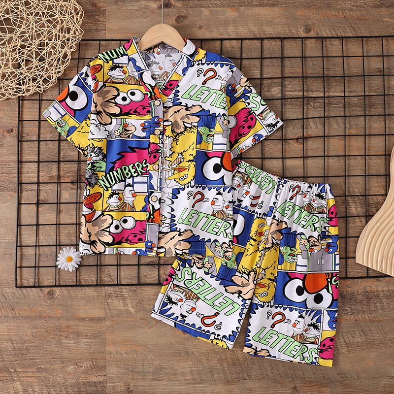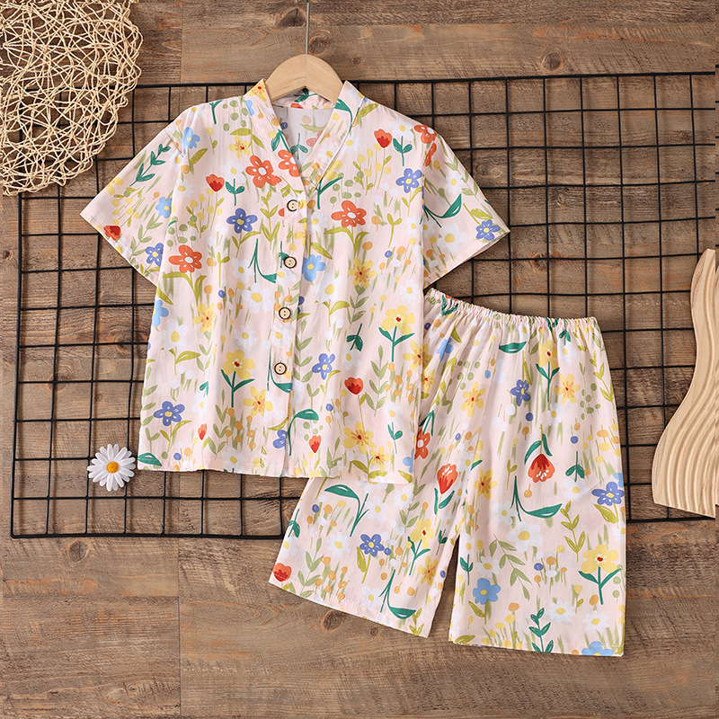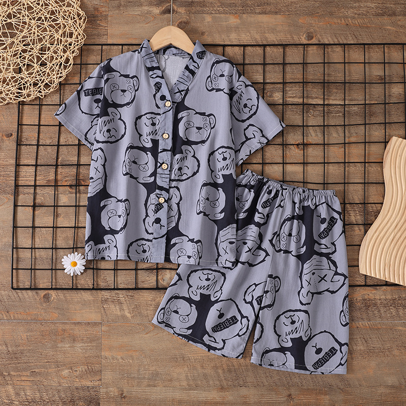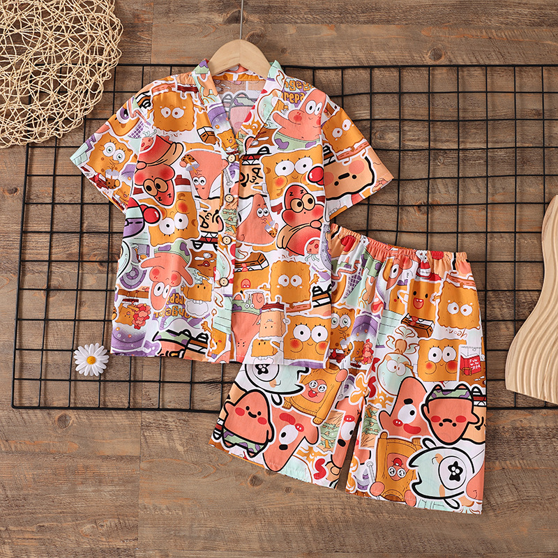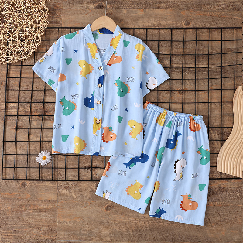 여름 소년 얇은 잠옷 어린이 소녀 청소년 면화 실크 가정 의류 소녀 아기 반팔 면화 실크 양복스토어 가기