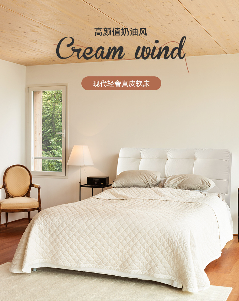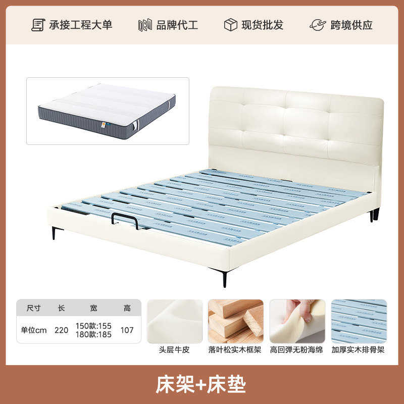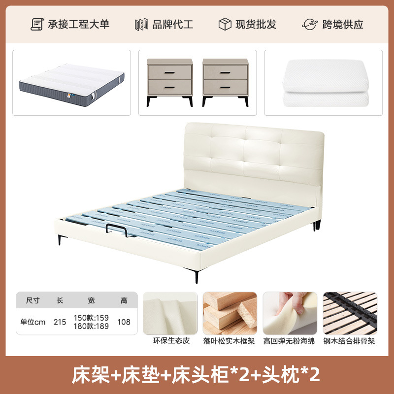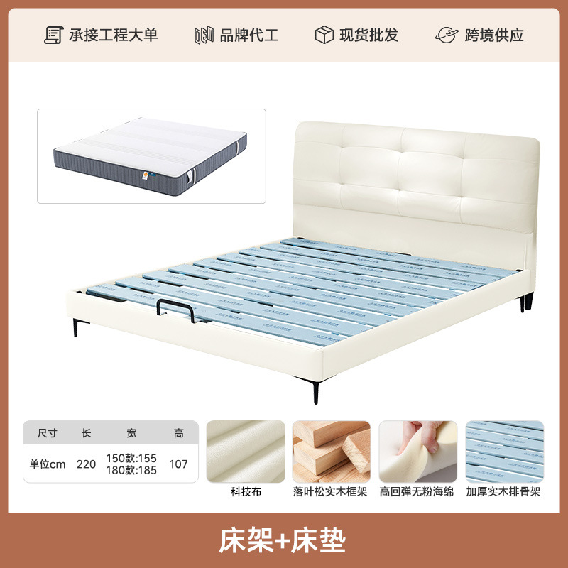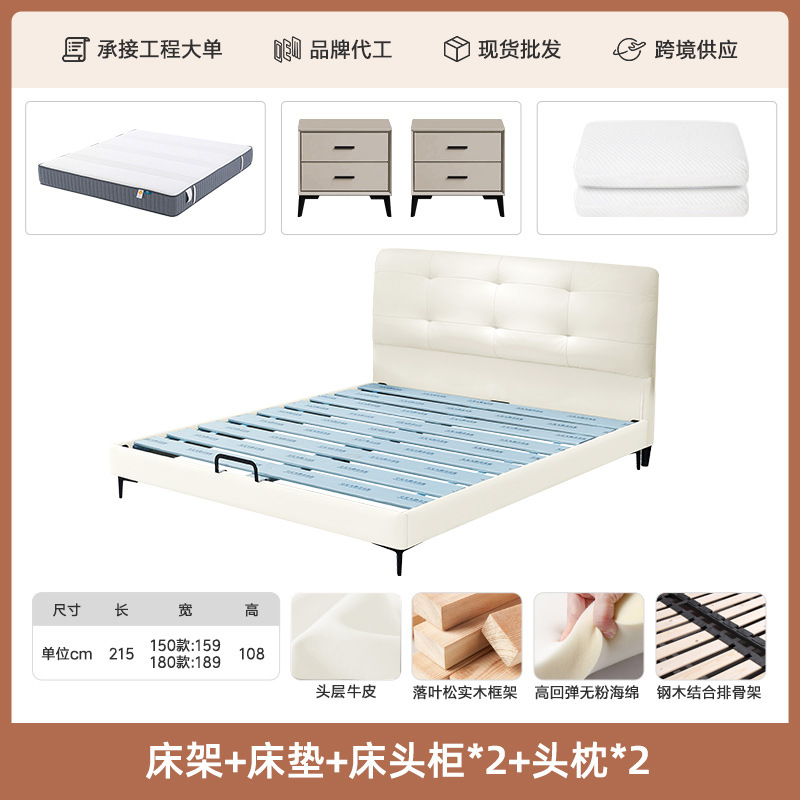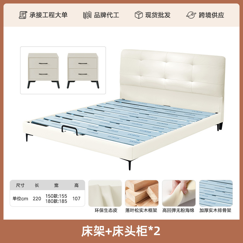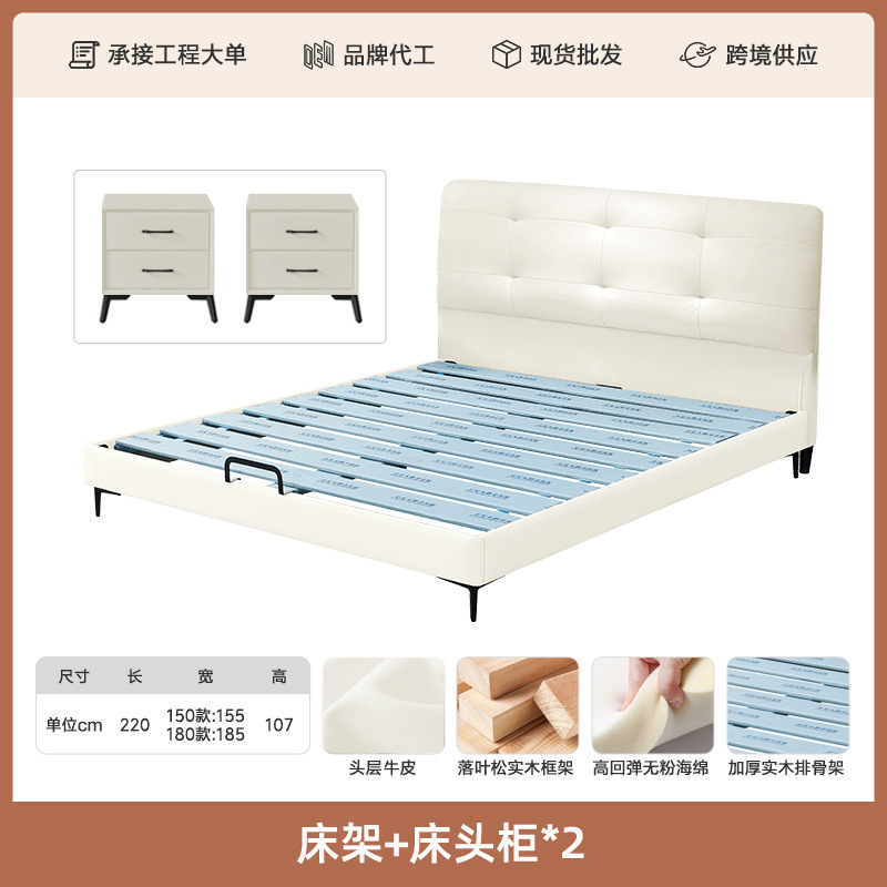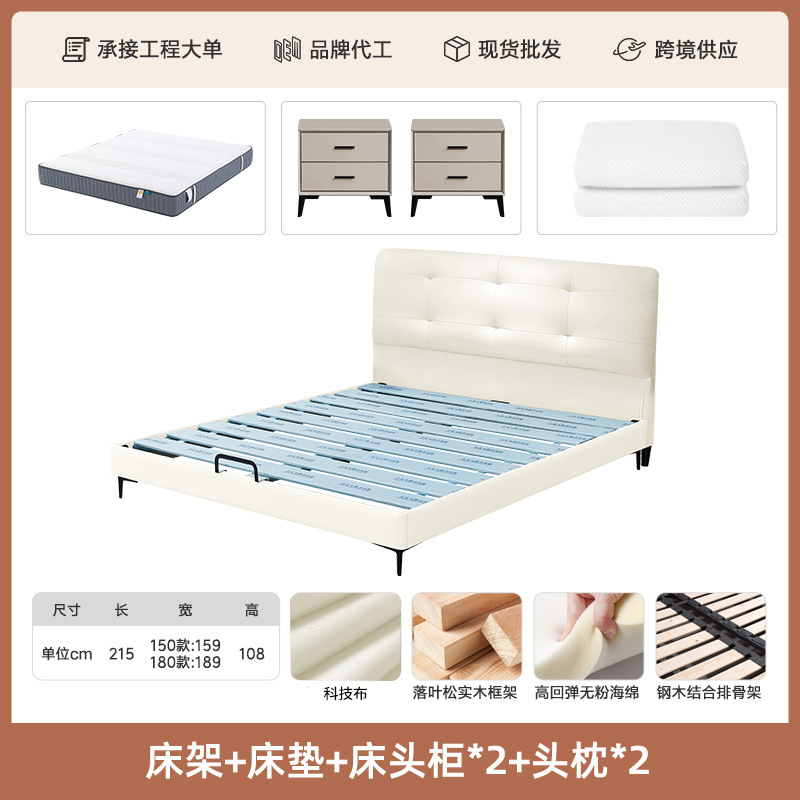 프렌치 심플 크림 스타일 모던 테크놀로지 가죽 침대, 가벼운 럭셔리 인터넷 인기 요정 구름 더블 침대, 마스터룸용 천연 가죽 침대스토어 가기