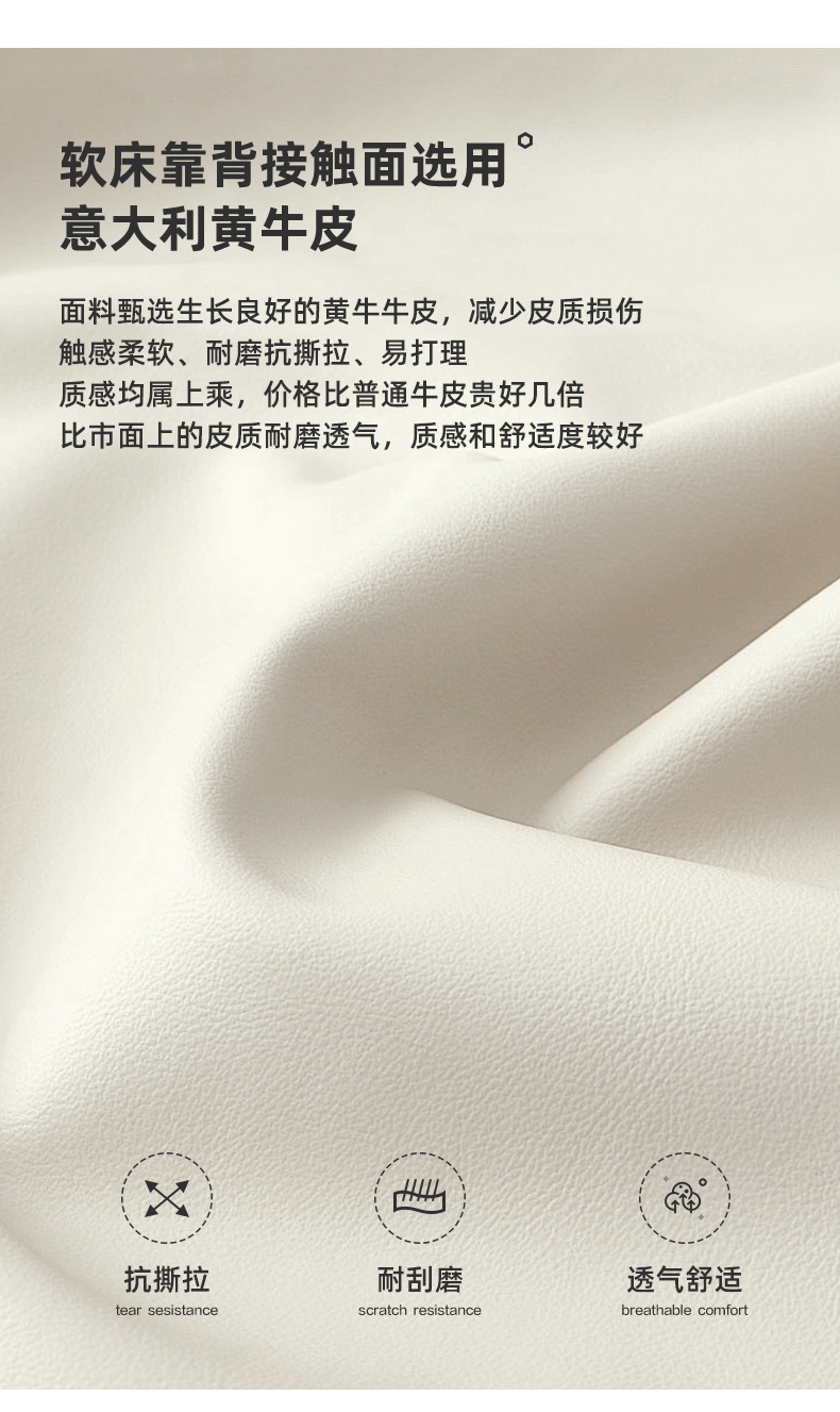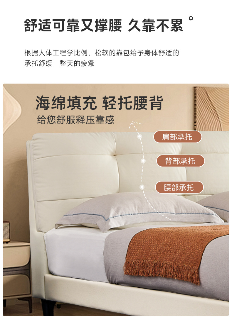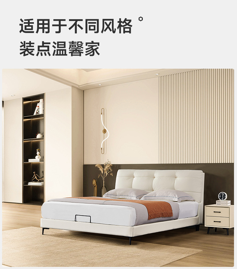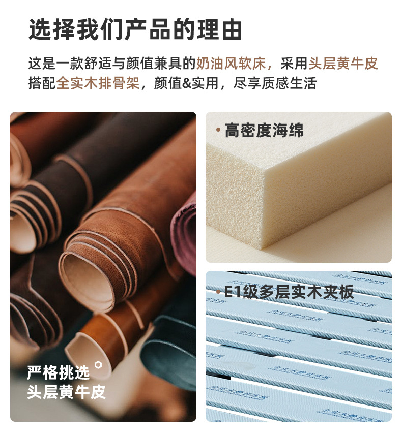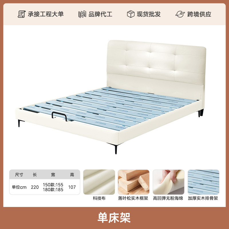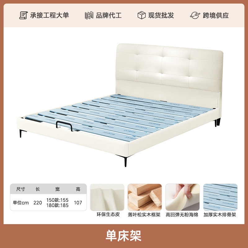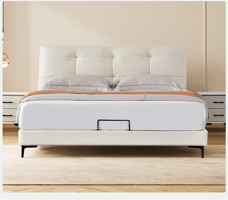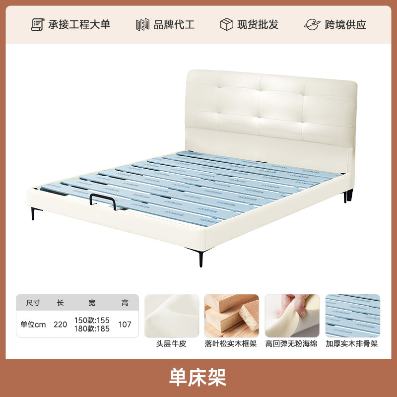 프렌치 심플 크림 스타일 모던 테크놀로지 가죽 침대, 가벼운 럭셔리 인터넷 인기 요정 구름 더블 침대, 마스터룸용 천연 가죽 침대스토어 가기