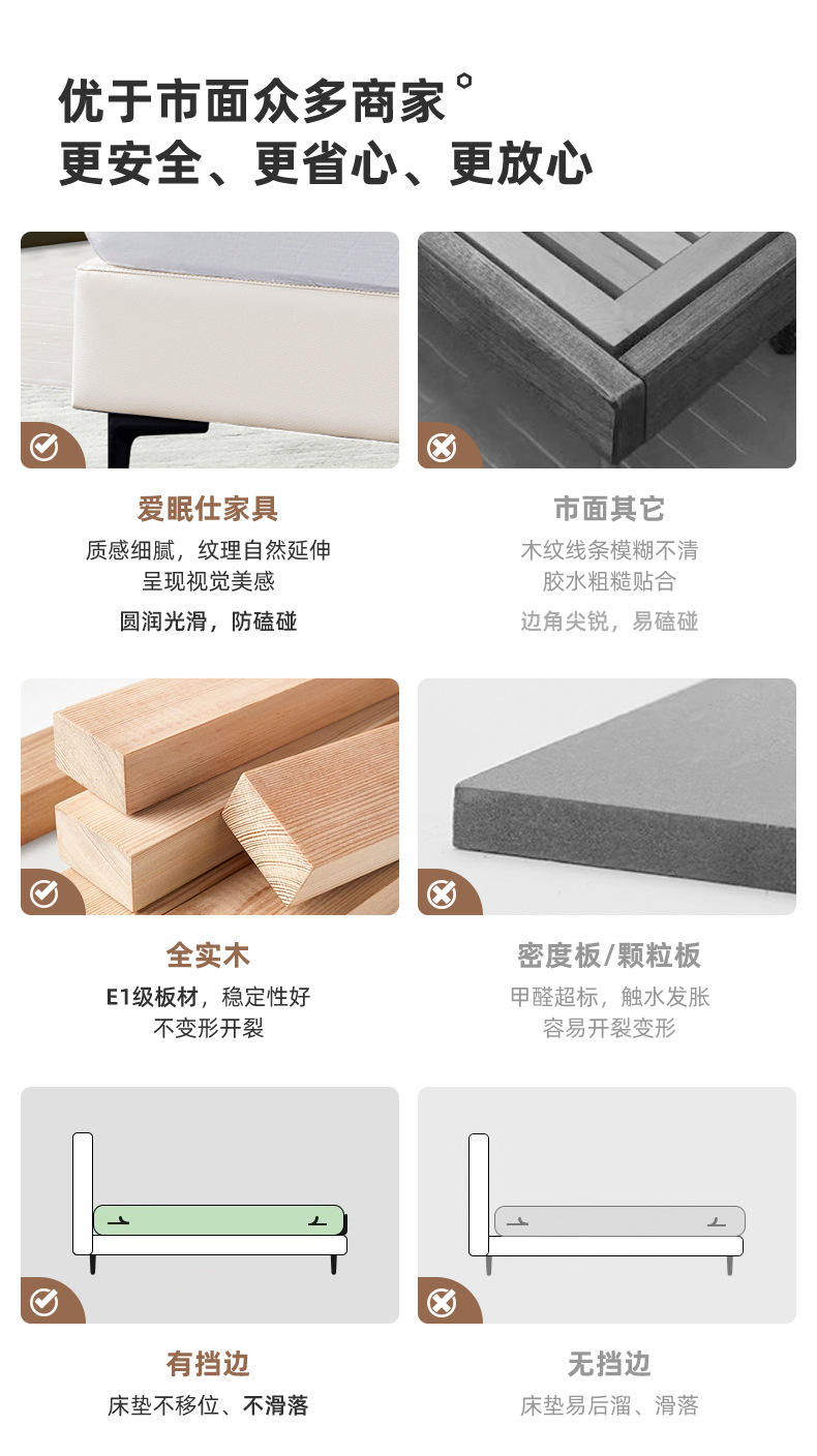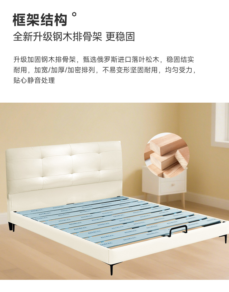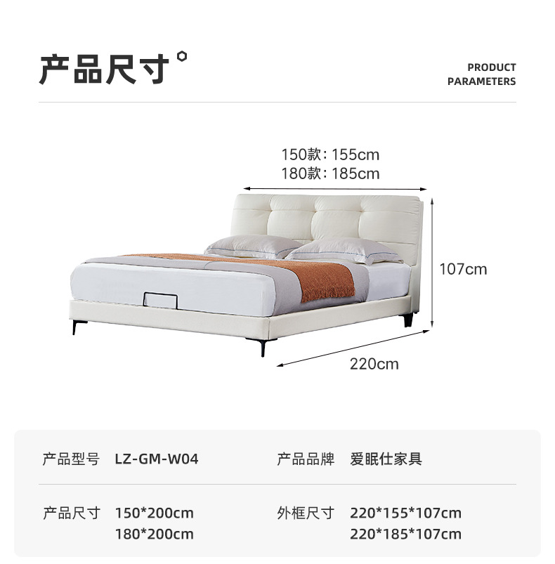 • 1층 소가죽 침대 프레임 [철목 프레임] + 매트리스 [3E 친환경] + 침대 옆 탁자 * 2 무료 머리 받침 * 2