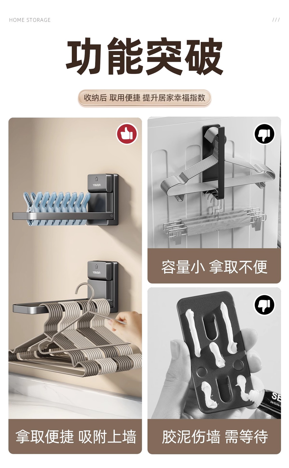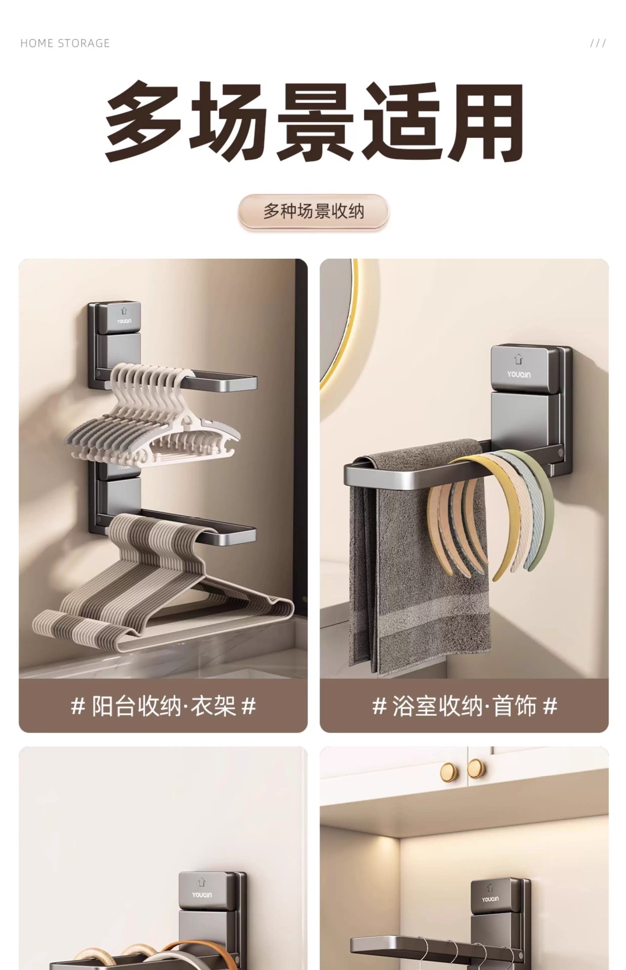 흡착걸이 수납용품, 펀치프리 발코니 벽걸이 접이식 옷걸이, 가정용 수납선반, 옷걸이스토어 가기