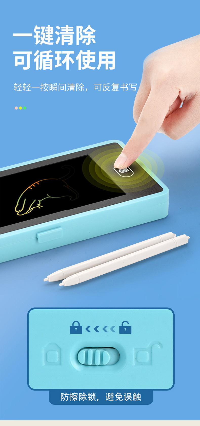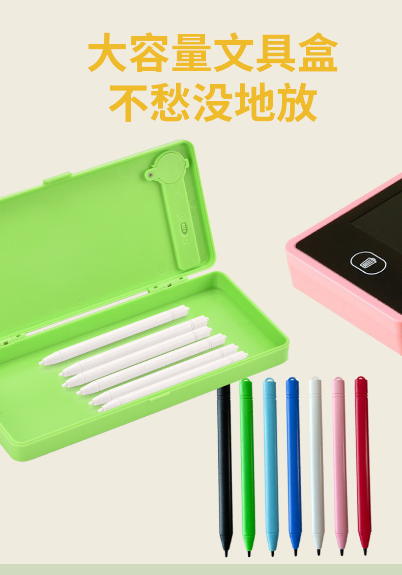 LCD 쓰기 보드 문구 상자 2-in-1 학생 휴대용 저장 연필 문구 상자 서예 그리기 낙서 보드 연습