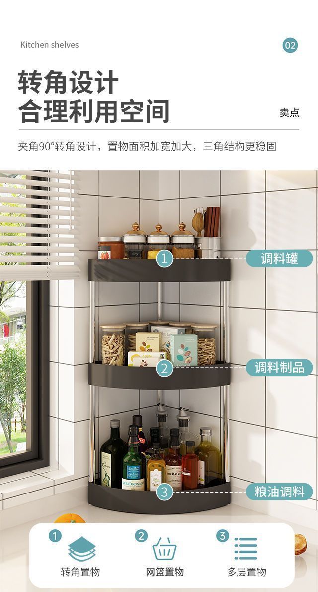 주방 수납 선반, 조리대 코너 삼각형 조미료 선반, 기름, 소금, 소스 및 식초 다층 수납 선반, 욕실 세면대 코너 선반스토어 가기