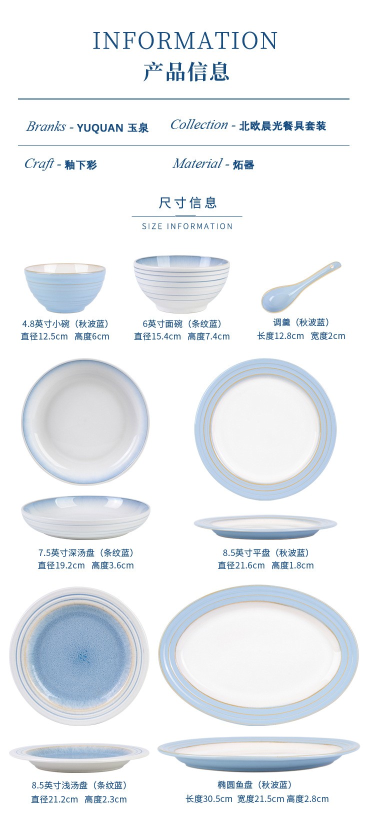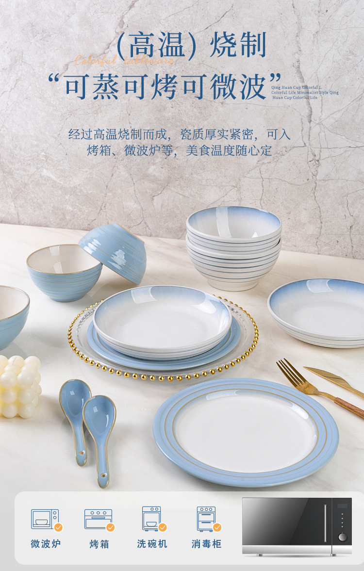 Yuquan 도자기 공장 직접 판매 Qinghuan 파란색과 흰색 가정용 Underglaze 색상 야채 접시 수프 접시 밥 그릇 식기 라이트 럭셔리 스타일 그릇과 접시스토어 가기
