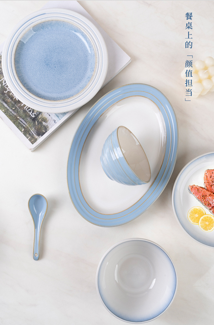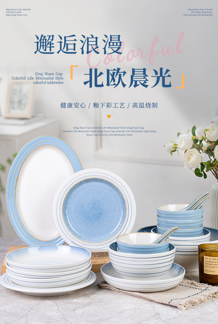 Yuquan 도자기 공장 직접 판매 Qinghuan 파란색과 흰색 가정용 Underglaze 색상 야채 접시 수프 접시 밥 그릇 식기 라이트 럭셔리 스타일 그릇과 접시