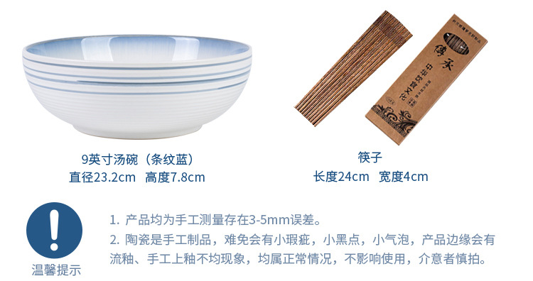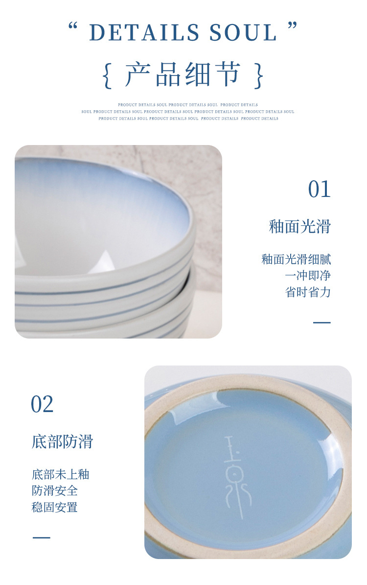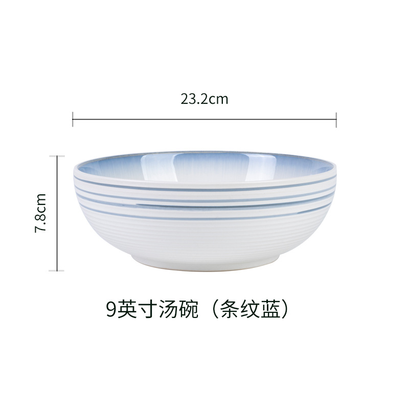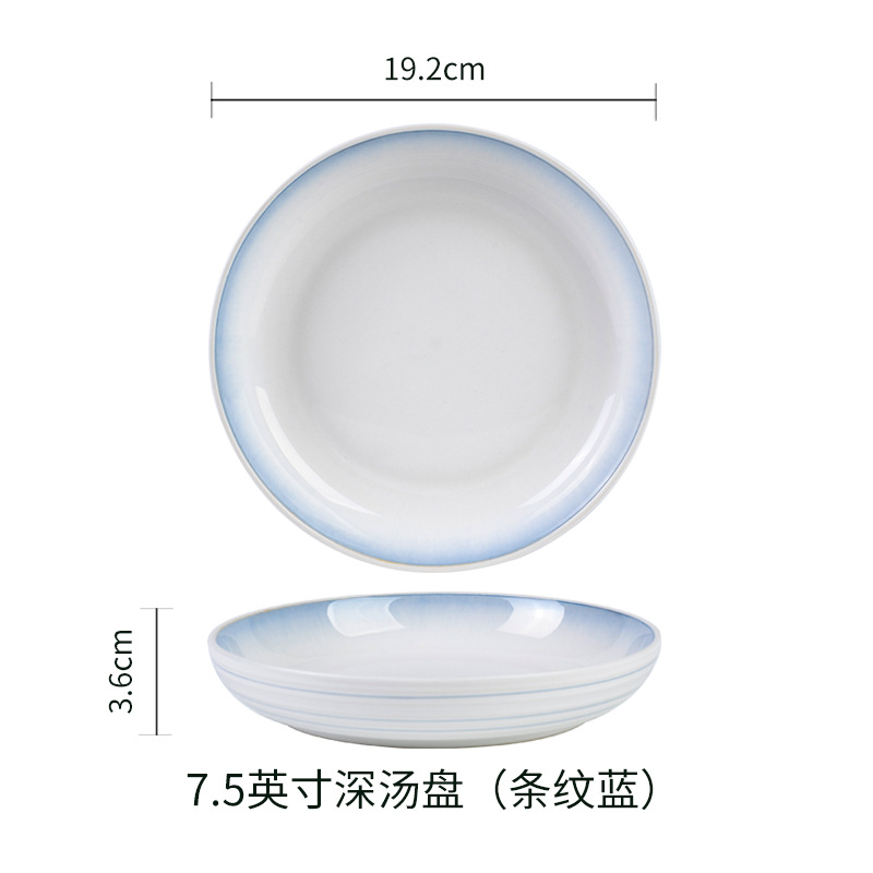 • 7.5inch 깊은 수프 접시 줄무늬 파란색