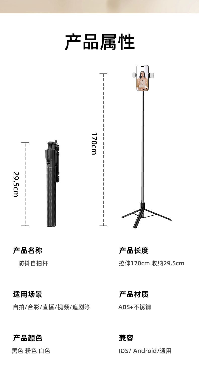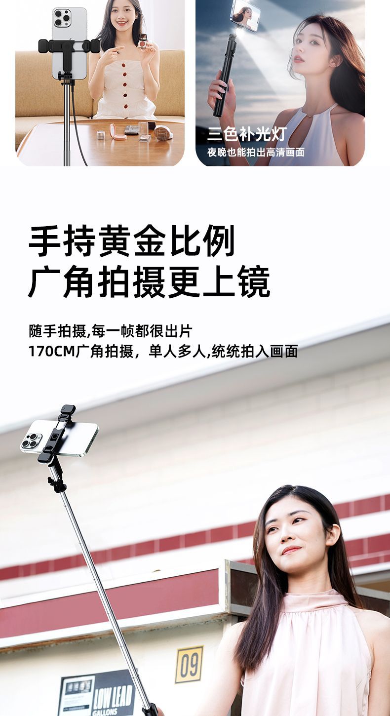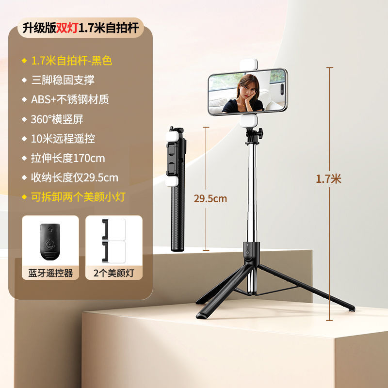 확장형 1.7m 셀카봉 삼각대 다기능 사진 유물 휴대폰 범용 360 ° 회전 스탠드 휴대용스토어 가기