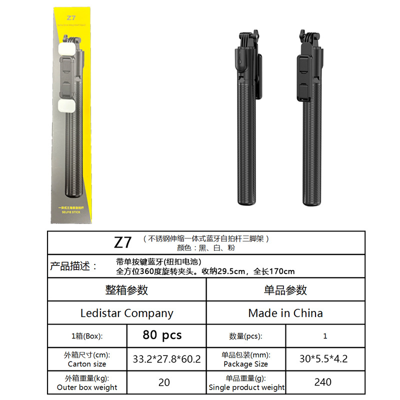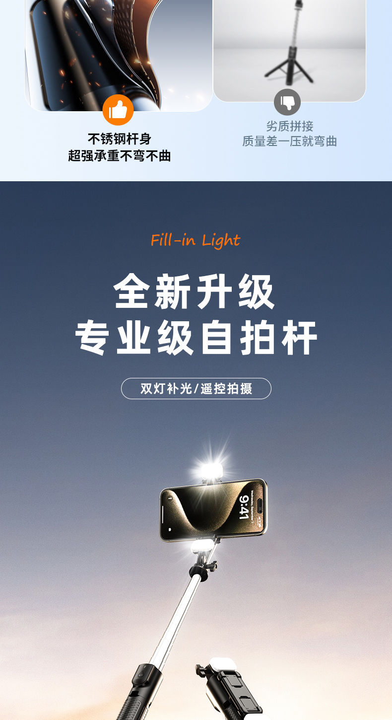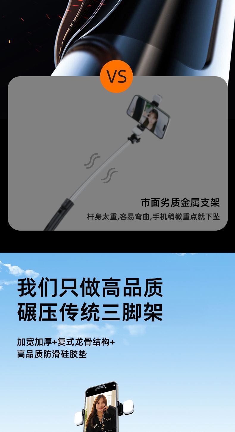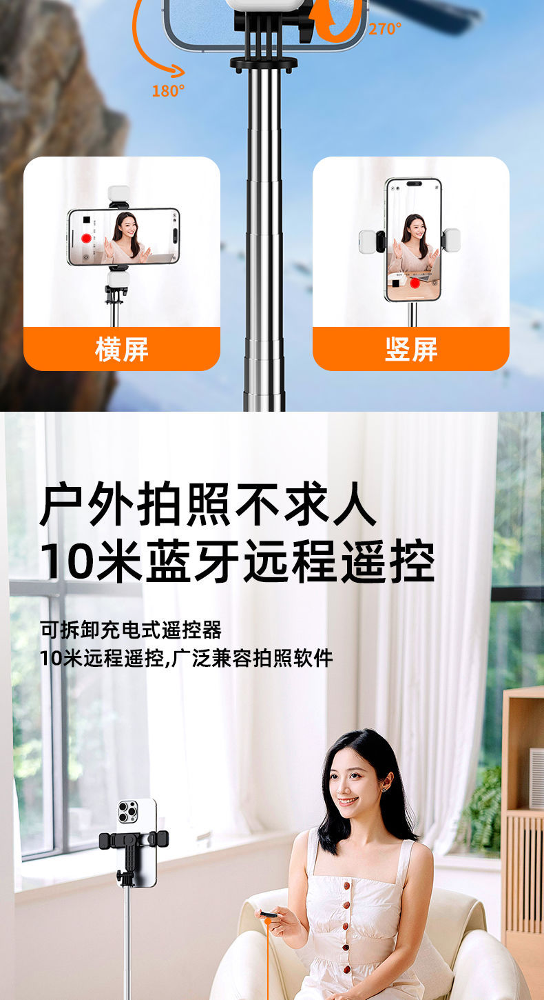 확장형 1.7m 셀카봉 삼각대 다기능 사진 유물 휴대폰 범용 360 ° 회전 스탠드 휴대용스토어 가기