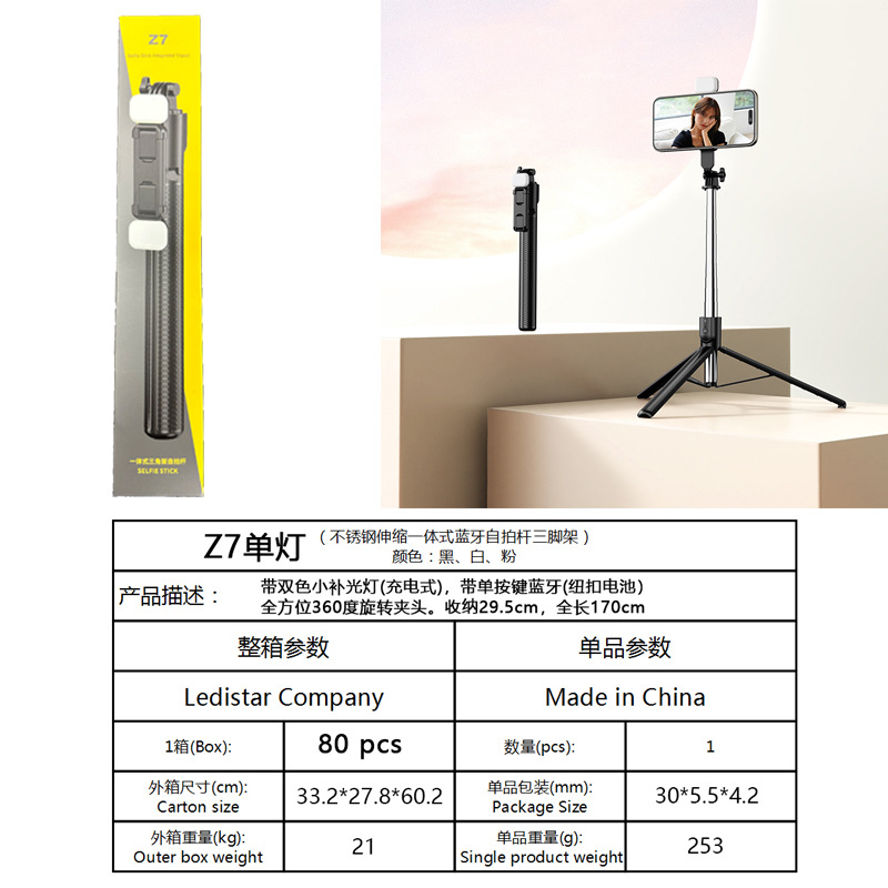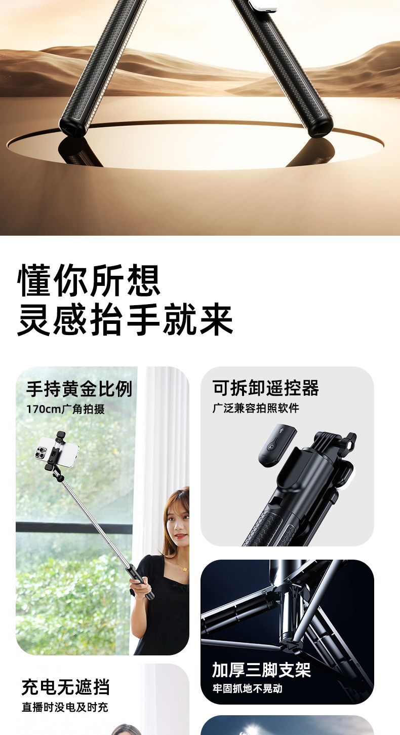 확장형 1.7m 셀카봉 삼각대 다기능 사진 유물 휴대폰 범용 360 ° 회전 스탠드 휴대용