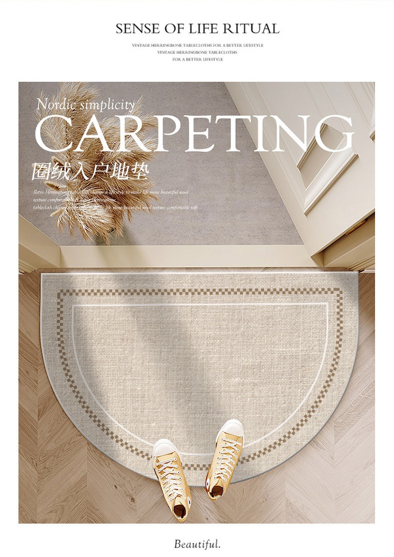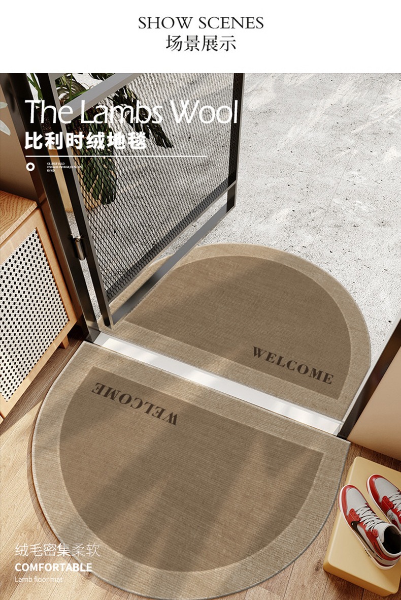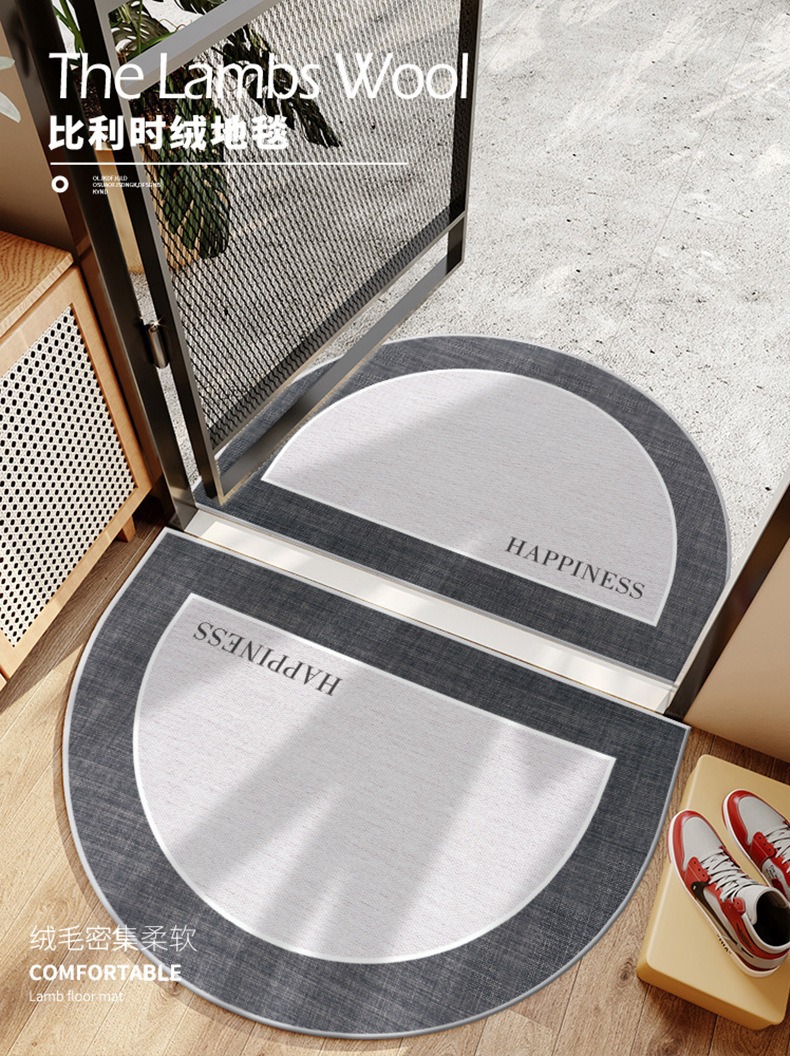 가정용 벨기에 벨벳 TPR 바닥 반원형 출입문 카펫 도매를 위한 간단한 스타일 출입문 미끄럼 방지 먼지 제거 발 매트