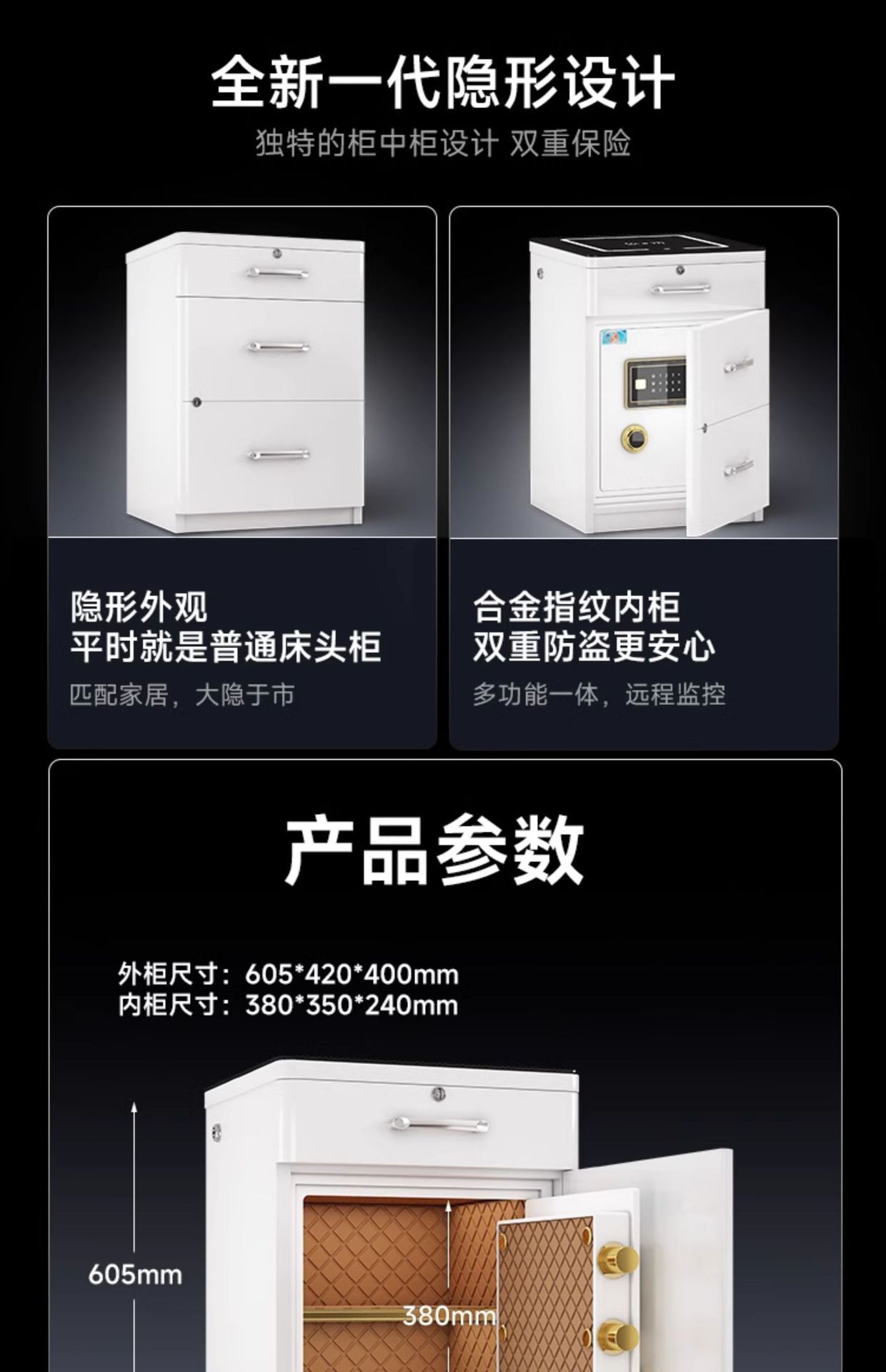 2024 새로운 Tiger 브랜드 60cm 원격 WIFI 알람 침대 옆 테이블과 금고가 통합 된 고급 금고