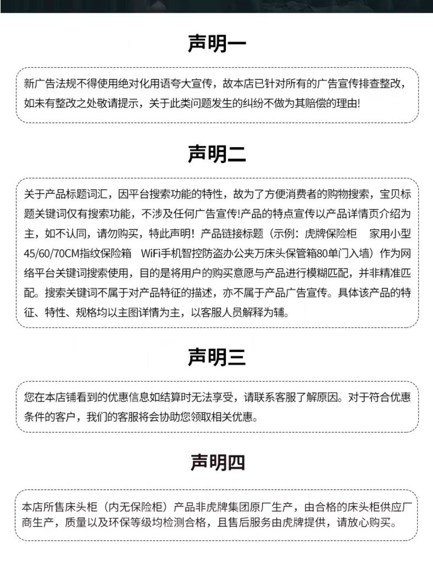 2024 새로운 Tiger 브랜드 60cm 원격 WIFI 알람 침대 옆 테이블과 금고가 통합 된 고급 금고스토어 가기