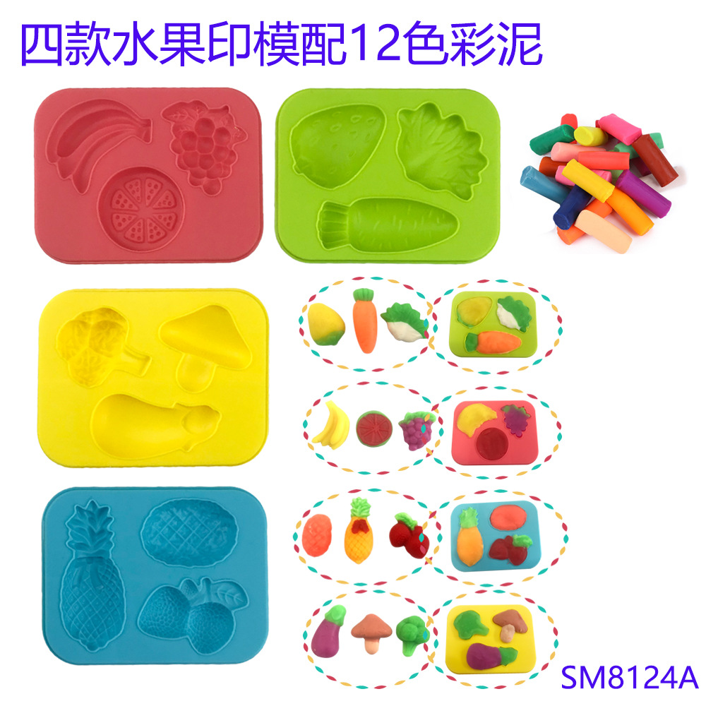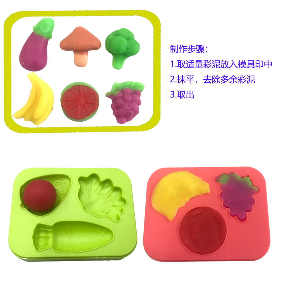 국경 간 어린이 과일 및 야채 점토 금형 세트 장난감 수제 점토 실내 놀이 집 장난감 도매
