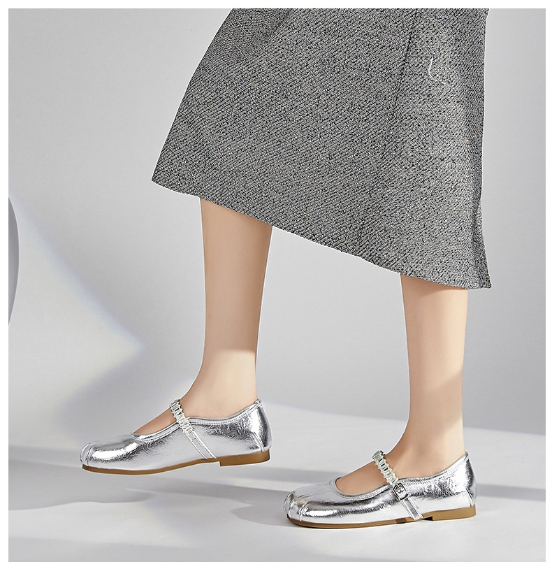 여성을위한 정품 가죽 메리 제인 신발 2025 가을 플랫 플랫 버클 패션 신발 피곤하지 않은 발 캐주얼 실버 여성 신발스토어 가기