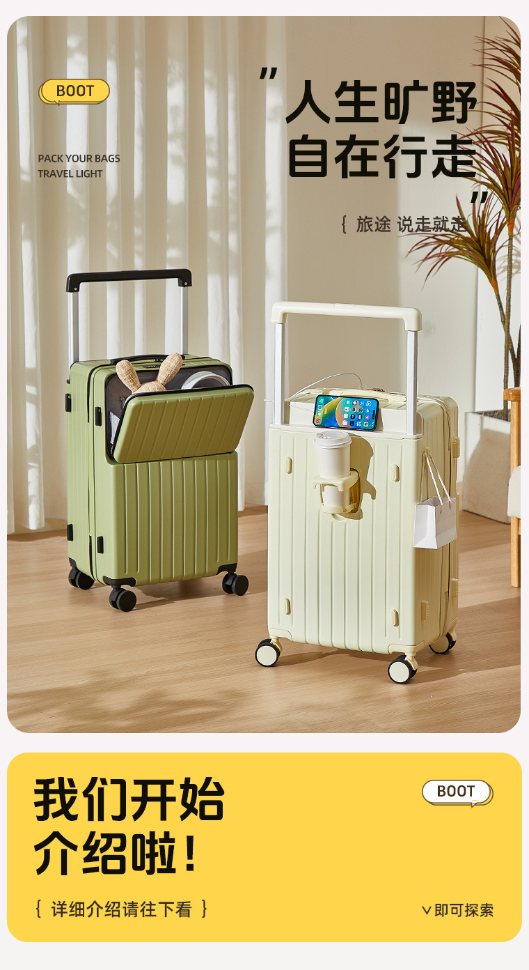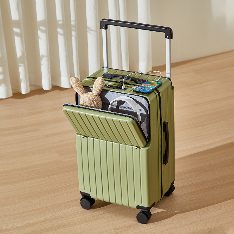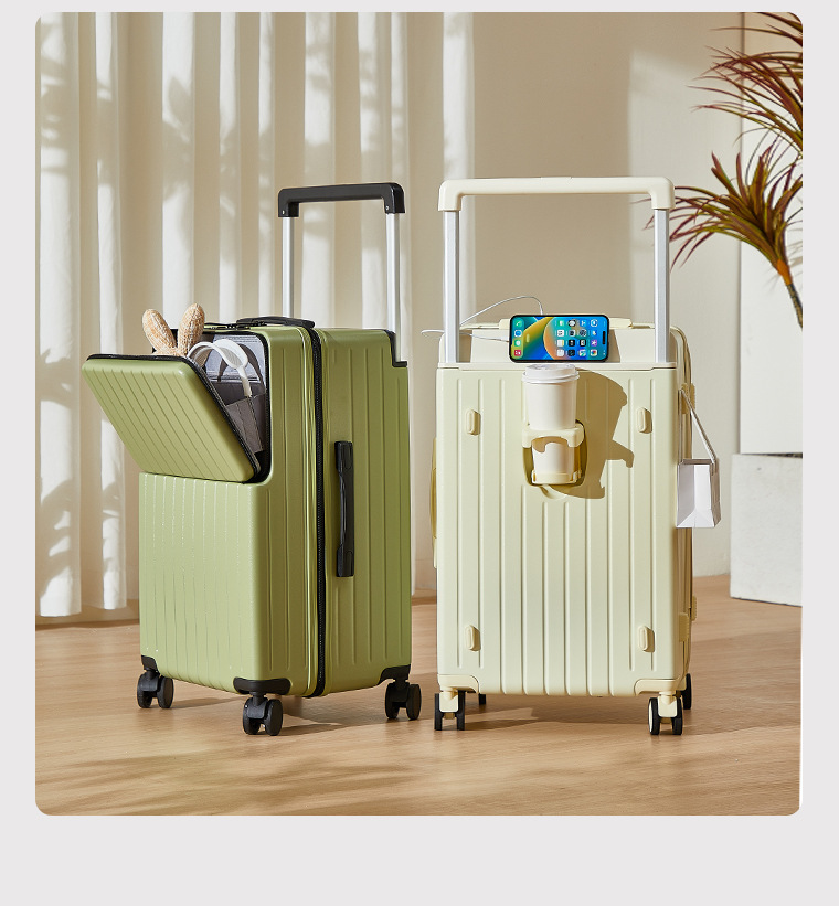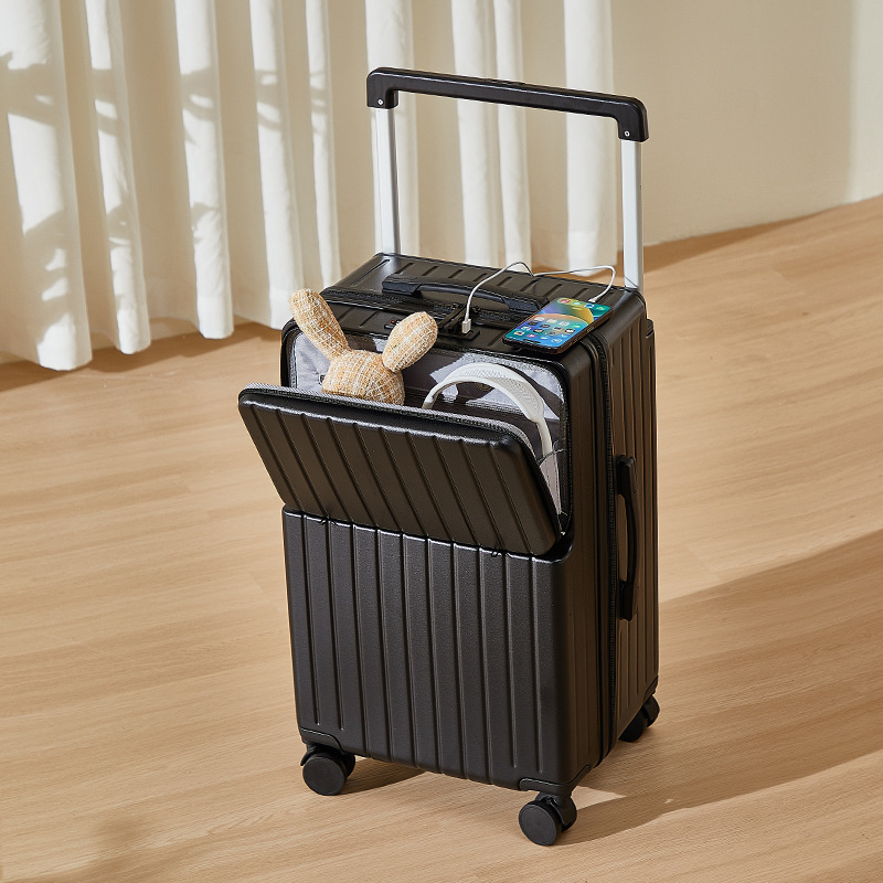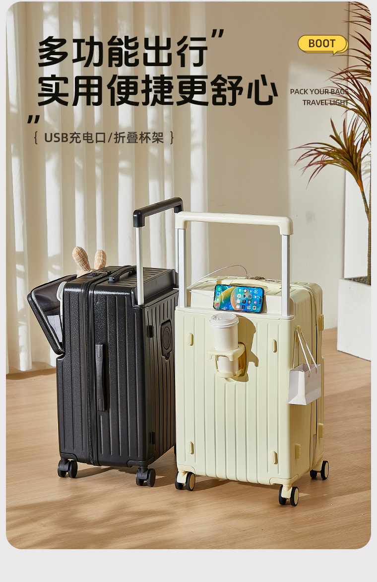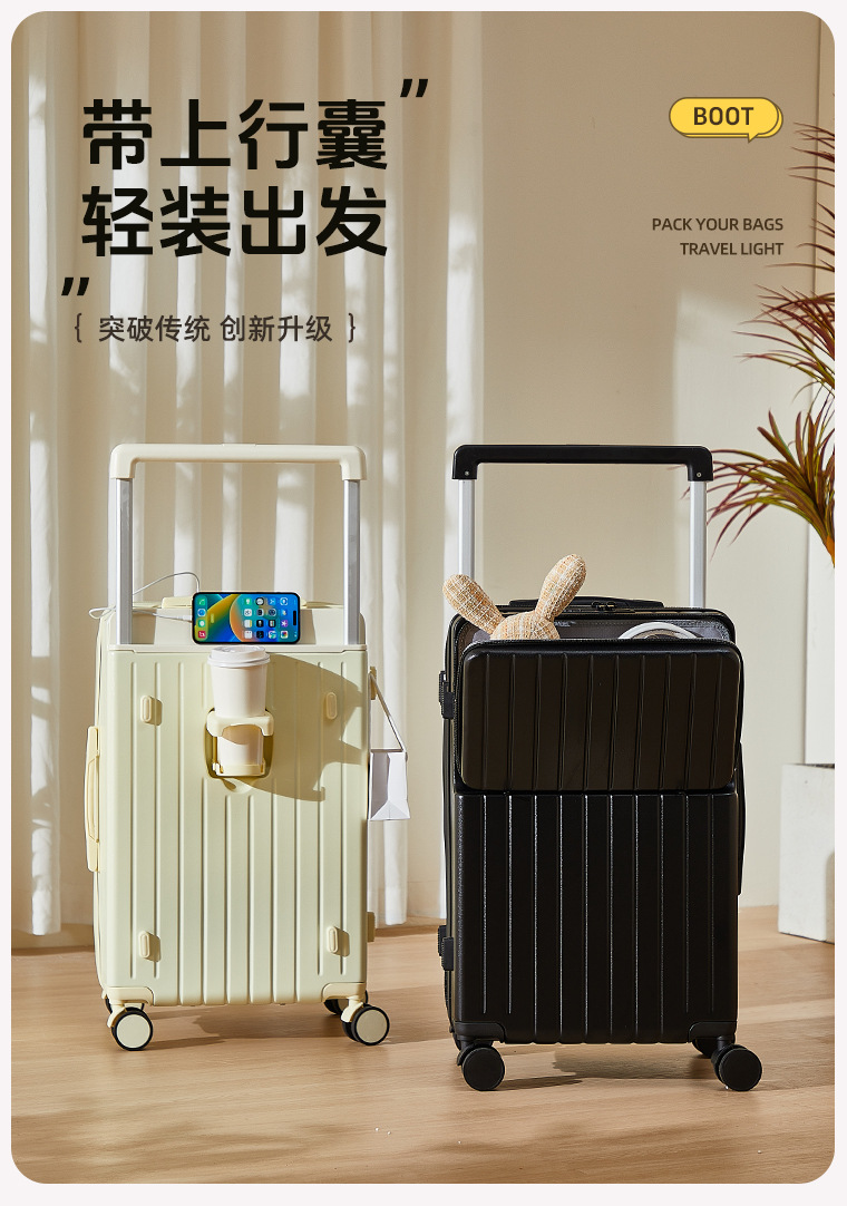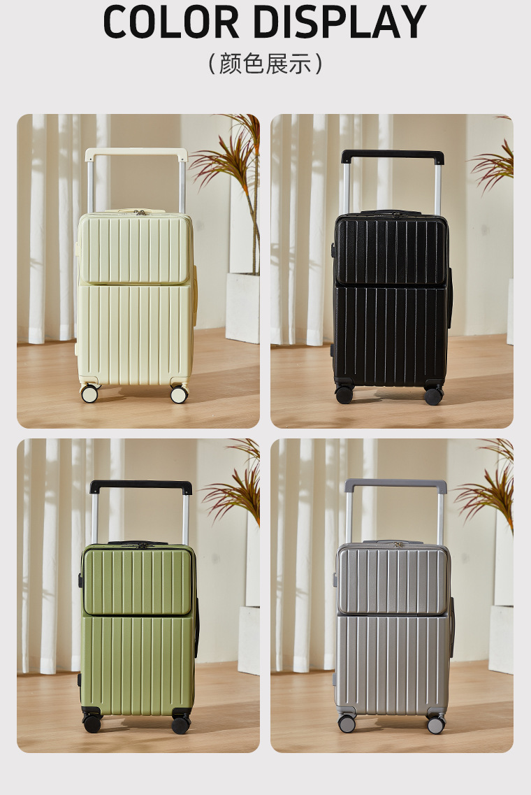 남성용 와이드 트롤리 전면 개방형 더블 레이어 가방 24inch 새로운 경량 여행 강력하고 내구성이 뛰어난 비밀번호 트롤리 케이스
