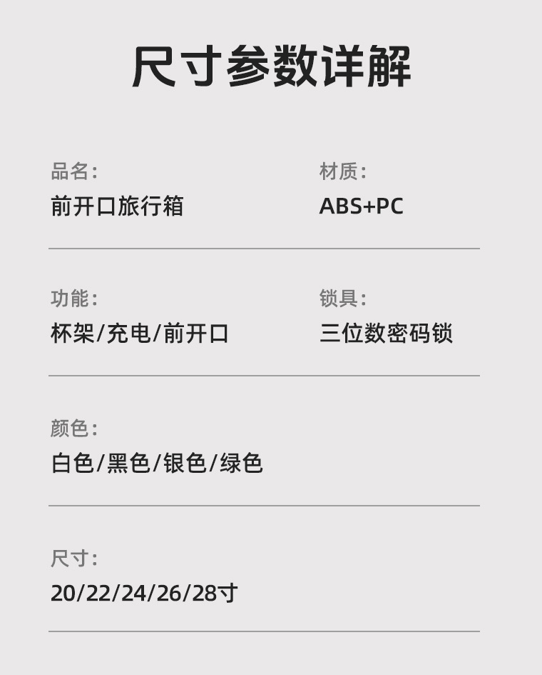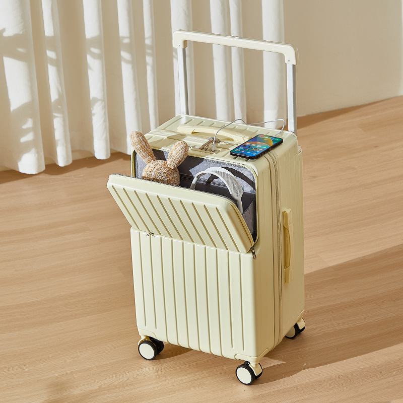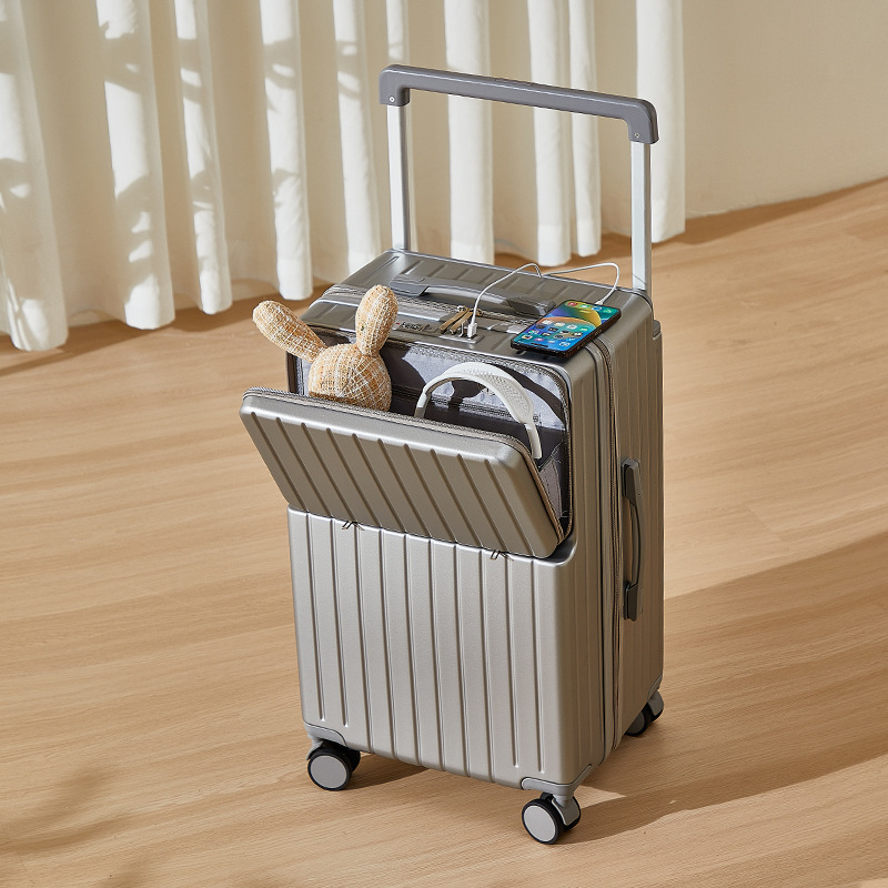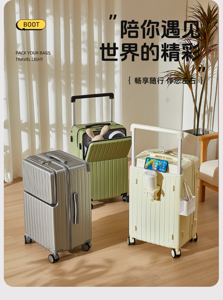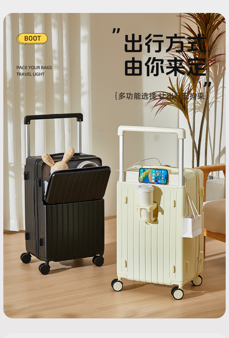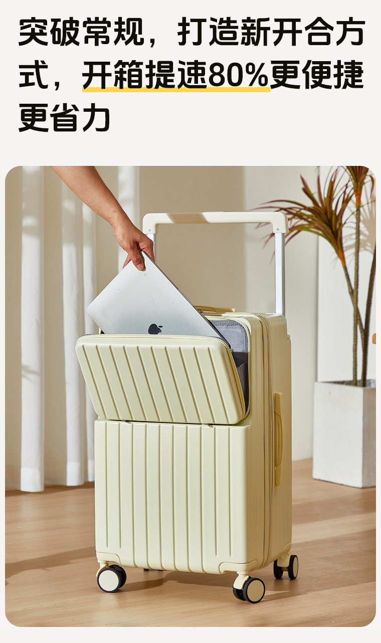 남성용 와이드 트롤리 전면 개방형 더블 레이어 가방 24inch 새로운 경량 여행 강력하고 내구성이 뛰어난 비밀번호 트롤리 케이스