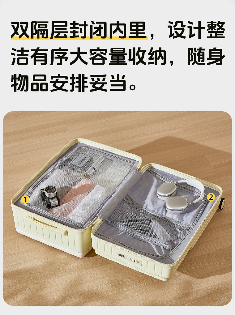 남성용 와이드 트롤리 전면 개방형 더블 레이어 가방 24inch 새로운 경량 여행 강력하고 내구성이 뛰어난 비밀번호 트롤리 케이스스토어 가기