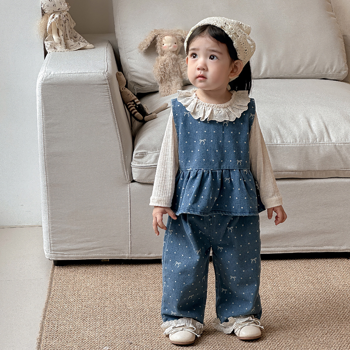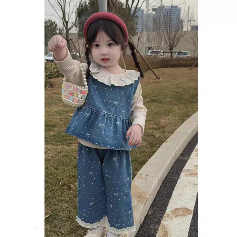 여아 정장, 봄 신상 스타일, 영유아 데님 조끼, 바지, 하의 셔츠, 봄, 가을 아기옷 투피스스토어 가기