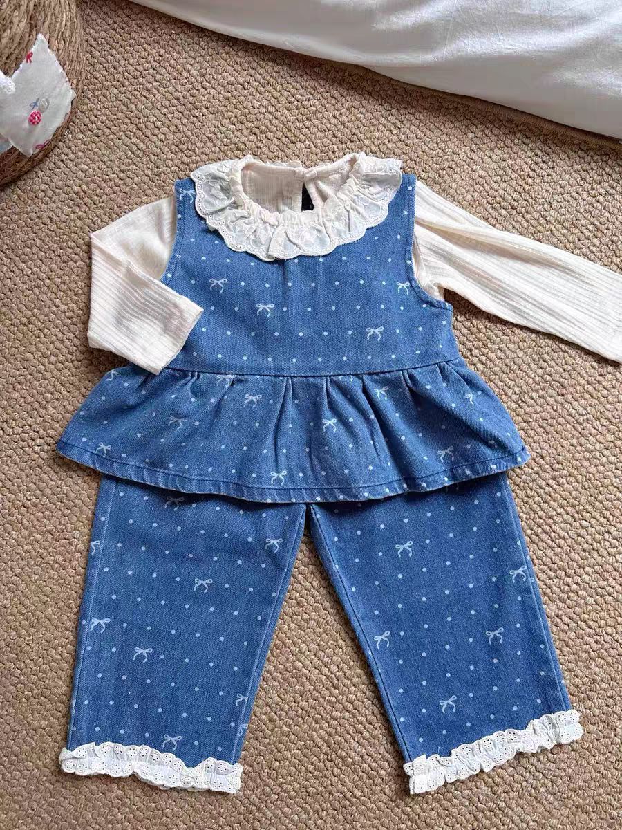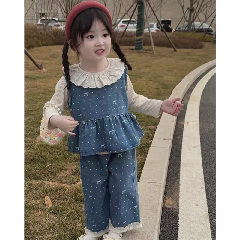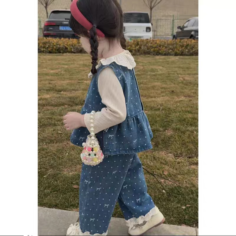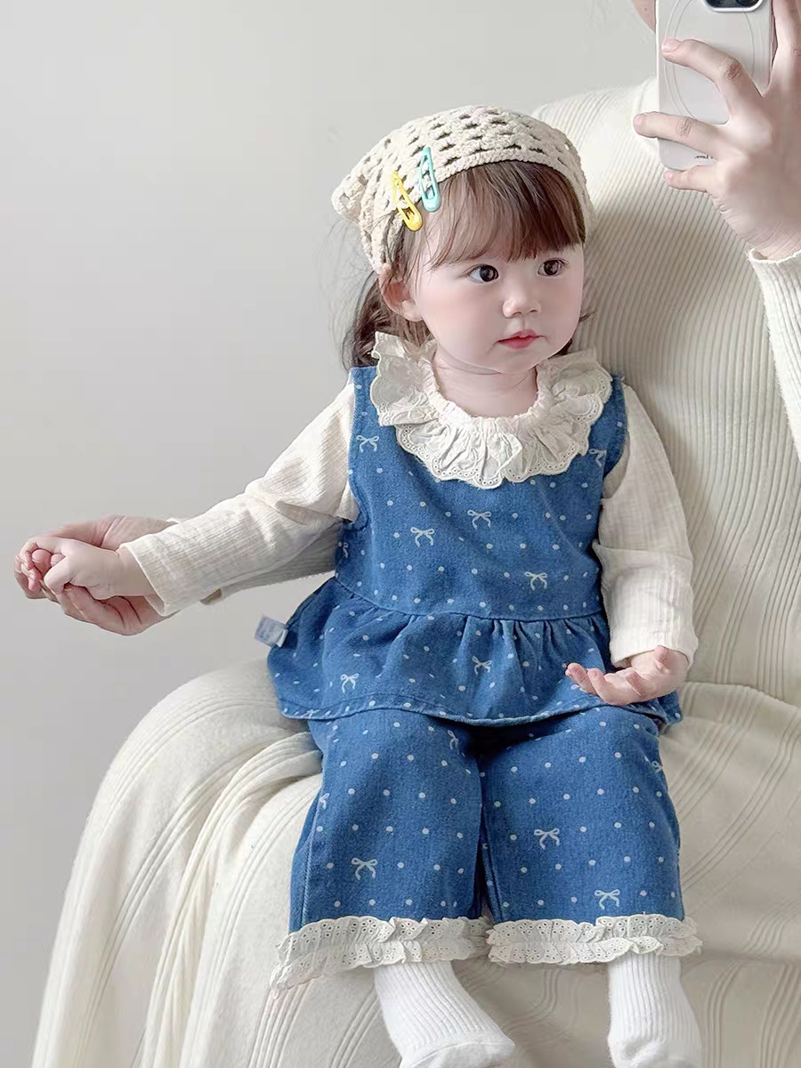 여아 정장, 봄 신상 스타일, 영유아 데님 조끼, 바지, 하의 셔츠, 봄, 가을 아기옷 투피스