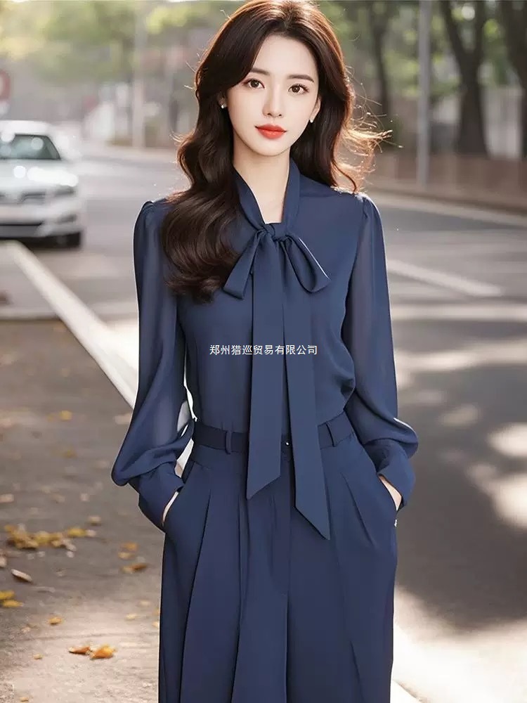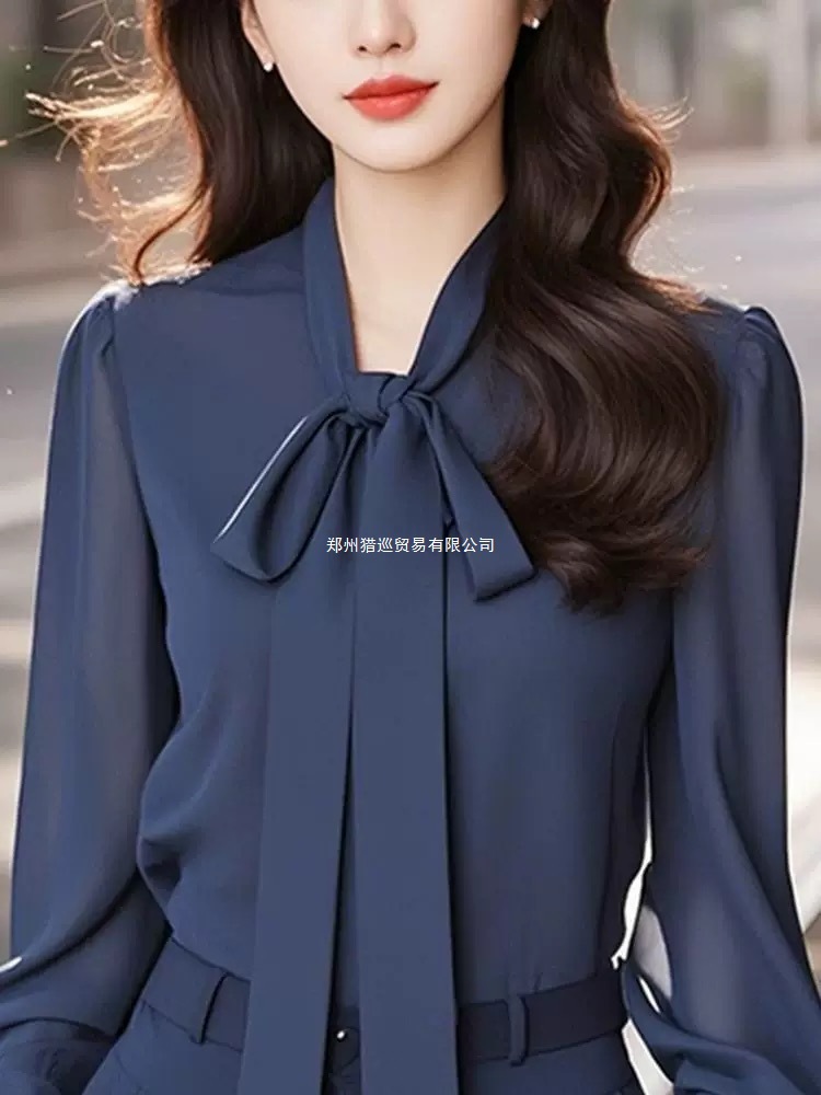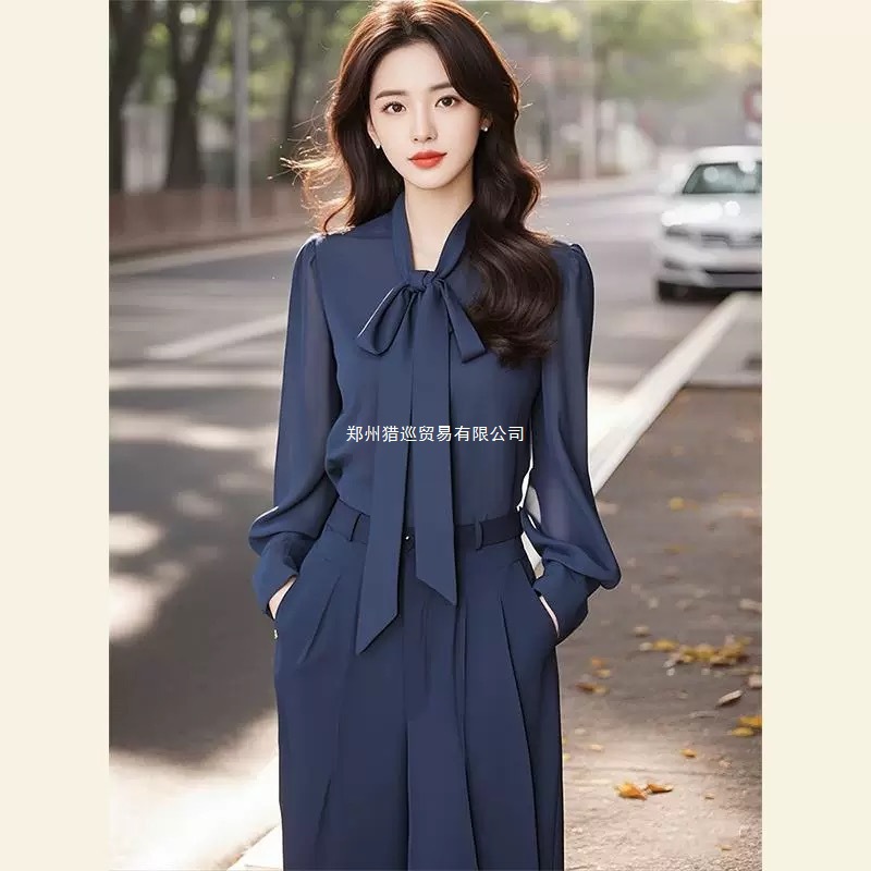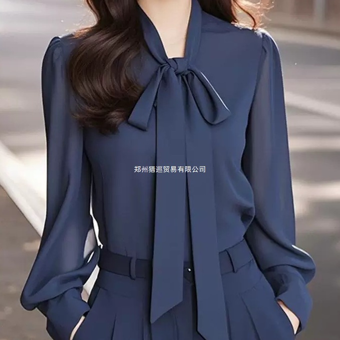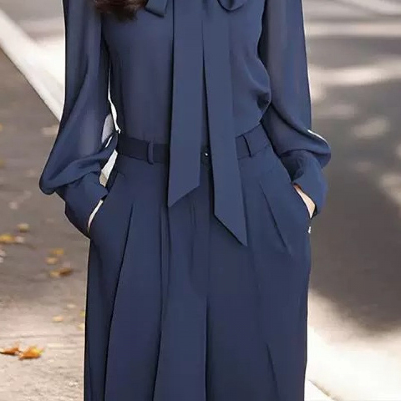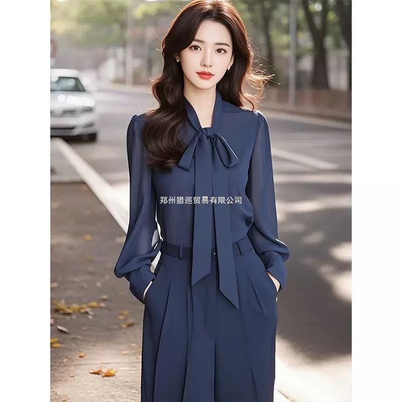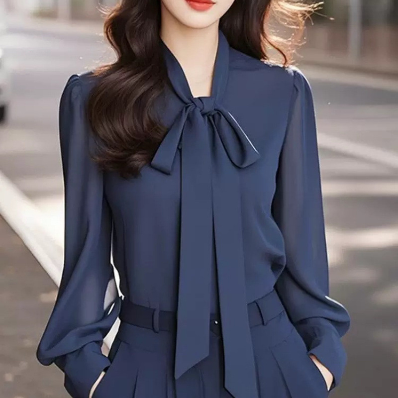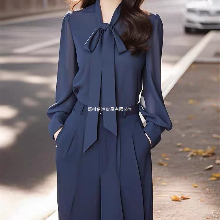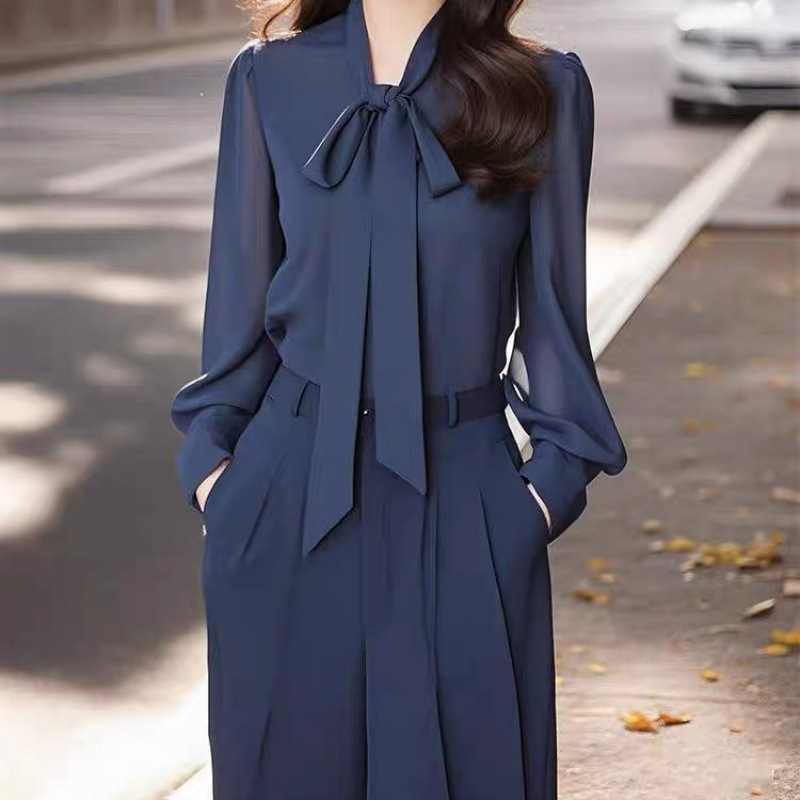 봄, 가을 의상, 소금풍의 가볍고 세련된 고급 드레스, 기질 있는 여성용 블루 셔츠 슈트