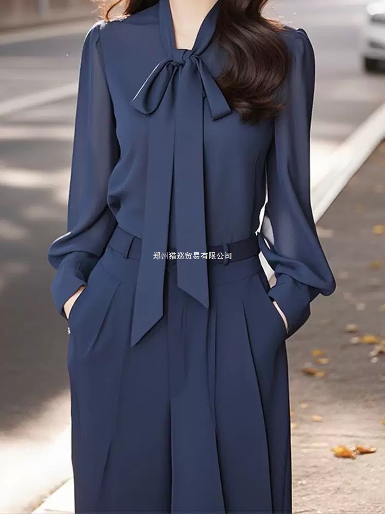 봄, 가을 의상, 소금풍의 가볍고 세련된 고급 드레스, 기질 있는 여성용 블루 셔츠 슈트스토어 가기
