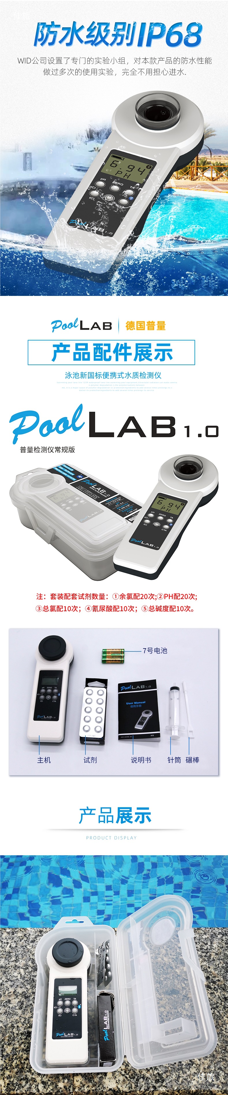 POOLLAB 수영장 수질 검출기 총 잔류 염소 우레아 pH 시아노산염 결합 염소 분석기