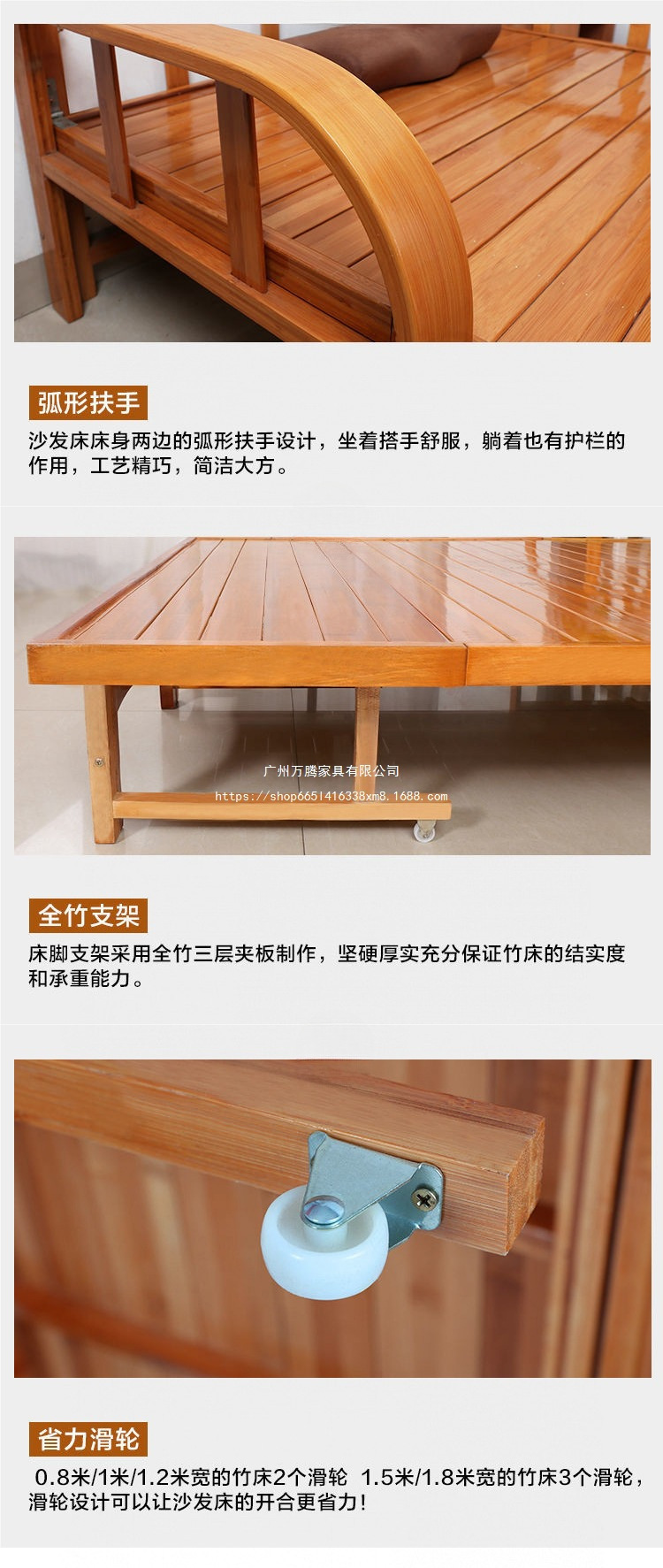 WanTeng 접이식 소파 베드 이중 목적 더블 싱글 다기능 대나무 침대 거실 가정용 경제적 인 슬라이딩 WanTeng