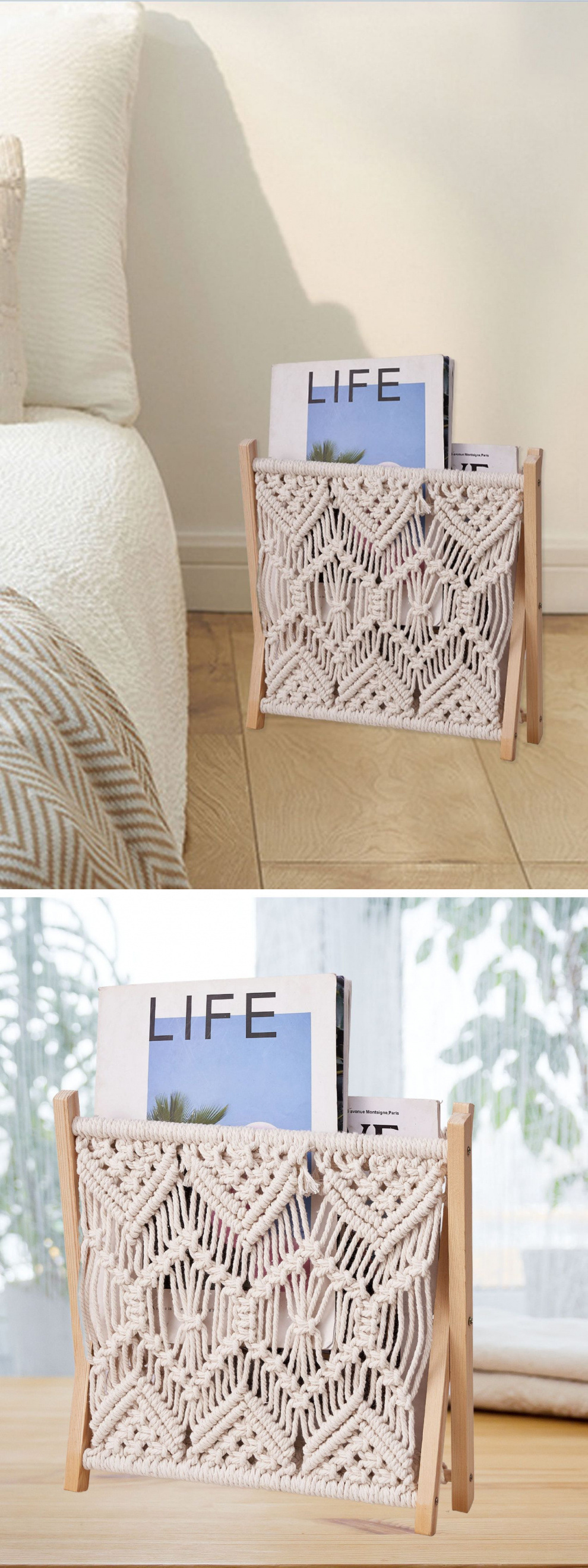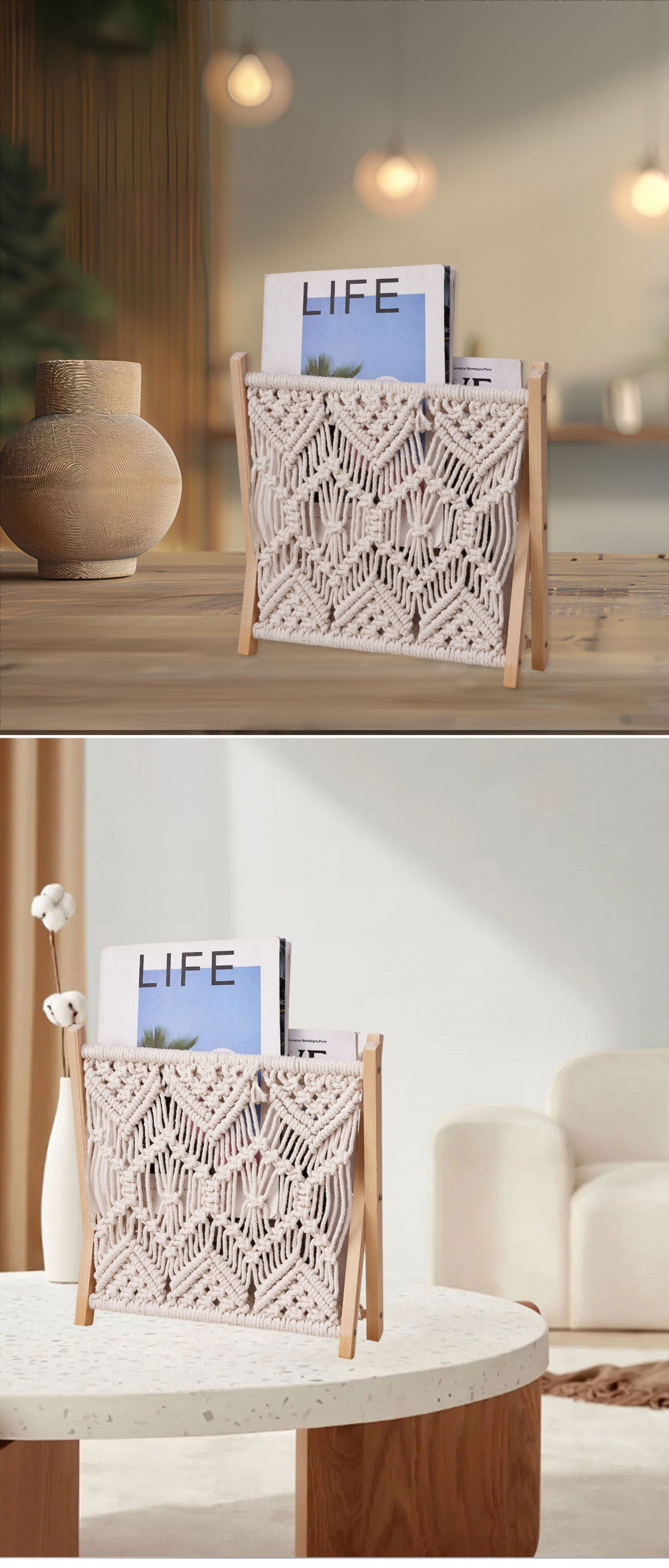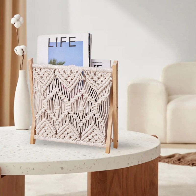 국경 간 보헤미안 보관 바구니 수제 면 로프 땋은 보관 랙 데스크탑 접이식 보관 랙스토어 가기
