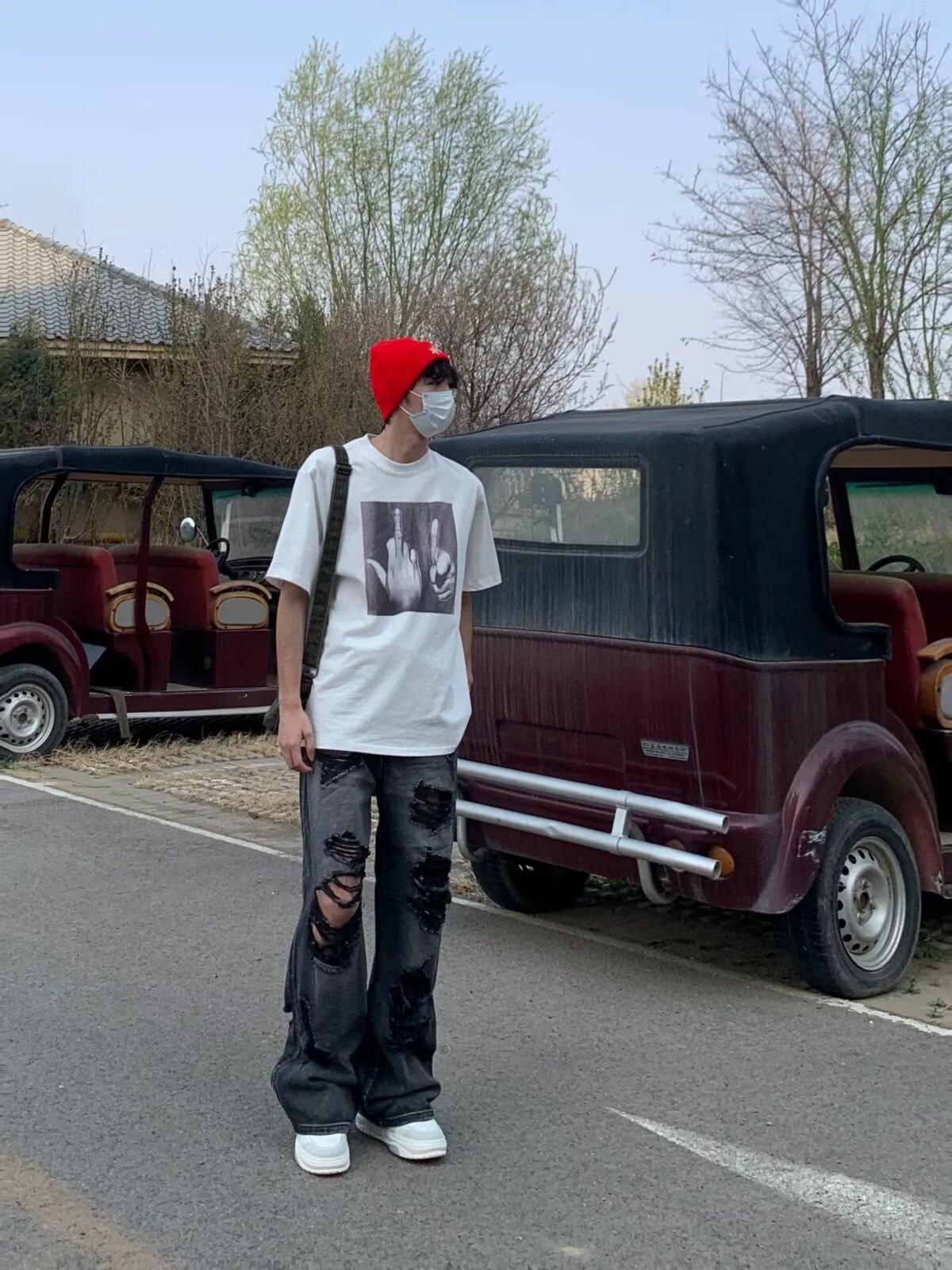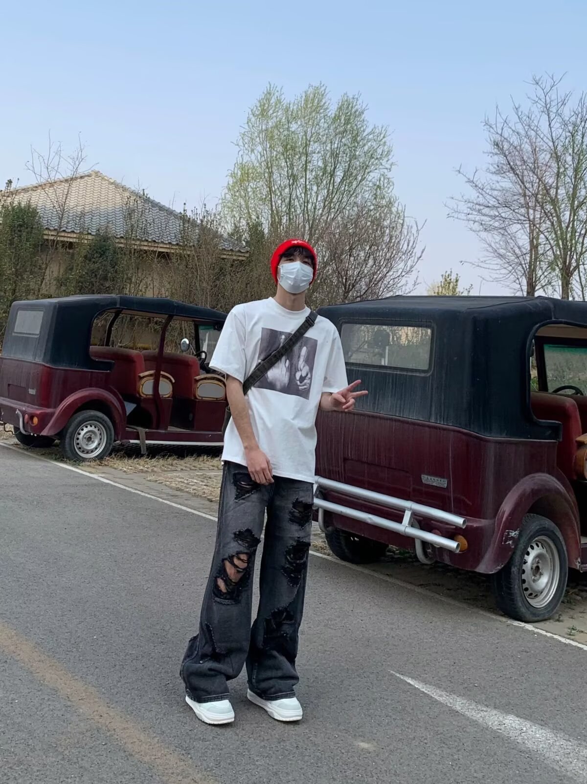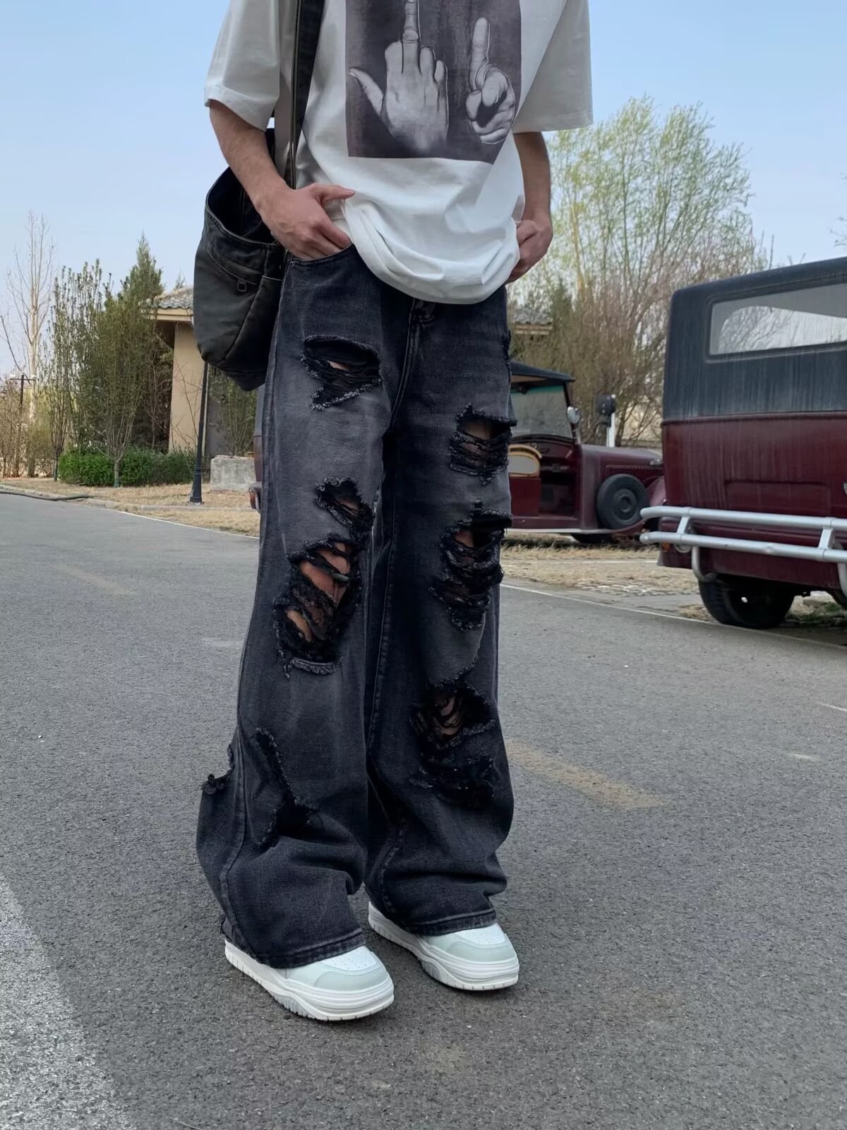 아메리칸 스트리트 찢어진 청바지 남성 바이브 하이 스트리트 루즈 베이비 팬츠 힙합 트렌디 브랜드 핸섬 스트레이트 팬츠스토어 가기