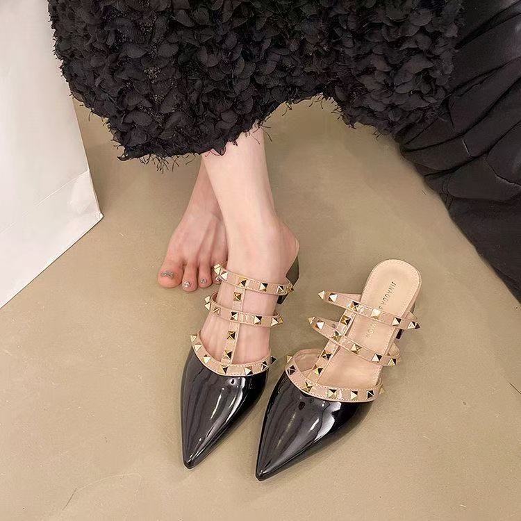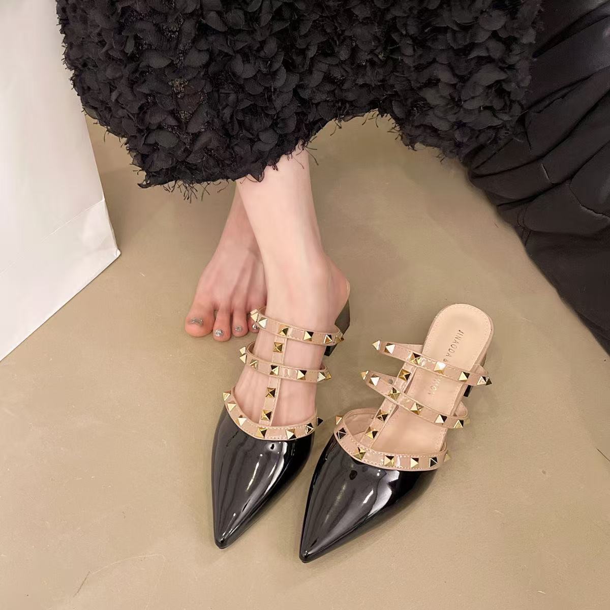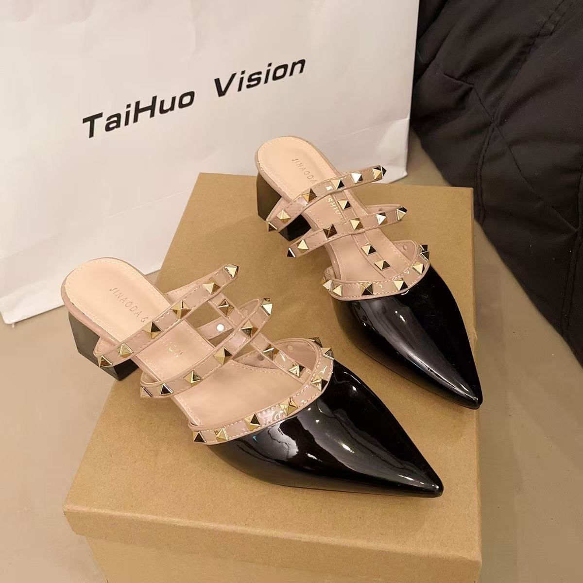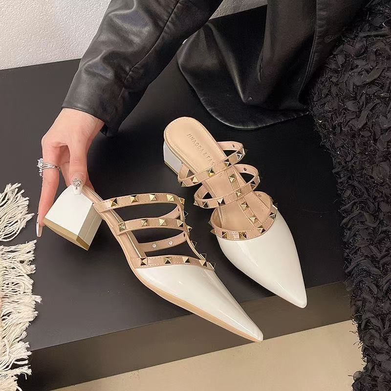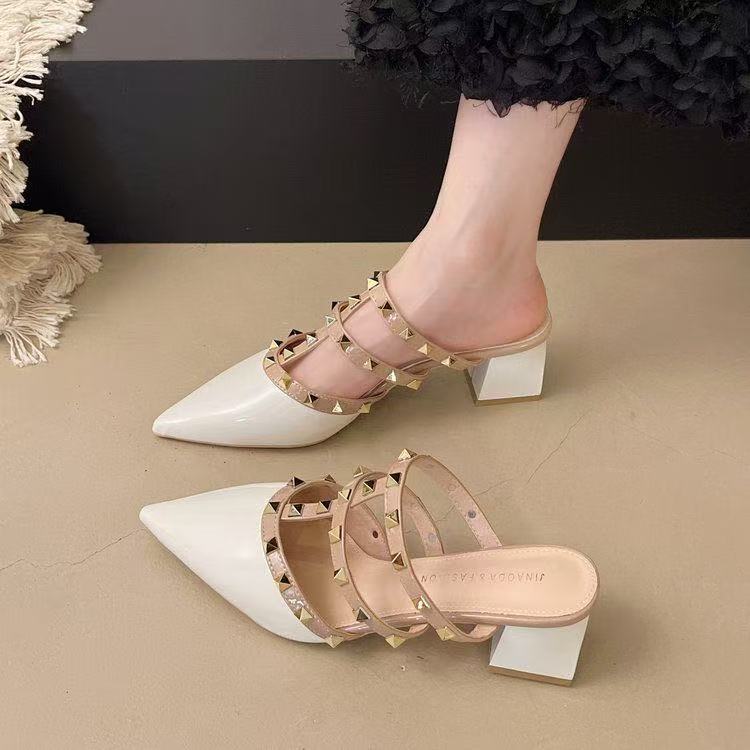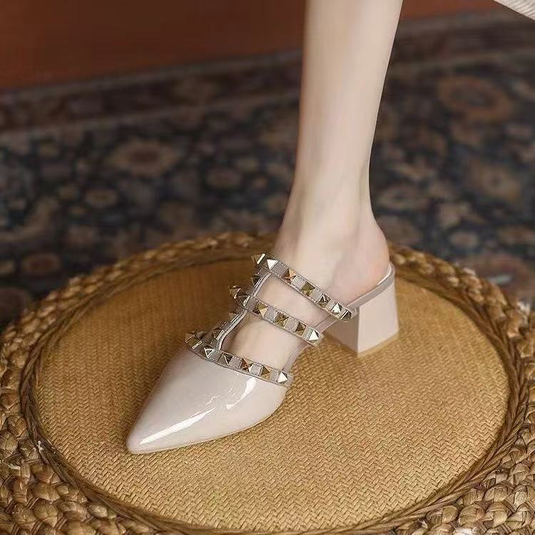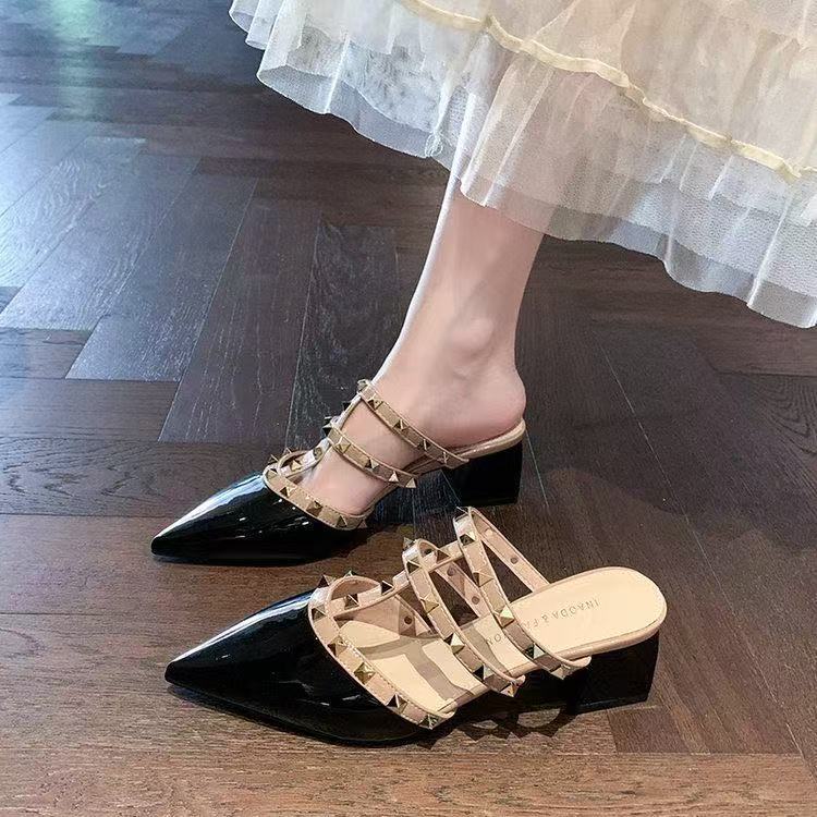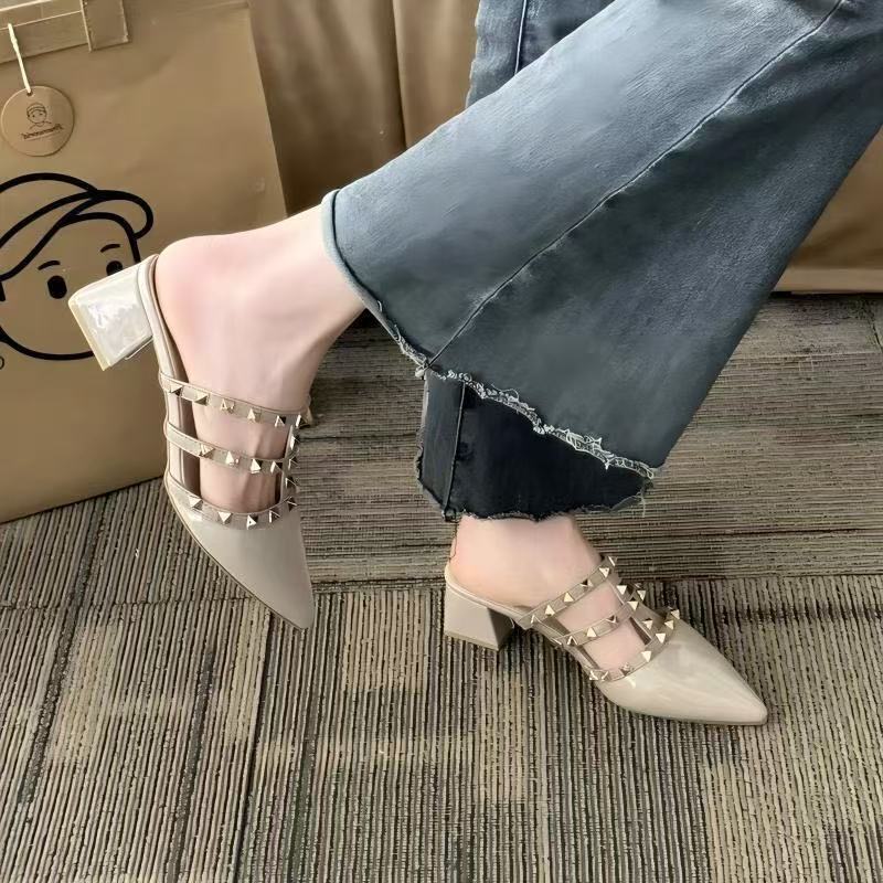 두꺼운 굽의 아우터 신발, 새로운 하이힐, 2025년 로우힐, 뾰족한 샌들, 작은 굽의 반토캡 슈즈, 여성 여름 슬리퍼스토어 가기