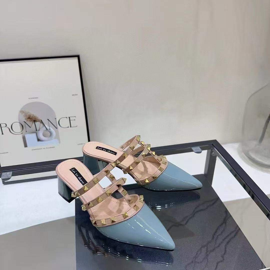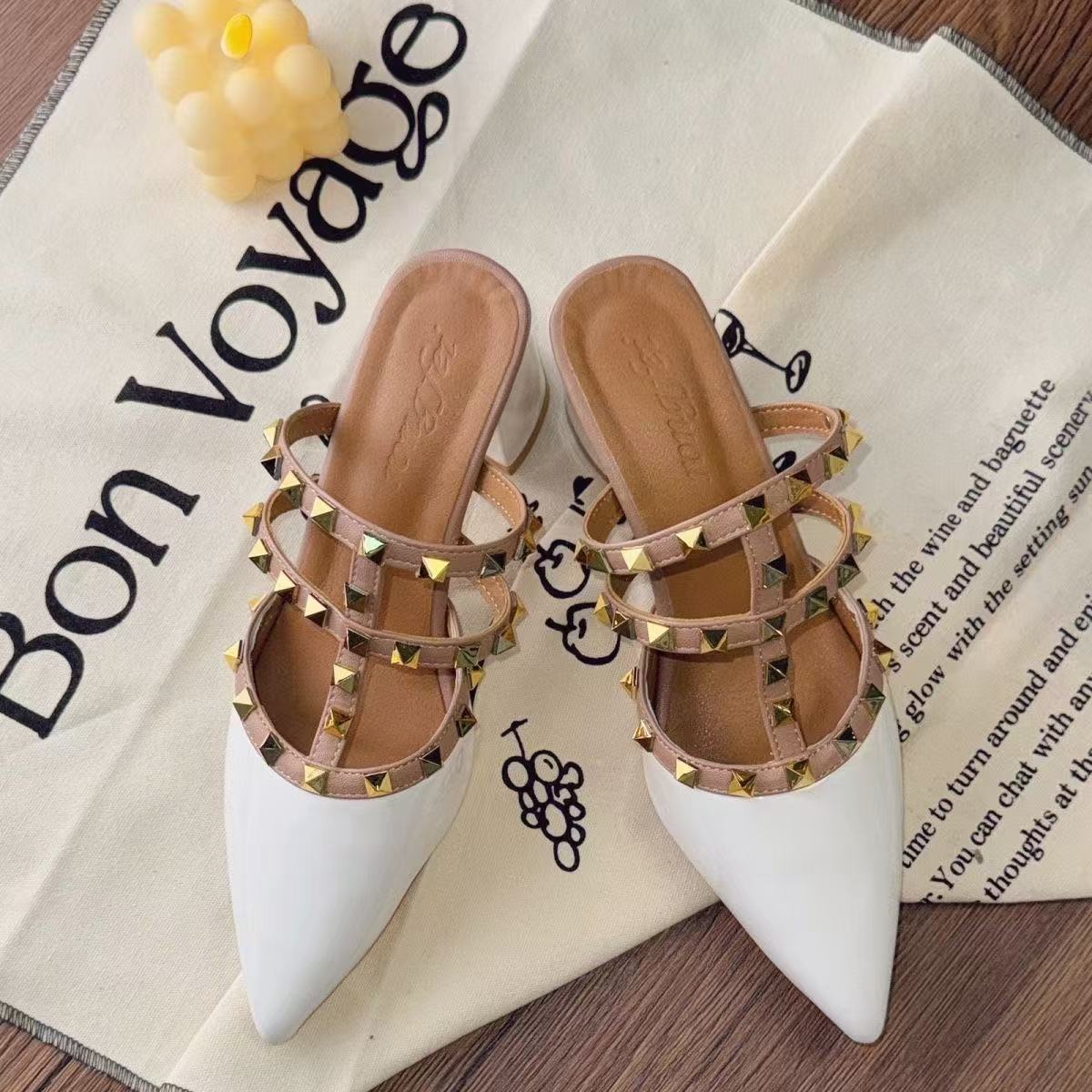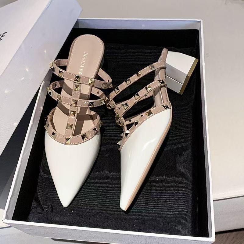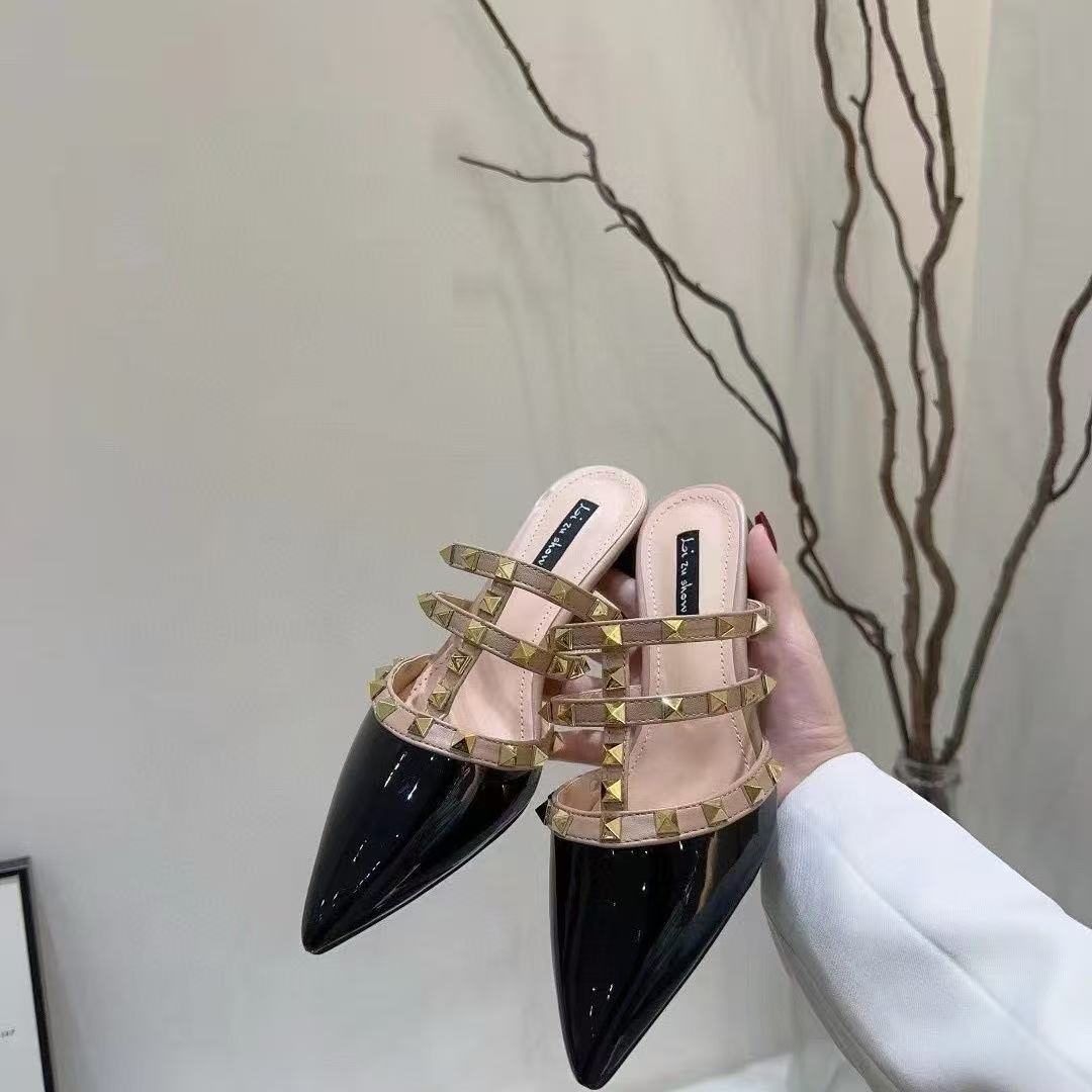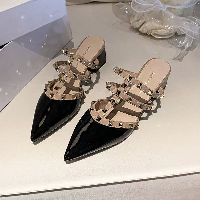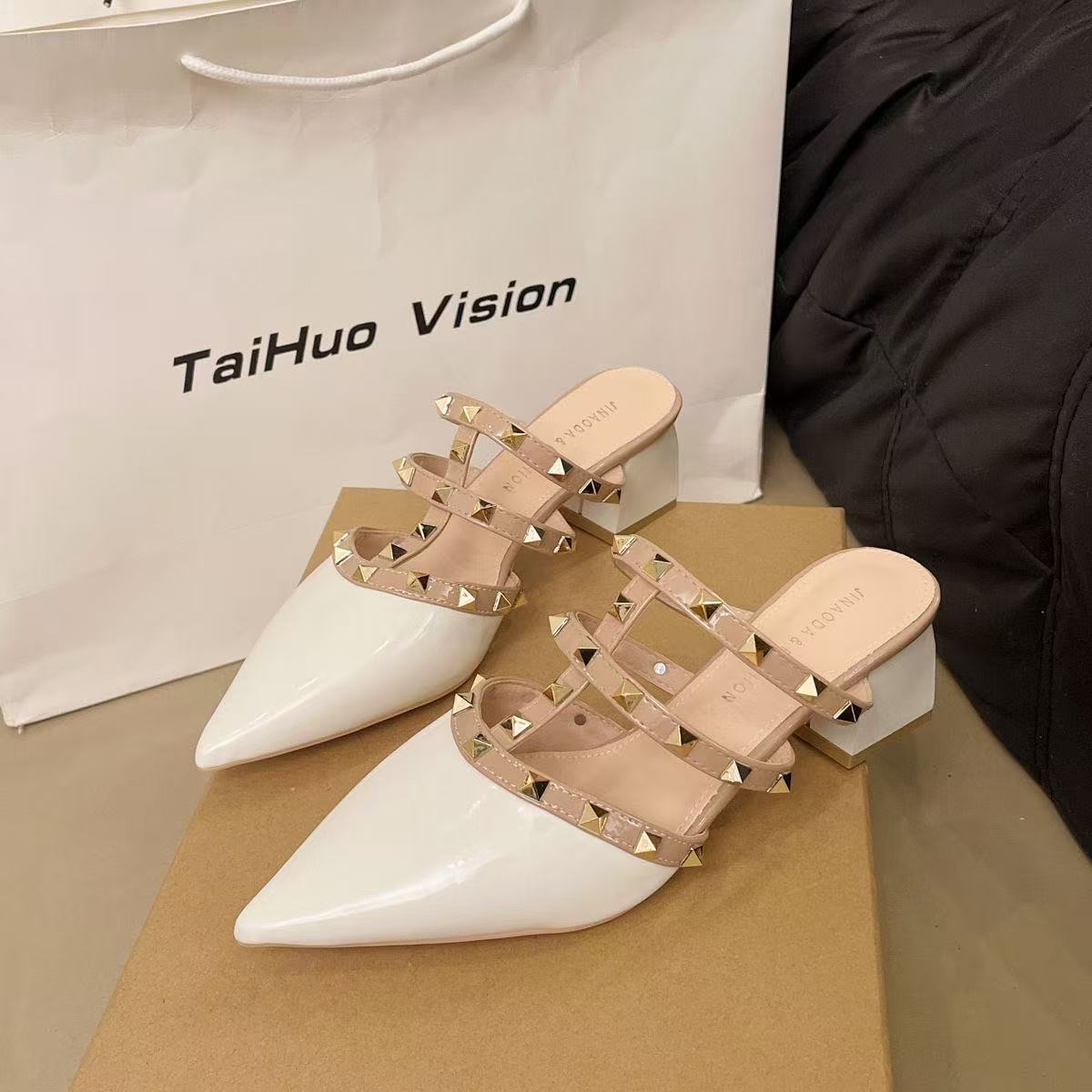 두꺼운 굽의 아우터 신발, 새로운 하이힐, 2025년 로우힐, 뾰족한 샌들, 작은 굽의 반토캡 슈즈, 여성 여름 슬리퍼스토어 가기