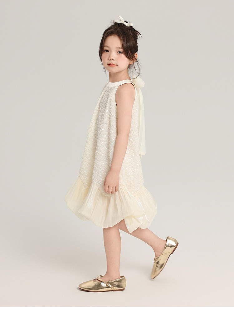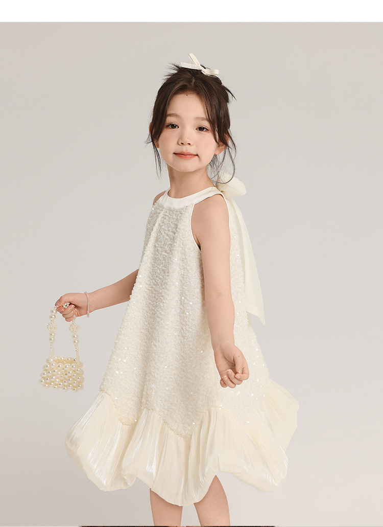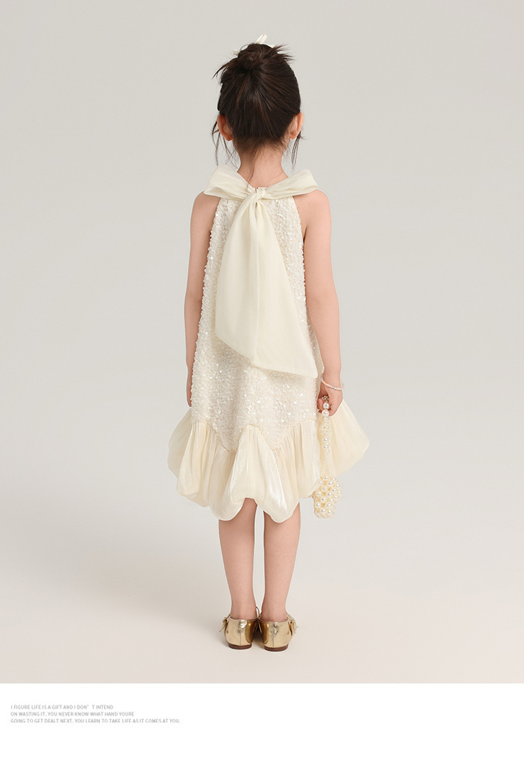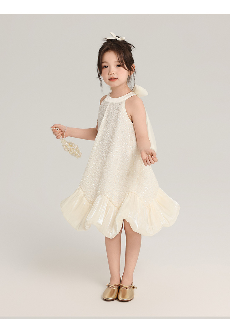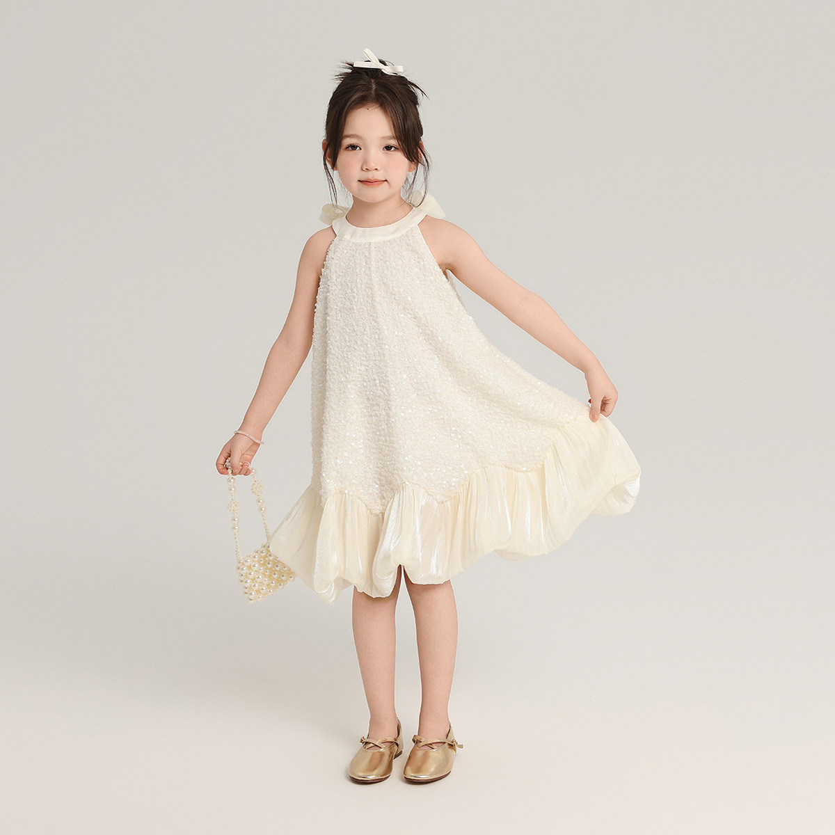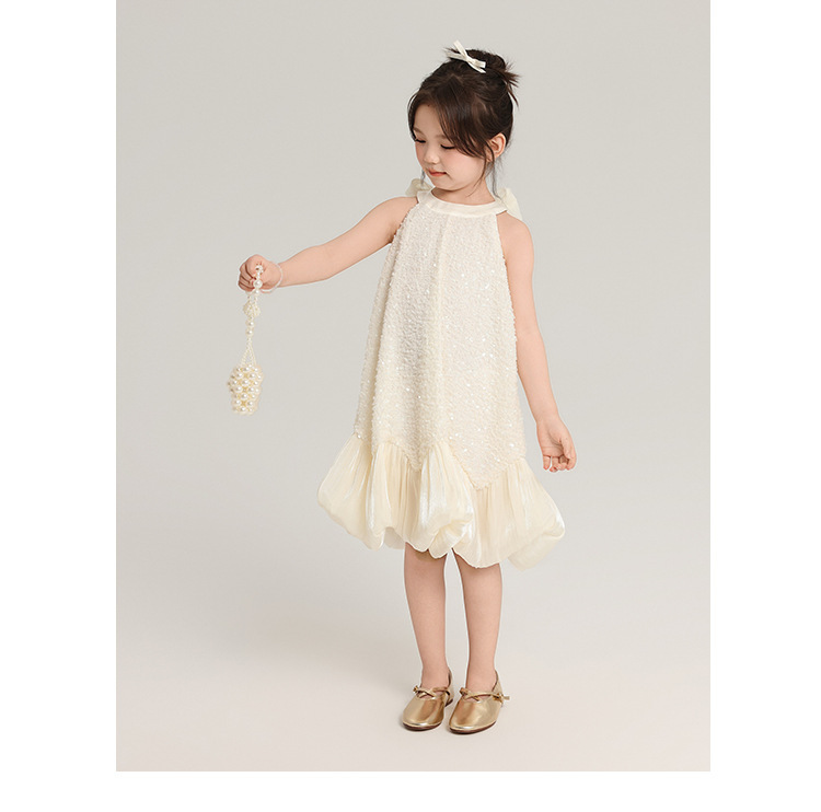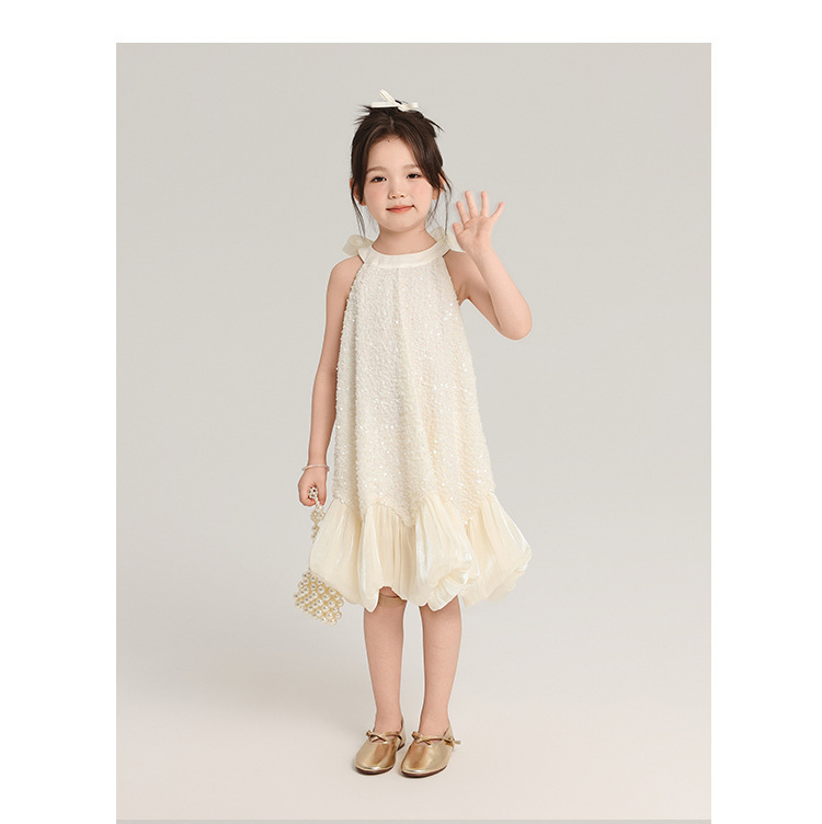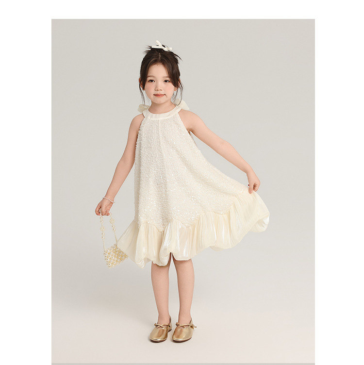 푸딩 하루 아동 여름 드레스 소녀 홀터 스커트 2025 여름 새로운 어린이 달콤한 공주 스타일 드레스스토어 가기
