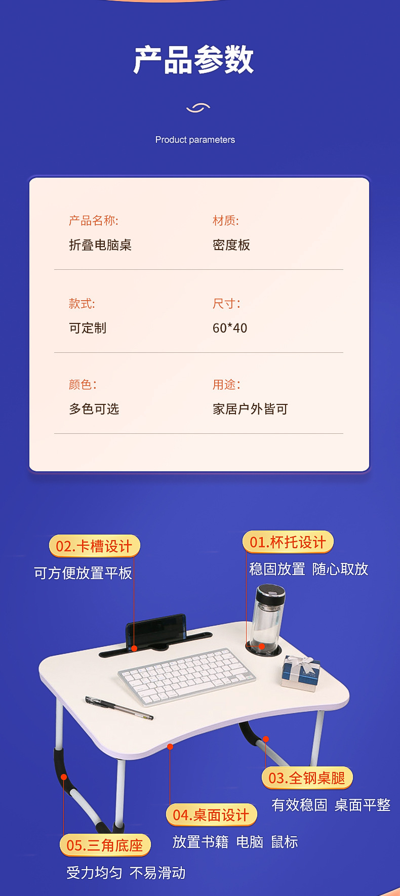 • 60*40—카드 슬롯 컵 홀더 + 서랍 스타일—다리 포함—블루