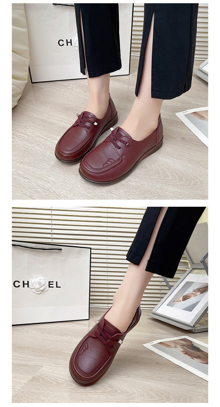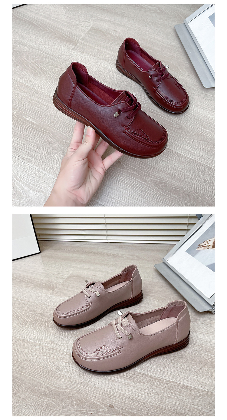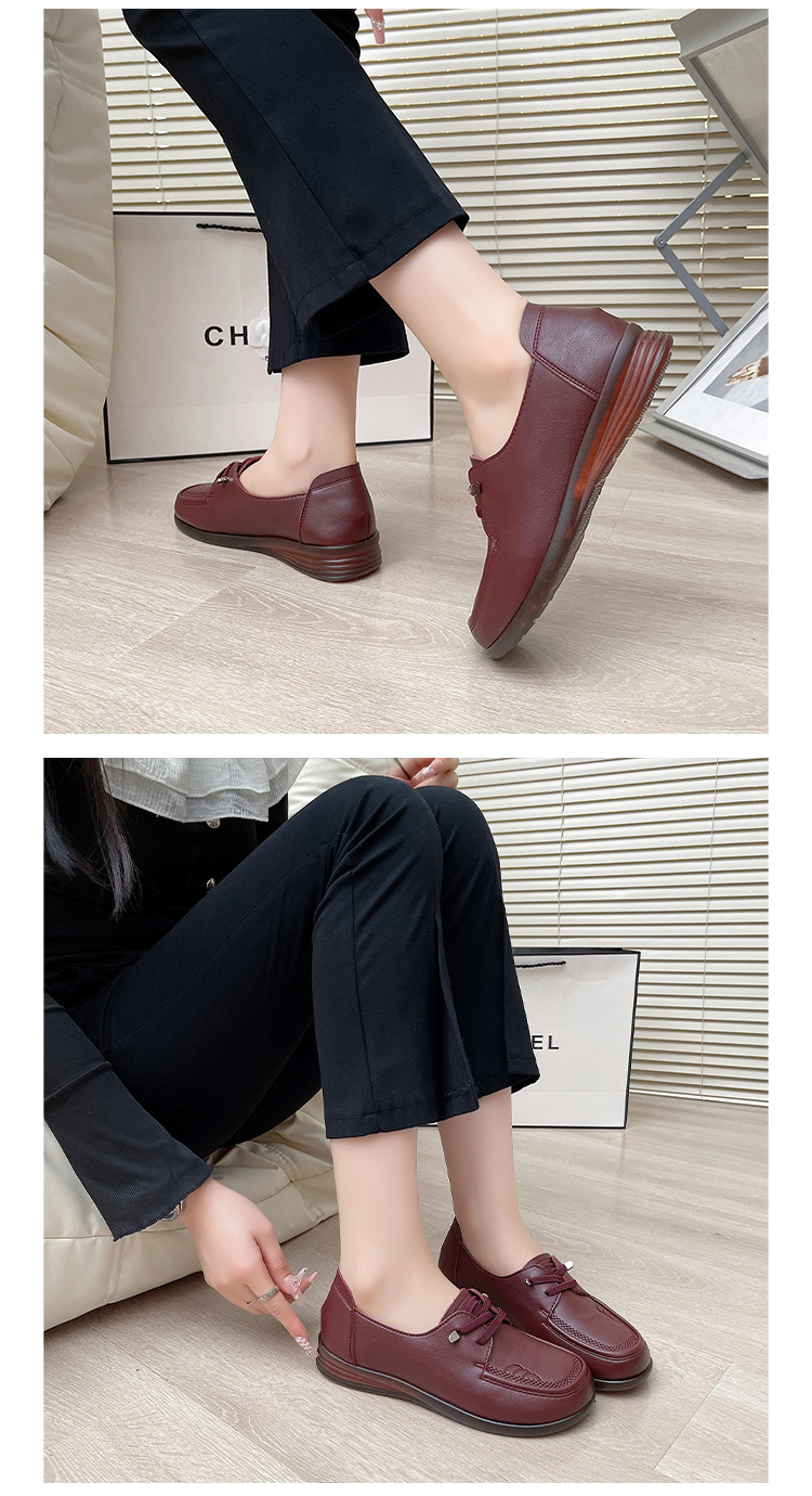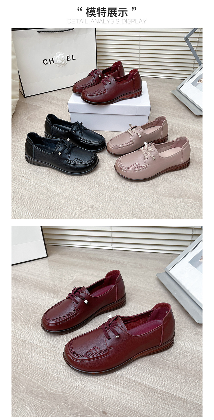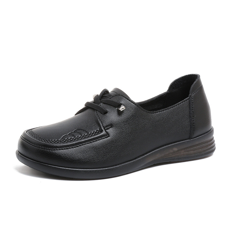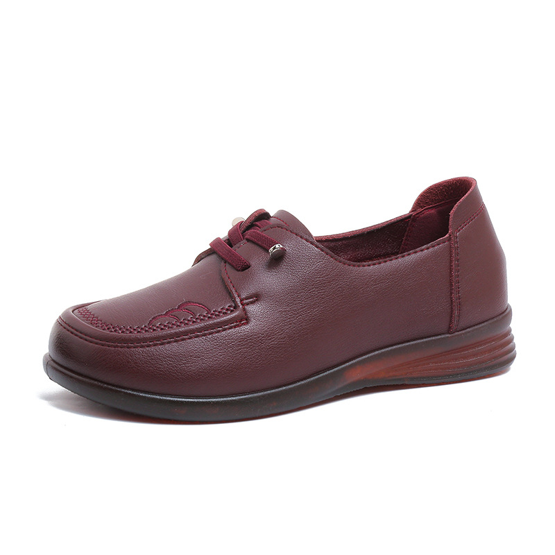 새로운 스타일의 편안한 부드러운 밑창 부드러운 표면 어머니 신발, 플랫 밑창 미끄럼 방지 중년 및 노인 여성 신발, 노인 캐주얼 가죽 신발 도매스토어 가기