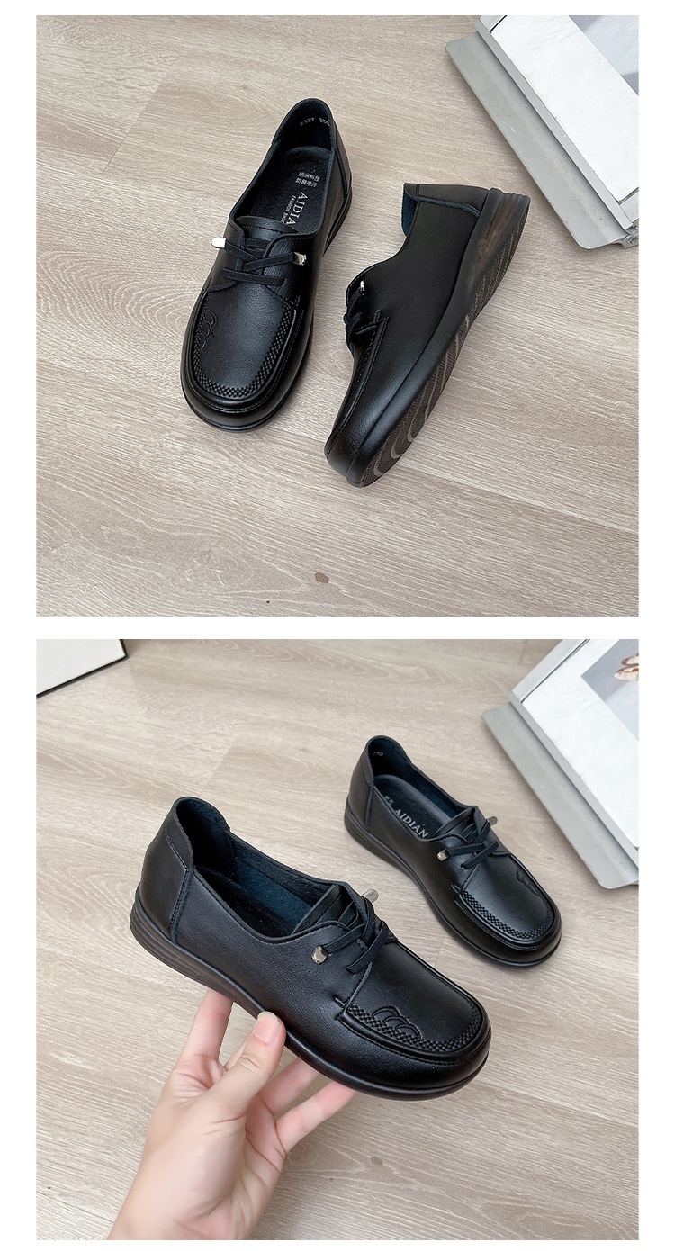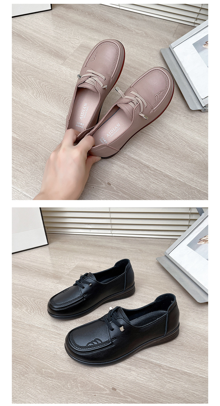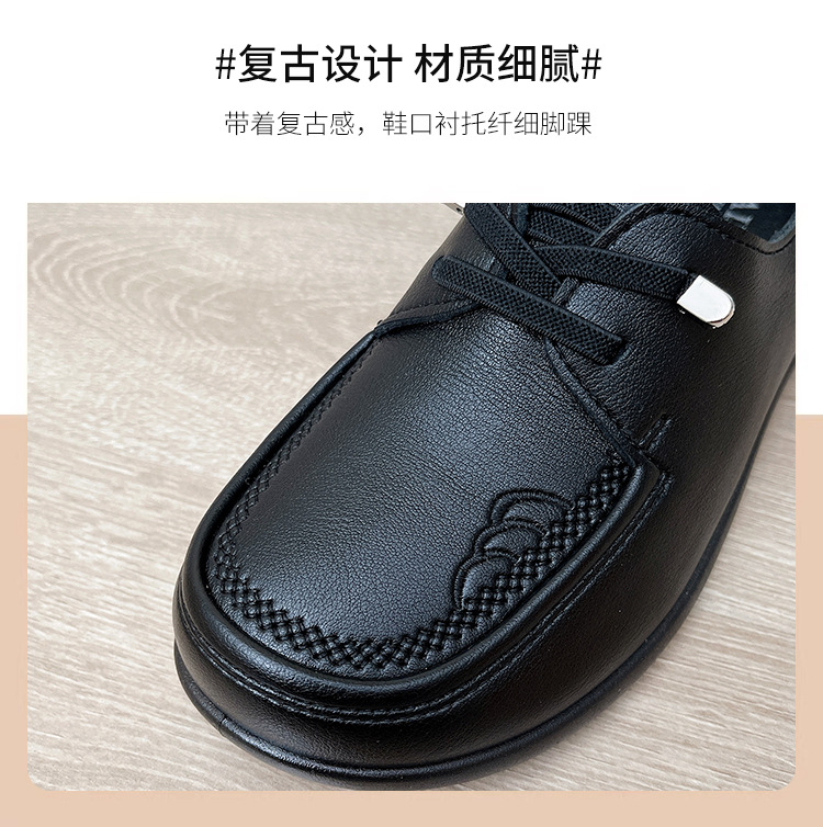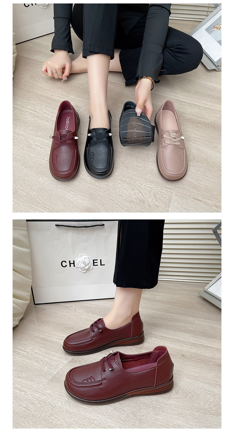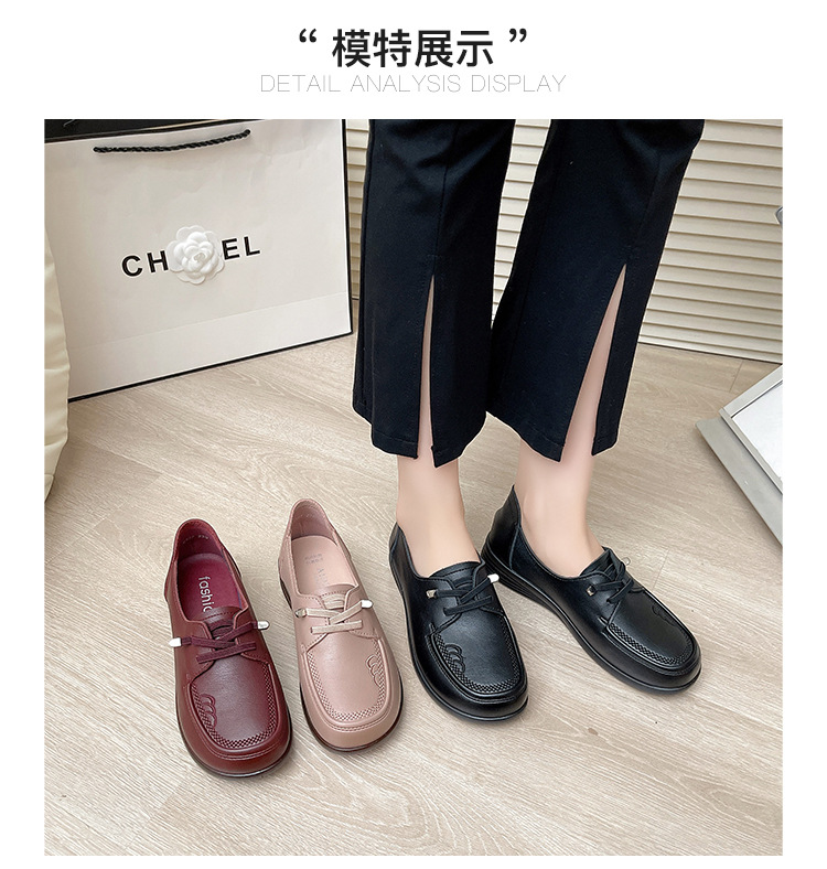 새로운 스타일의 편안한 부드러운 밑창 부드러운 표면 어머니 신발, 플랫 밑창 미끄럼 방지 중년 및 노인 여성 신발, 노인 캐주얼 가죽 신발 도매스토어 가기