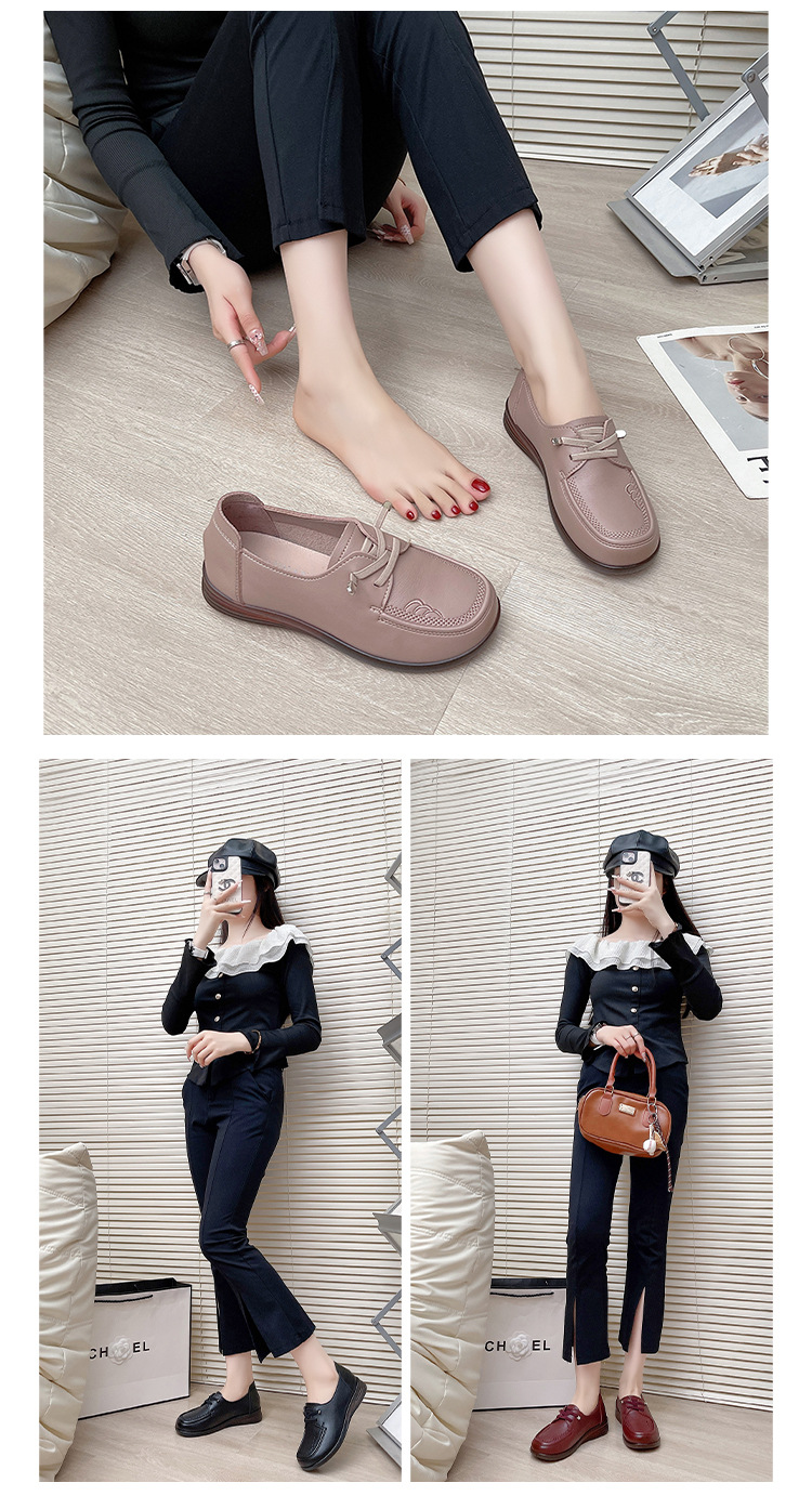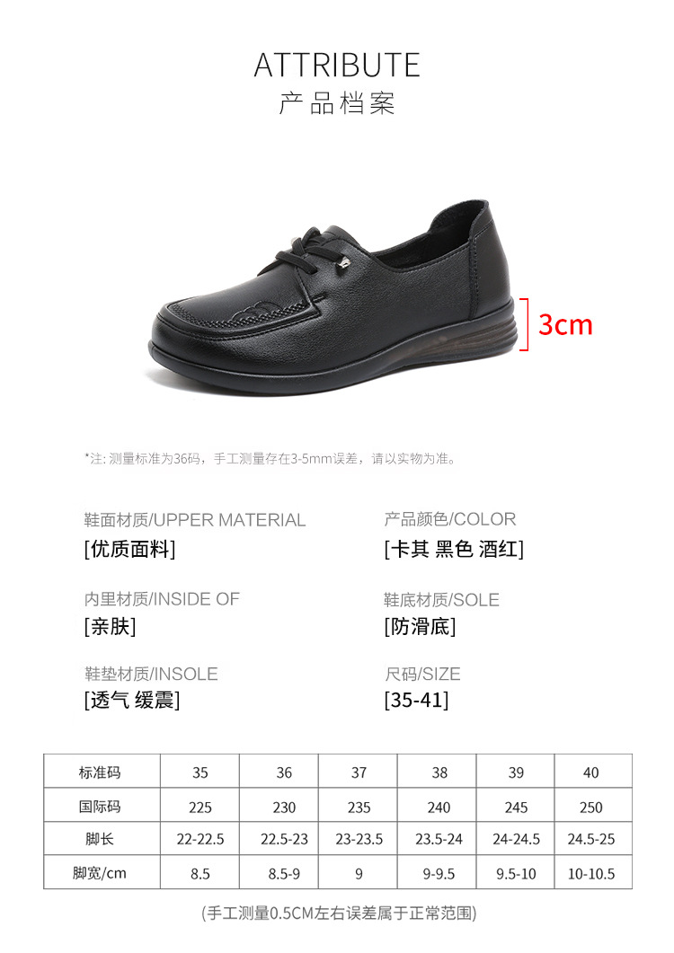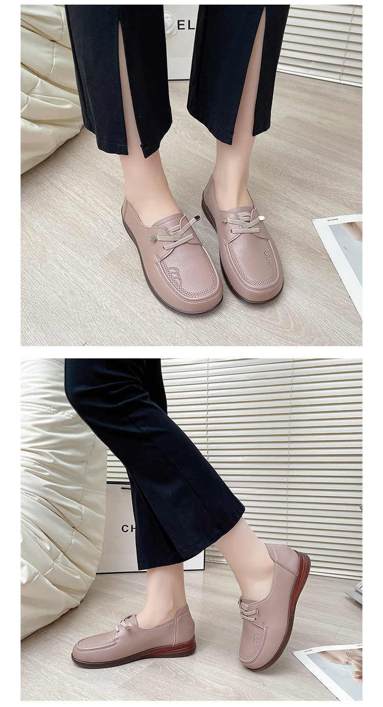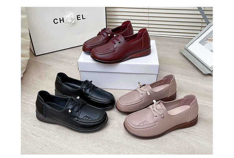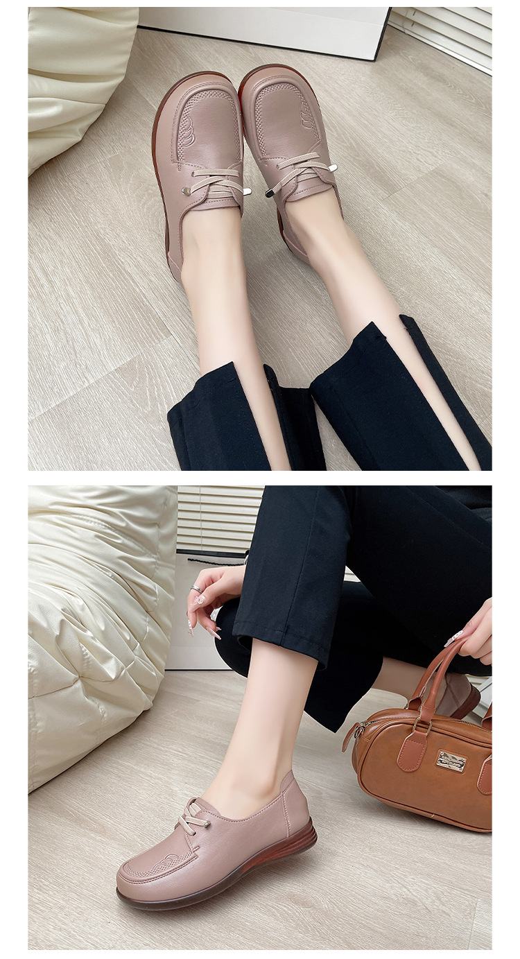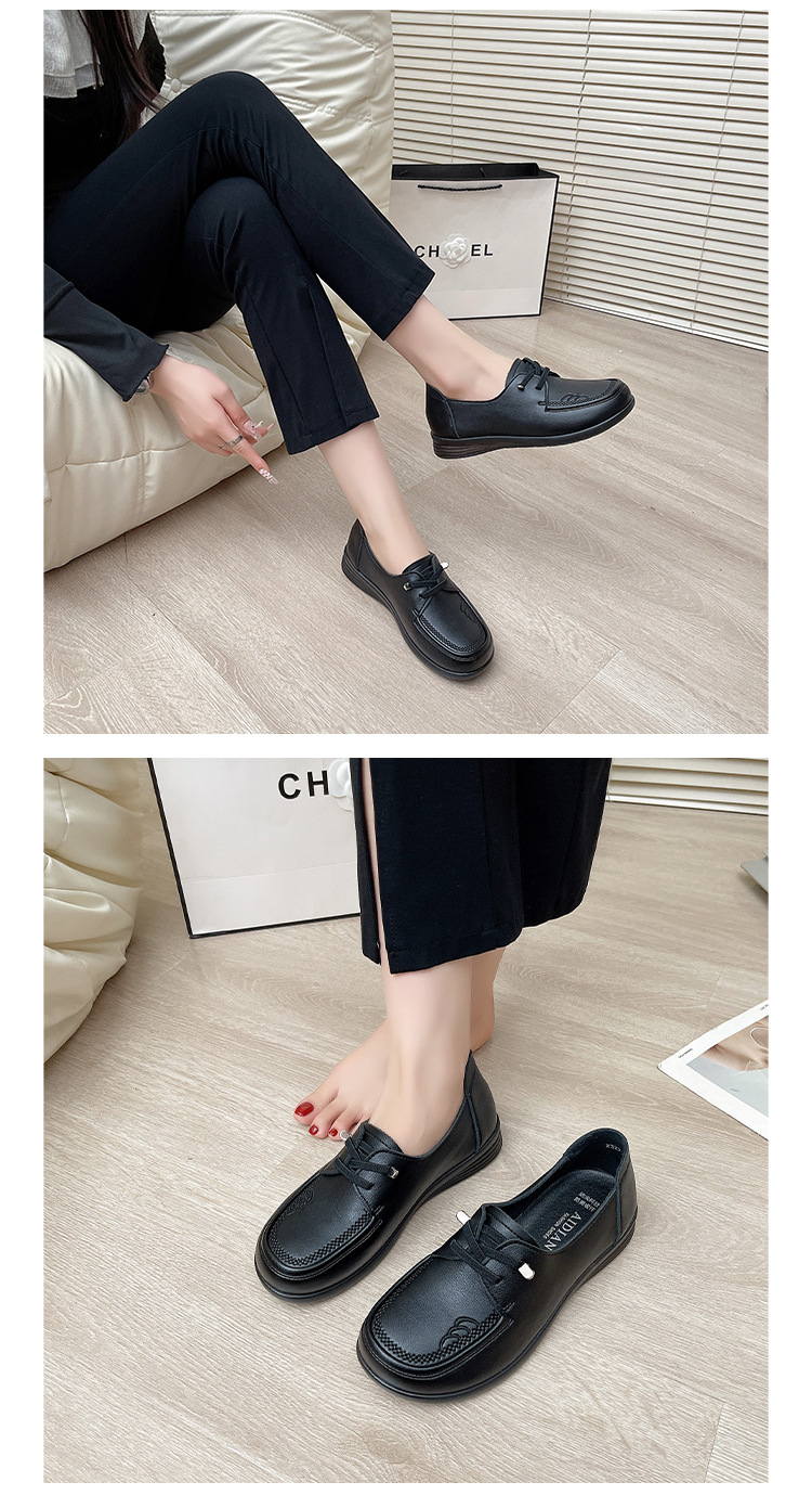 새로운 스타일의 편안한 부드러운 밑창 부드러운 표면 어머니 신발, 플랫 밑창 미끄럼 방지 중년 및 노인 여성 신발, 노인 캐주얼 가죽 신발 도매스토어 가기