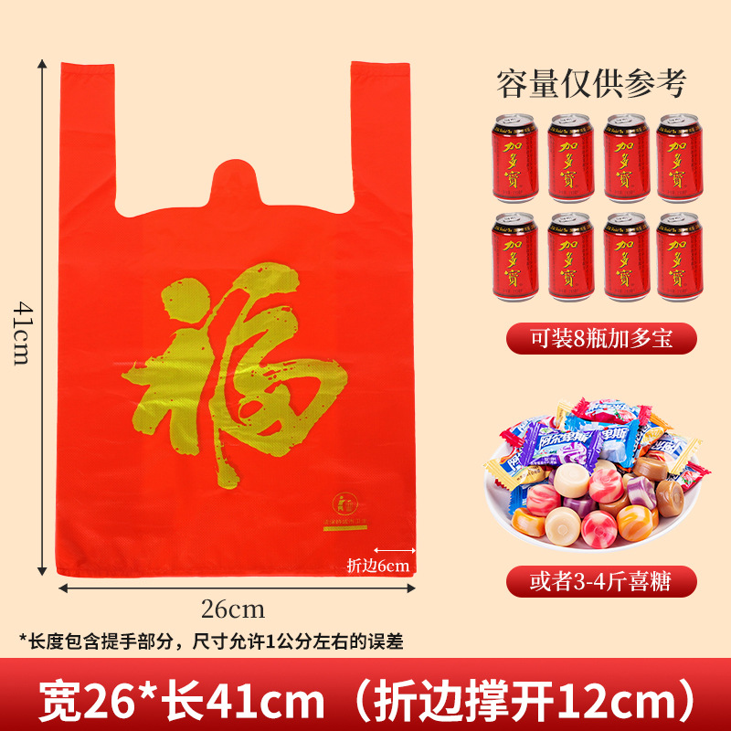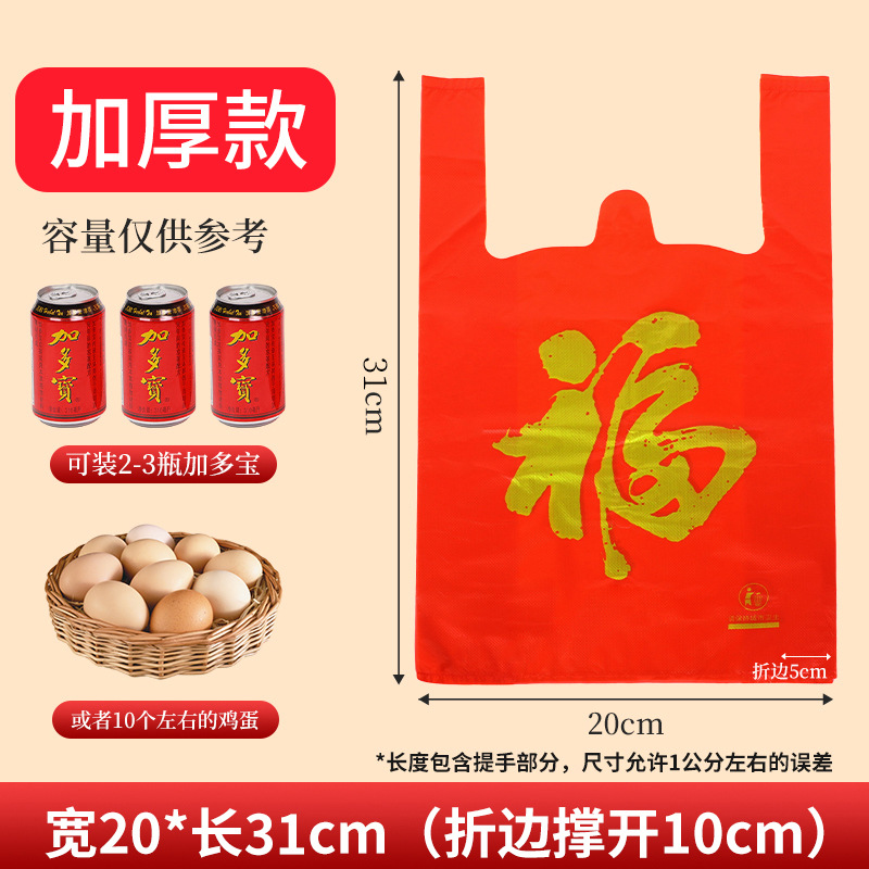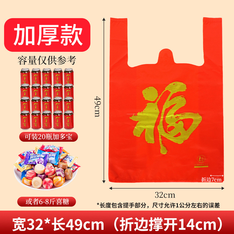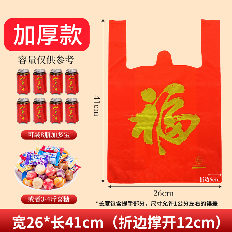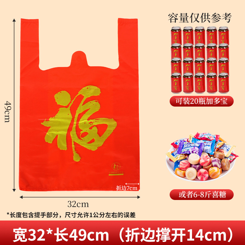 붉은 축복 가방 두꺼운 비닐 봉투 결혼식 축하 보름달 휴대용 포장 가방 조끼 가방스토어 가기